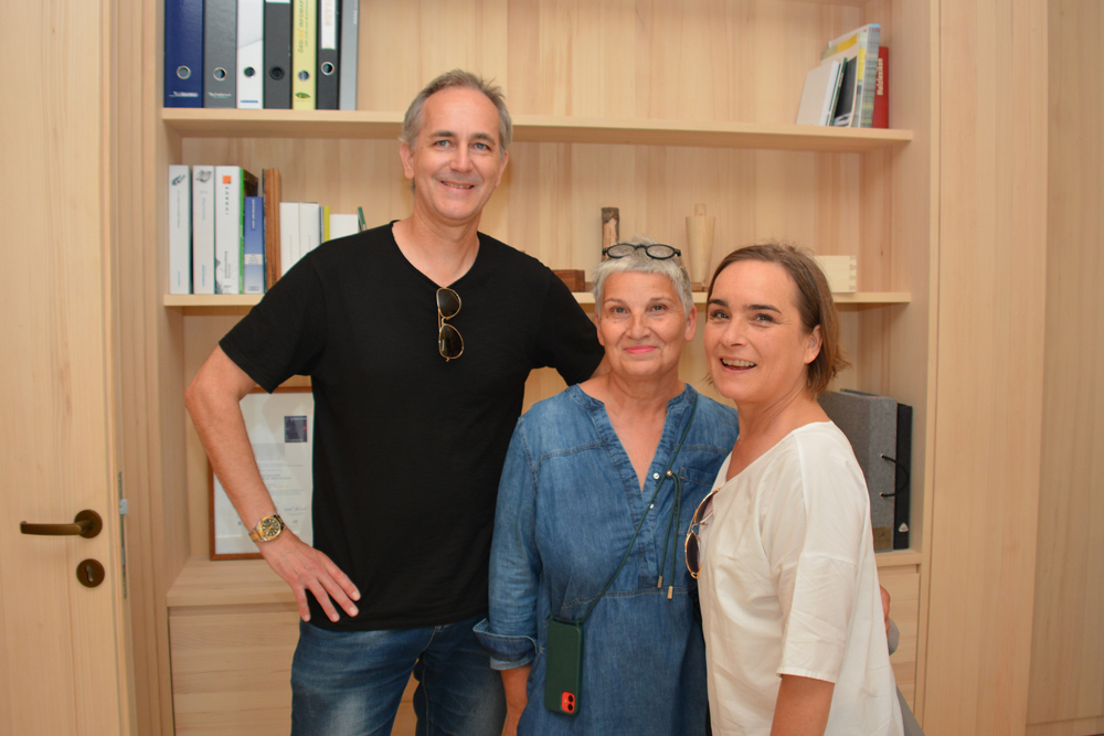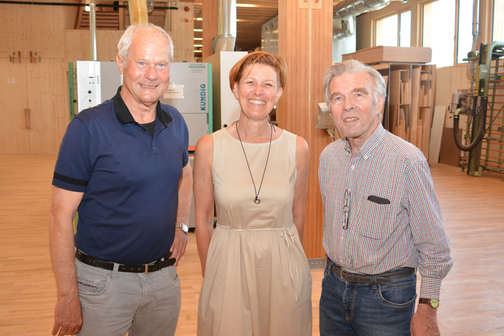 Ursula Feldkircher mit Mario Srokos und Martin Friedrich in der neuen Produktionsstätte (v. li.)