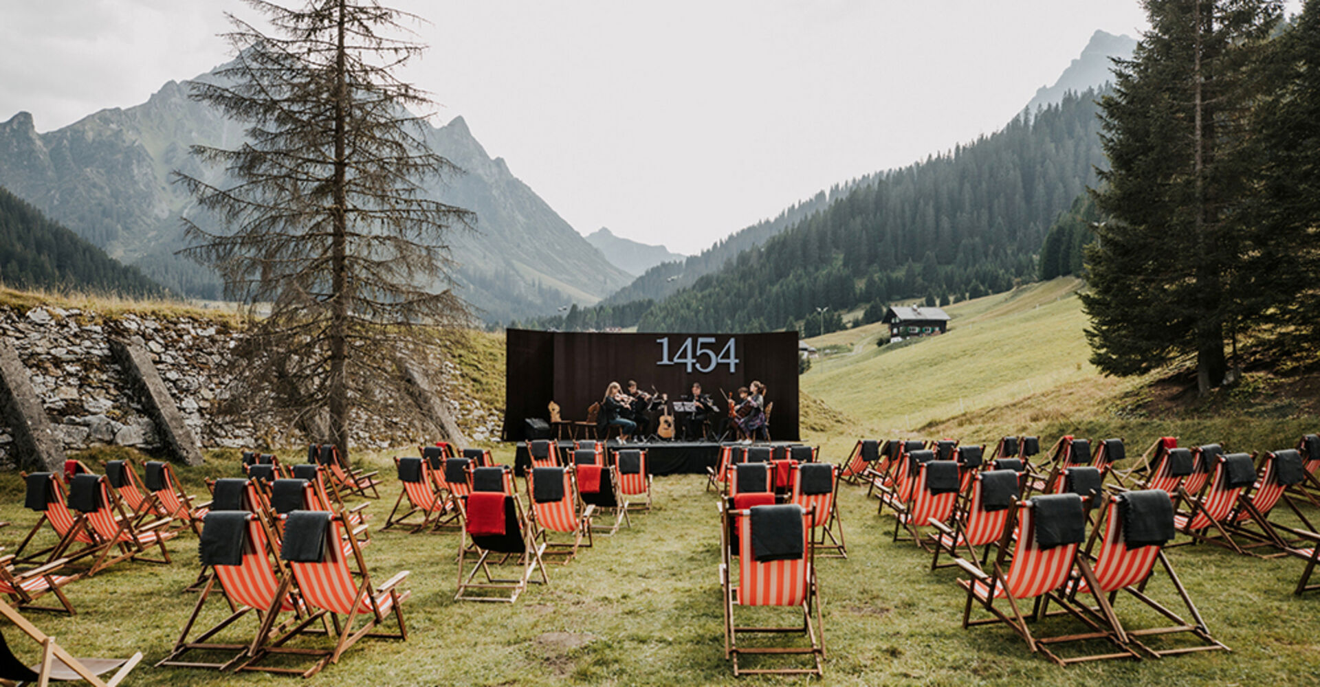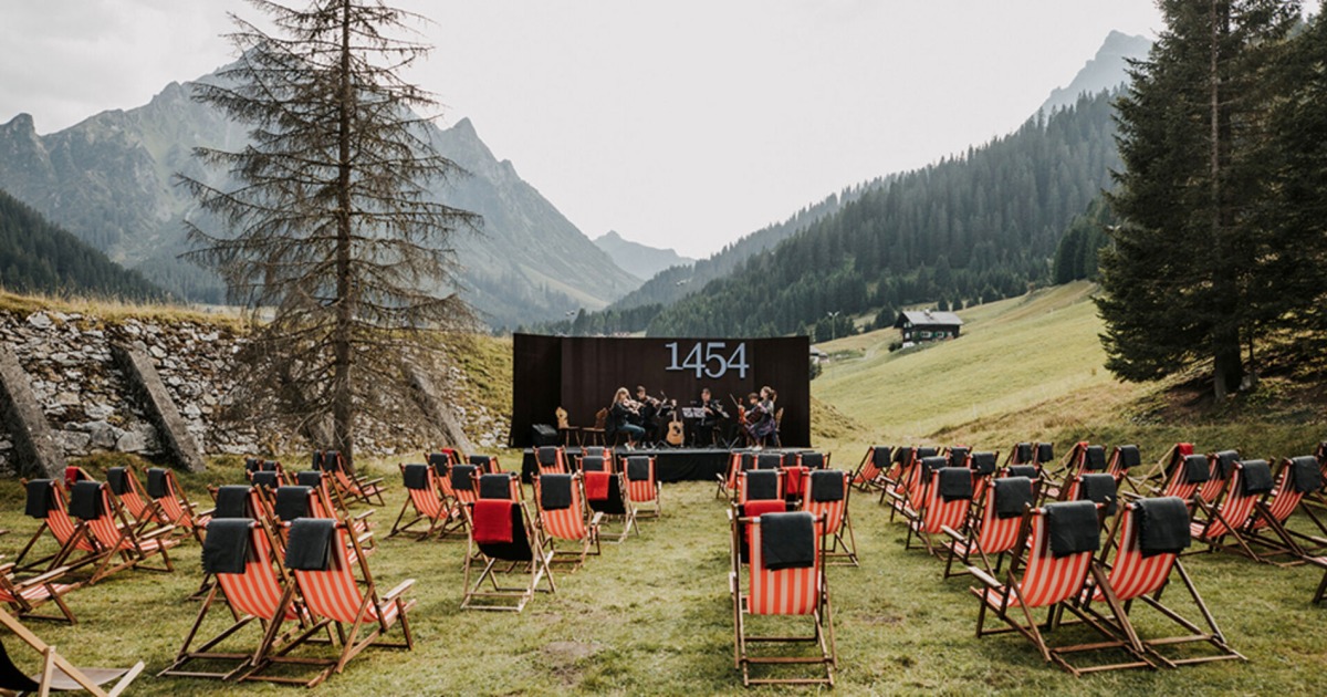 Entlang eines Lawinenwalls oberhalb des Hotel Madrisa hat sich ein wunderschönes natürliches Auditorium inmitten der Natur gebildet. Die rund 70 geladenen Gäste zeigten sich von der Einbettung des Ortes und vom Konzert der MusikerInnen von QUARTA unter der Leitung von Dirigenten Christoph Eberle begeistert. Das Konzert fand im Freien statt, die Gäste saßen bequem in Liegestühlen und konnten den Klängen in entspannter und gleichzeitig fast mystischer Atmosphäre inmitten der Natur lauschen. Kultur 1454 ist der Name der Kulturinitiative aus Gargellen, die auch zukünftig ausgewählte Veranstaltungen an diesem besonderen Ort organisieren will. „Vierzehn, vierundfünzig“ ist dabei nicht bloß die Höhenangabe des Ortes, vielmehr ein Bekenntnis zur Kultur im alpinen Raum.
