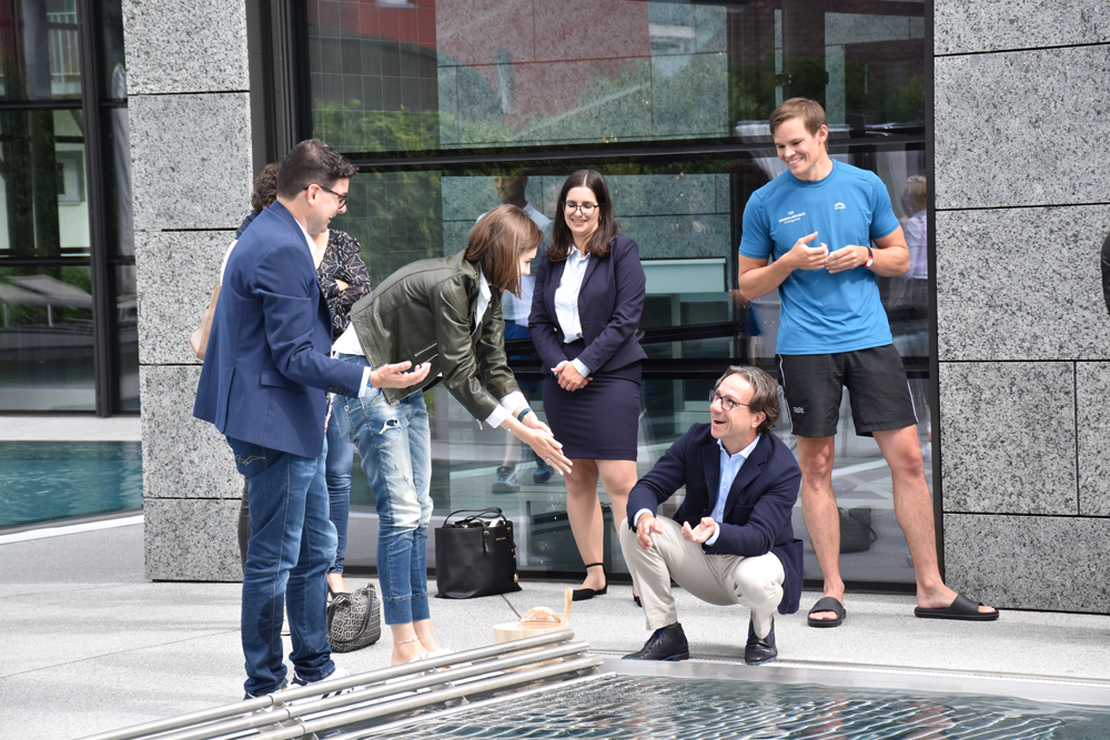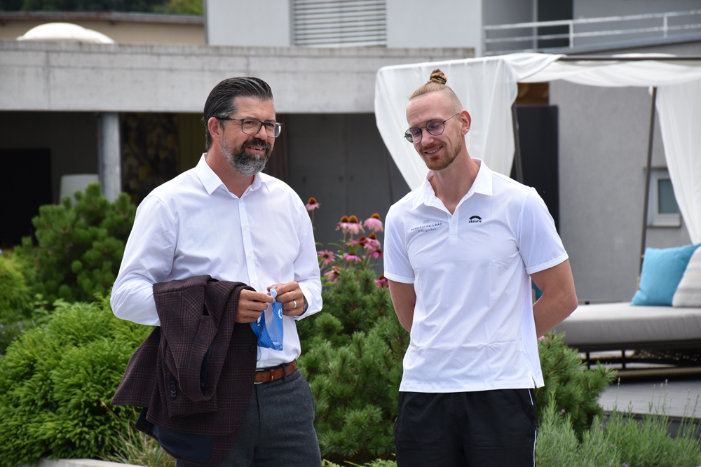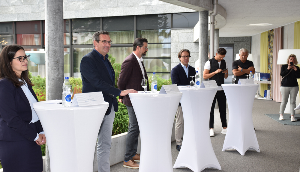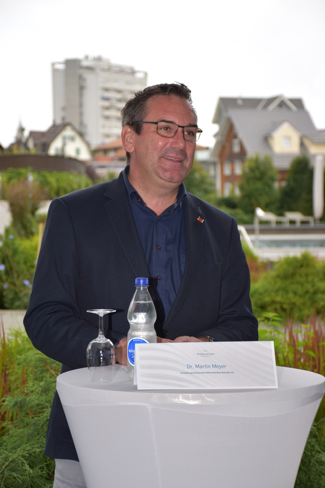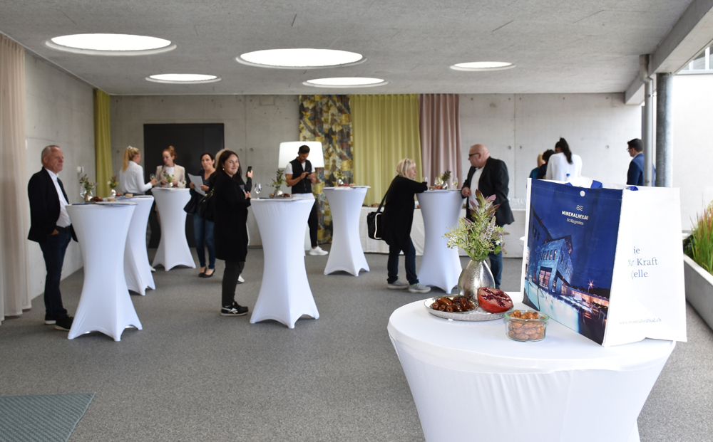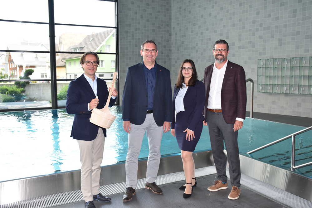 Daniel Grünenfelder (Neuausrichtung Mineralheilbad), Marcus Wengel („Mineraliengott“), Martin Meyer (Präs. Verwaltungsrat Mineralheilbad) und Lisa Fickel (Hochschule Luzern-Wirtschaft).