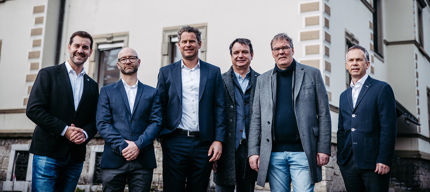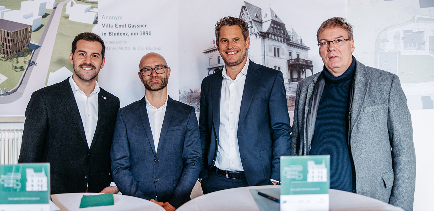 Als Projektpartner beteiligt sind Projektentwickler Primus Immobilien, das Architekturbüro Mitiska und Wäger sowie Generalunternehmer Tomaselli Gabriel BauGmbH.: Simon Tschann, Bürgermeister Bludenz, Dr. Daniel Gfrerer, Facharzt für Innere Medizin und Kardiologie, Markus Comploj, CEO von Getzner, Mutter und Cie., Markus Wäger und Markus Mitiska, beide mitiska wäger architekten zt oeg, Beatus Fleisch, Primus Immobilien GmbH) (v. li.)