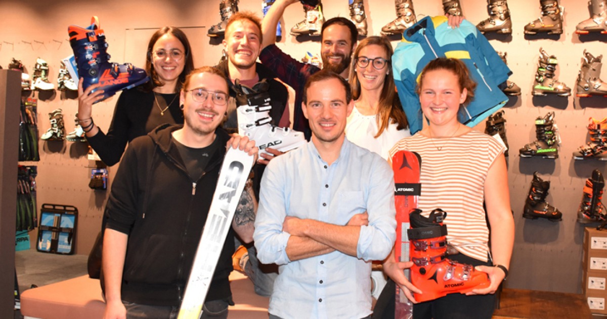 Für die kommende Winter-Saison startklar: Sport Gotthard-Inhaber Andreas Spettel (mi.) mit seinem Team Katharina Schmid, Christian Bereuter, Julian Rüf, Didi Schwarz, Verena Bischof und Jana Feuerstein (v. li.)