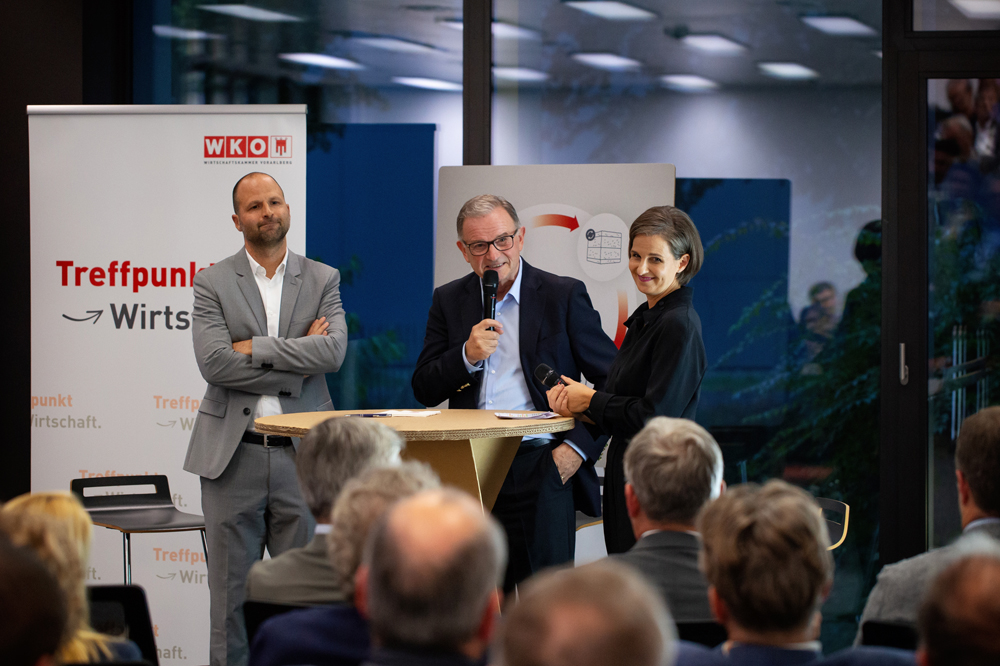 Beim neuen Veranstaltungsformat „Treffpunkt Wirtschaft“ der Wirtschaftskammer Vorarlberg wurde gemeinsam mit Finanzminister Magnus Brunner, Landesrat Marco Tittler, WKÖ-Generalsekretär NR Karlheinz Kopf und Rondo CEO Hubert Marte über den aktuellen Stand, aber auch über die Zukunft des Energiemarktes sowie der Versorgungssicherheit für Vorarlbergs Unternehmen diskutiert.TOP: Der nächste „Treffpunkt Wirtschaft“ wird am 9. März 2023 stattfinden.