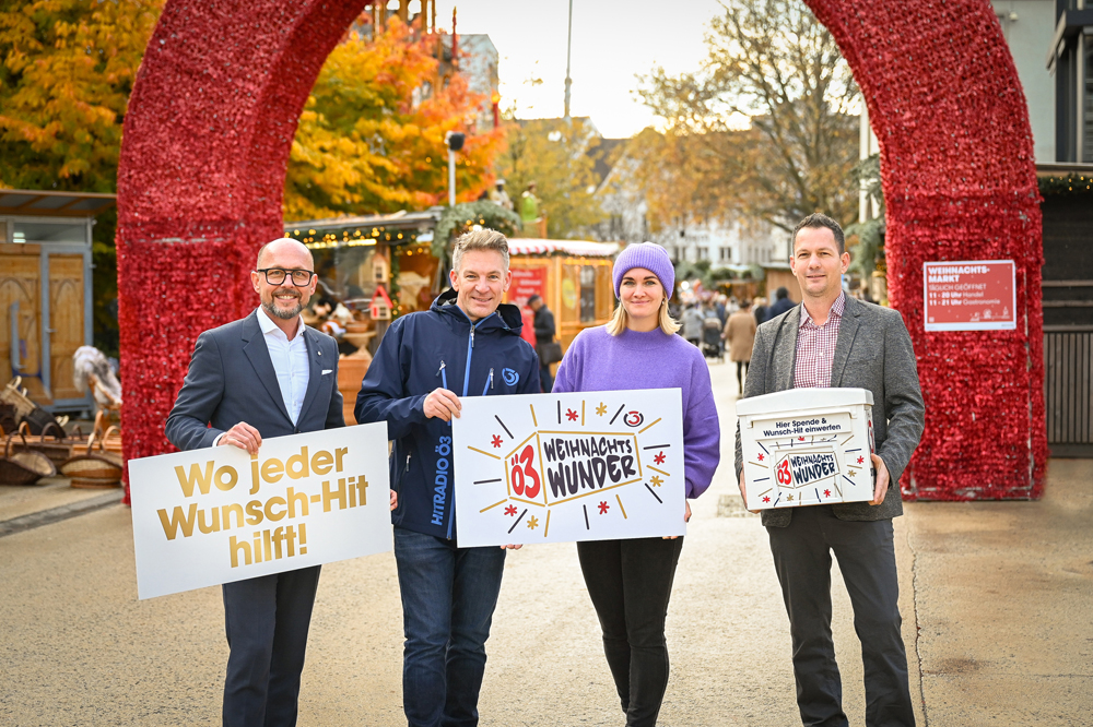 Im Mittelpunkt steht rund um die Uhr das gläserne Ö3-Studio direkt am Kornmarktplatz vor der Nepomukkapelle, in dem die drei Ö3-Moderatoren wieder zahlreiche prominente Gäste begrüßen – Live-Musik inklusive! Für die Besucher:innen am Platz gibt es auch heuer wieder eine Videowall, um das Geschehen im Container noch besser mitverfolgen zu können. Und es wird wie gewohnt magisch: Besondere Gäste werden für besondere Momente sorgen. Akustik- Auftritte österreichischer Musiker:innen vermitteln Gänsehaut-Stimmung. Und Kratky, Hiller und Knoll werden durchmoderieren, „adventfasten“ und in den 120 Stunden alles tun, um die Wartezeit auf das Christkind so abwechslungsreich und außergewöhnlich wie nur möglich zu verkürzen. Im Zentrum der Aktion steht das Motto „Sie spenden – wir senden“: Die Lieblingssongs der Ö3-Gemeinde werden auf Wunsch zur einzigartigen Playlist – und das dafür bereitgestellte Spendengeld für den „Licht ins Dunkel-Soforthilfefonds“ zur unmittelbaren Hilfe für Familien in akuten Notlagen in Österreich. Spenden können rund um die Uhr am Spendentelefon, per SMS oder online abgegeben werden. Rund 21 Millionen Euro sind in den ersten acht Jahren beim Ö3-Weihnachtswunder insgesamt zusammengekommen. Hier kann das Geschehen per Livestream verfolgt werden.