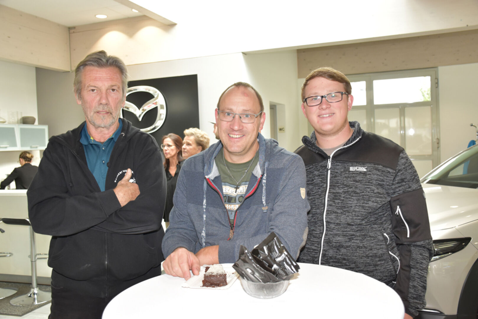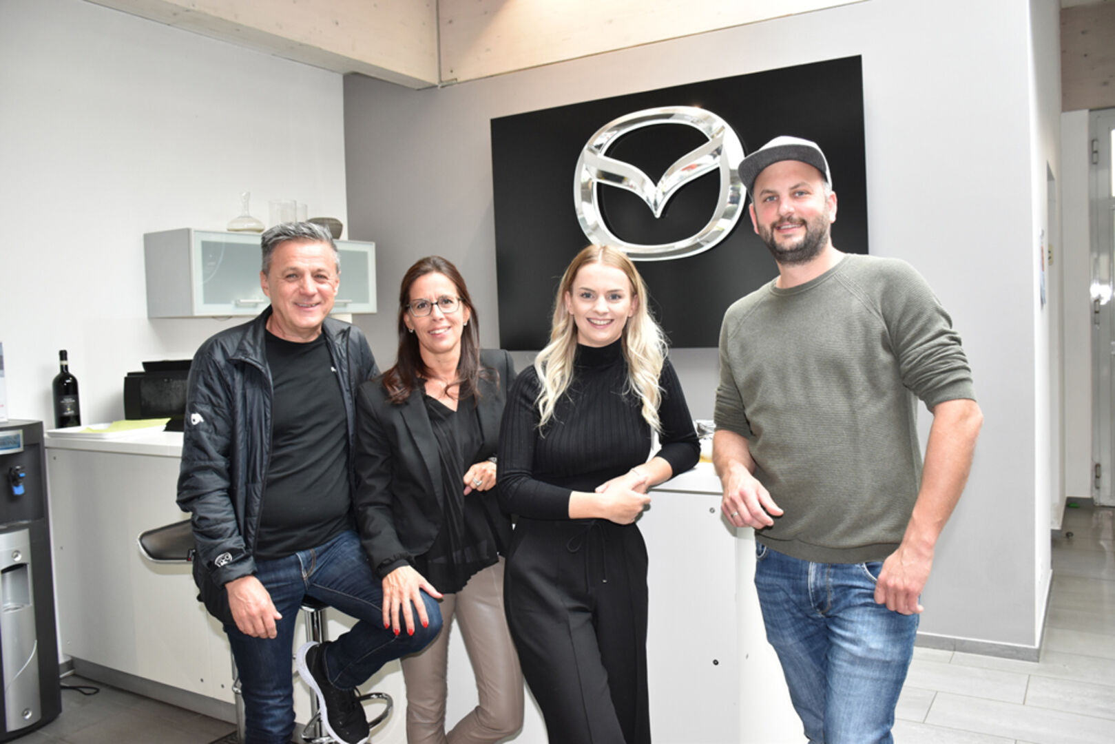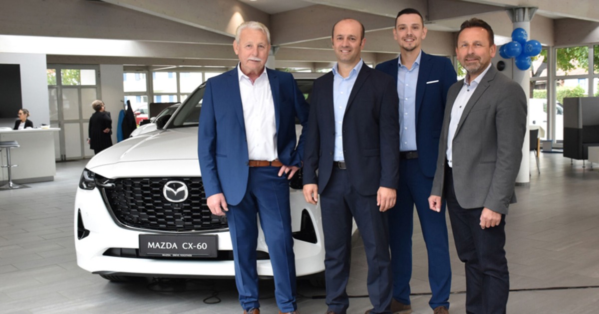 Walter Maier (Geschäftsführer), Savas Tip (Mazda-Markenleiter), Sead Samardzic (Verkaufsberater) und Markus Maier (Geschäftsführer)