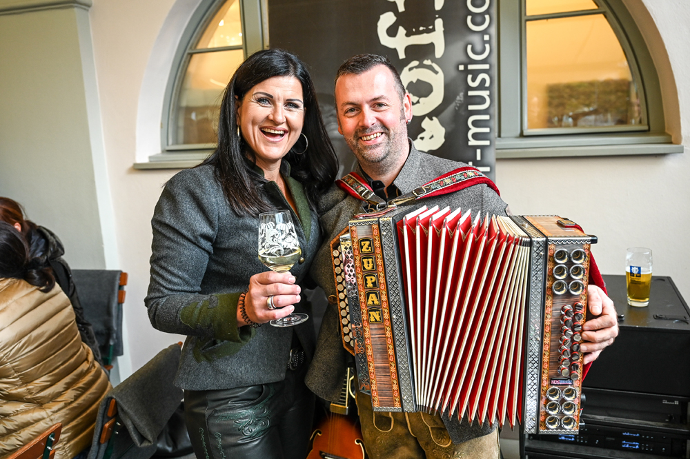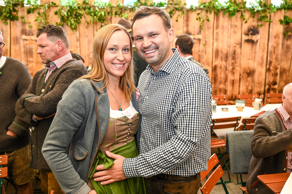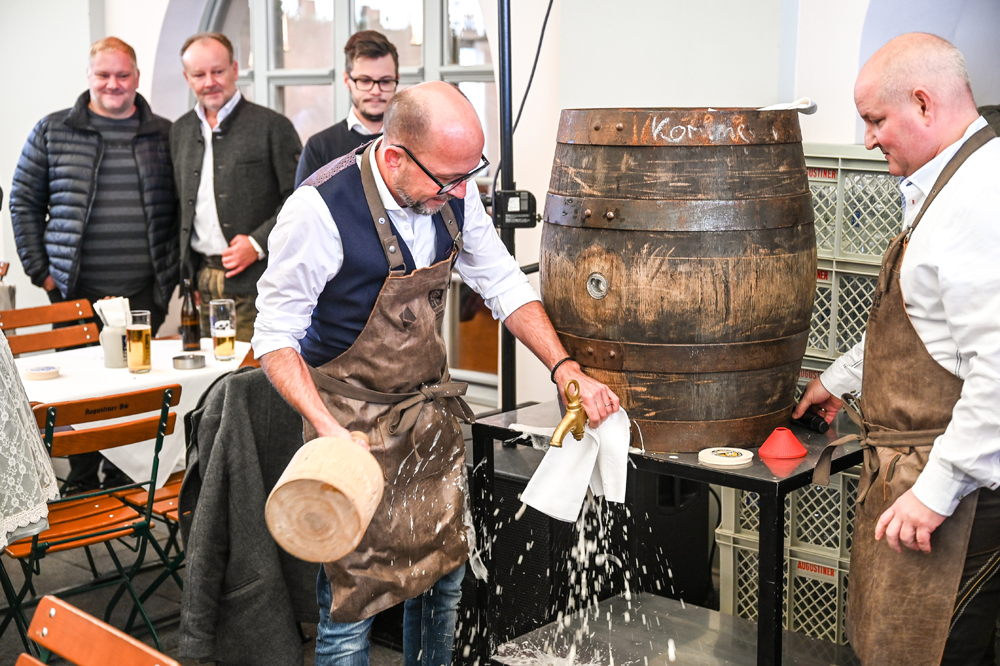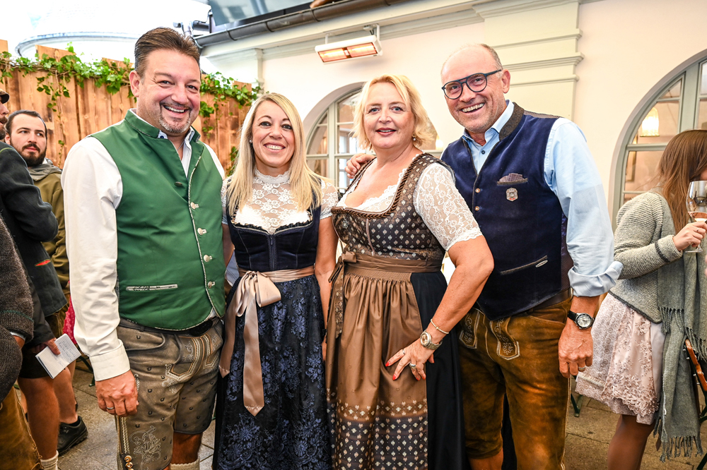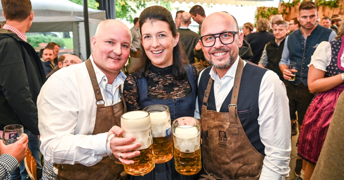 Die Kornmesser Gastgeber Thomas und Theresia Zwerger mit Bürgermeister Michael Ritsch nach dem erfolgreichen Fassanstich.