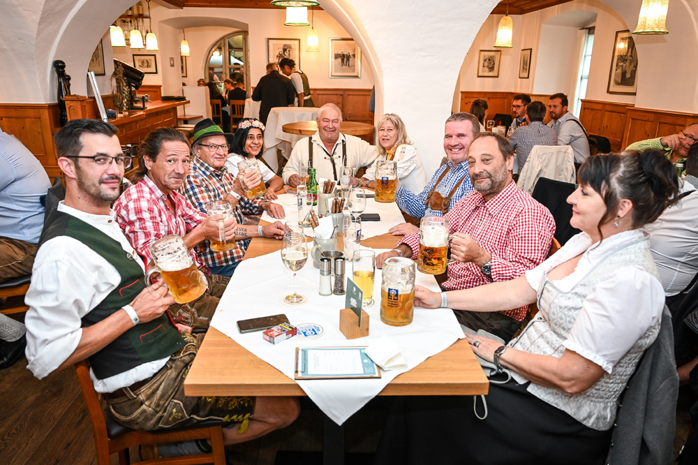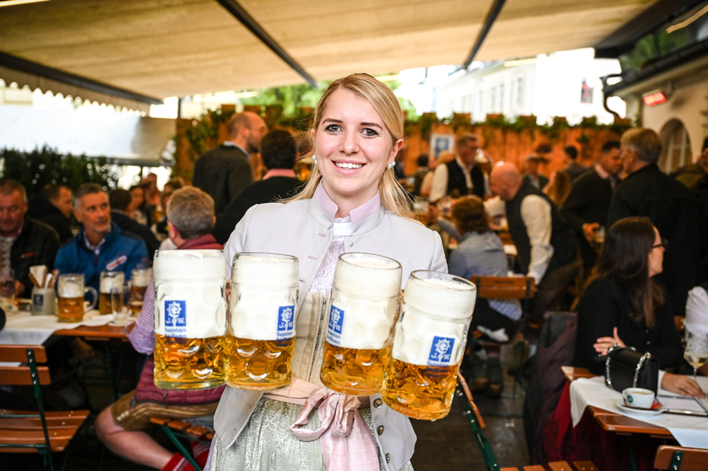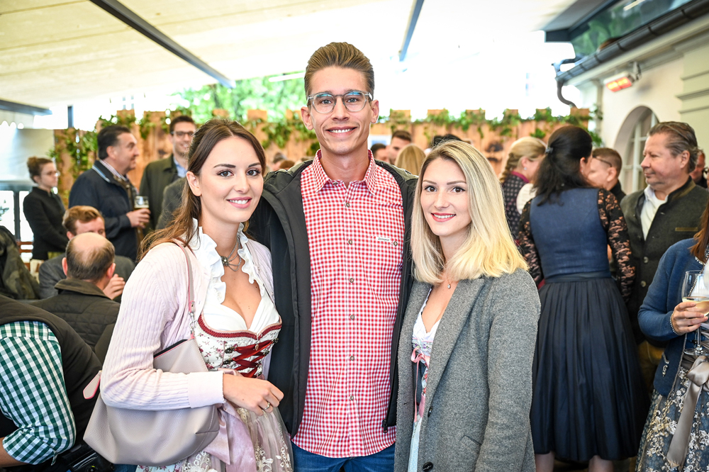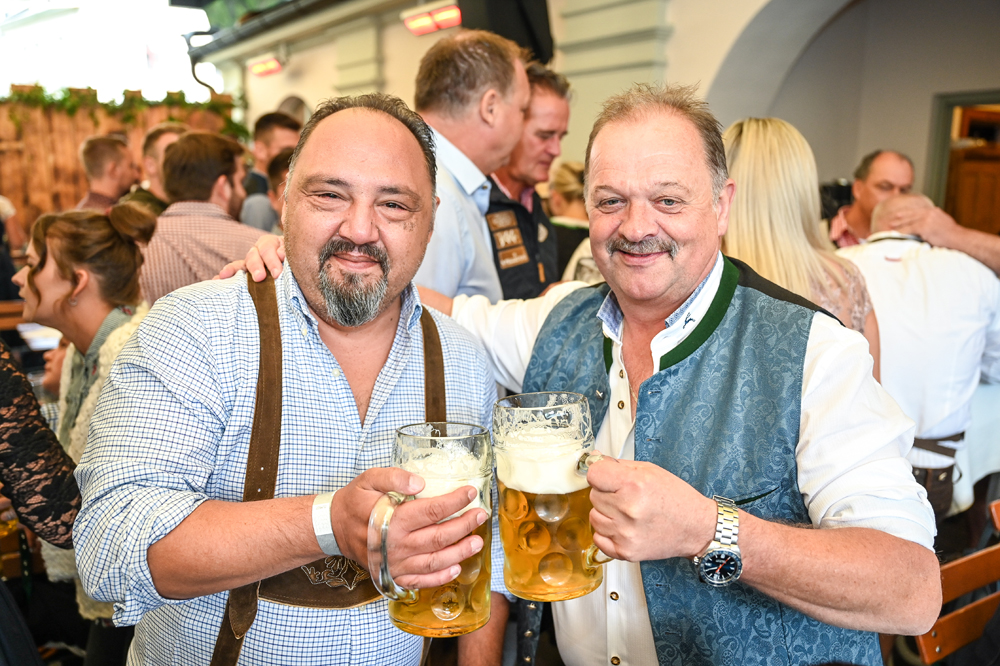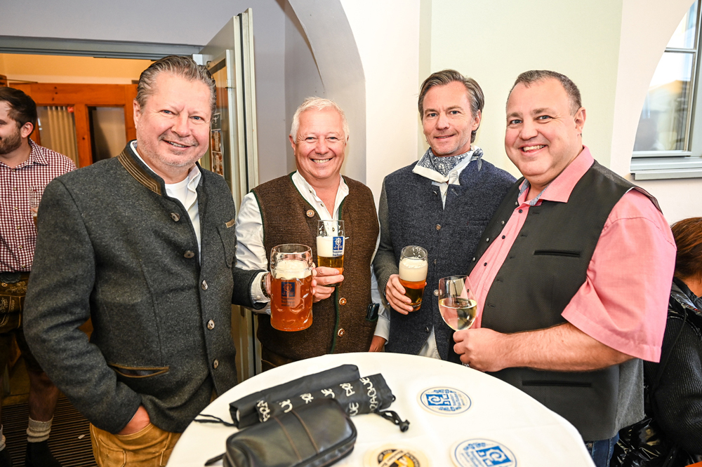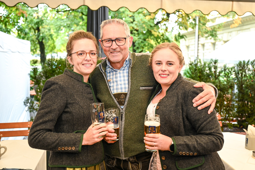 Die Kornmesser Gastgeber Thomas und Theresia Zwerger mit Bürgermeister Michael Ritsch nach dem erfolgreichen Fassanstich.