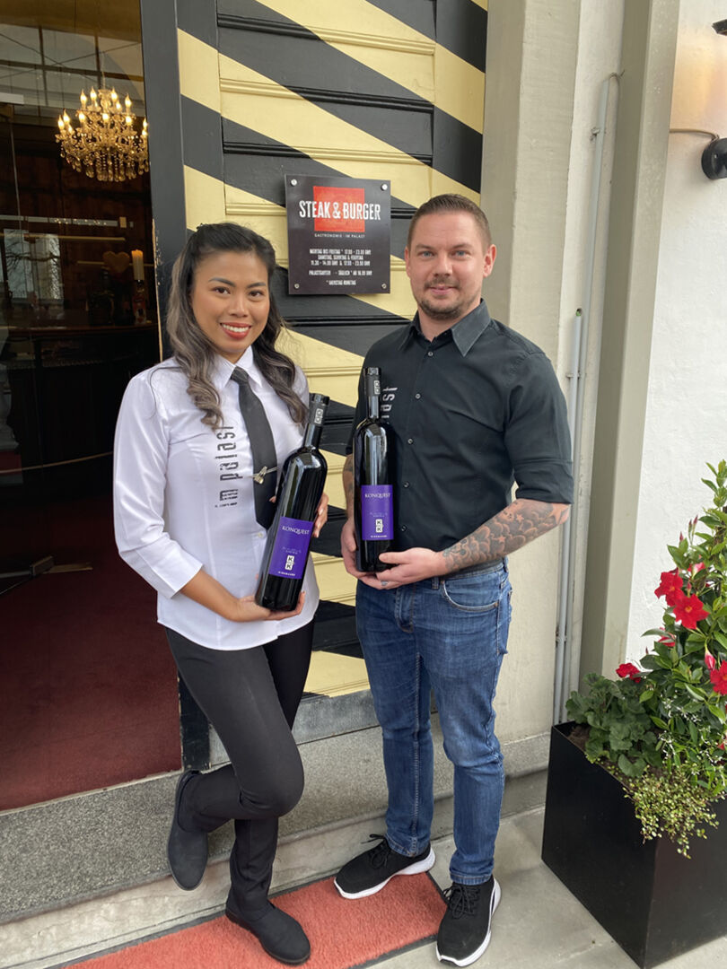 Das neue Palast Team als Gastgeber: Dariusz Szemis (Küchenchef), mit Winzer Walter Kirnbauer, Anina Ocampo (Serviceleitung) Phillip Jabornig (operative GL), M
