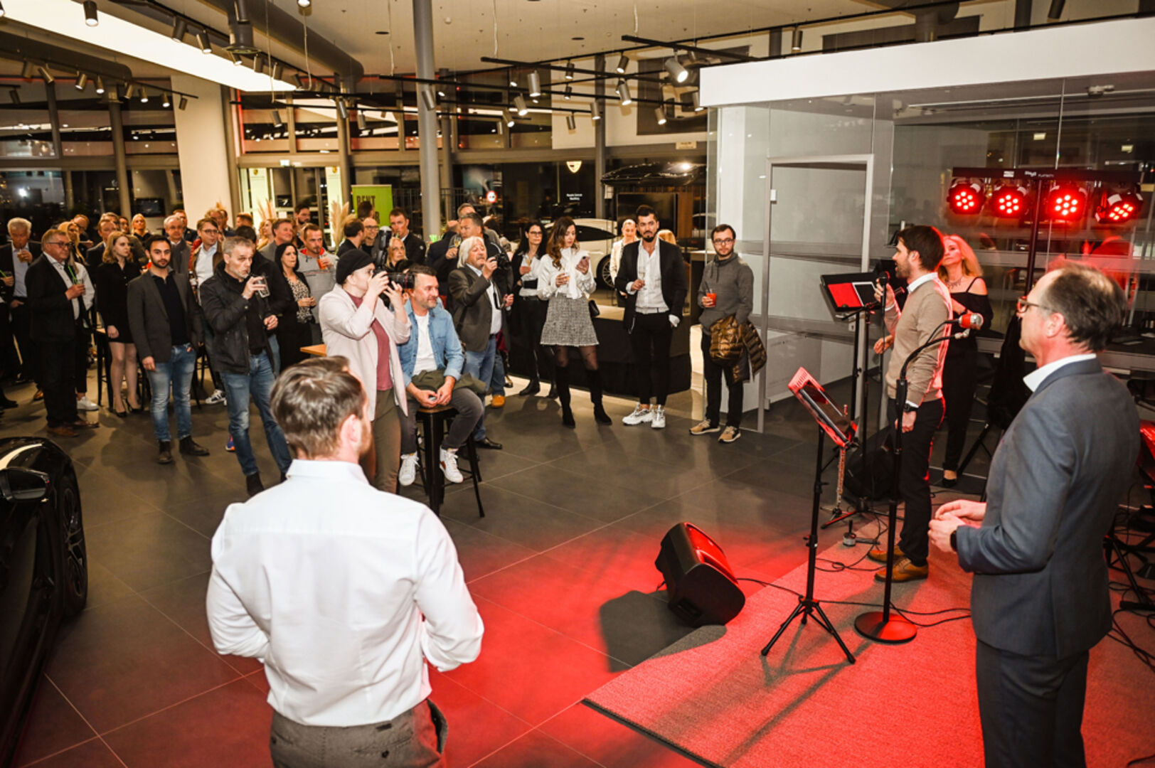 Entsprechend groß das Interesse der geladenen Porsche- und Autofans, im 5-türigen Sportwagen Probe zu sitzen. Das mit allen erdenklichen Highlights ausgestattete Modell inkl. Panoramafestglasdach wurde von Geschäftsführer Rudi Lins (größter Mobilitätsanbieter mit sechs Standorten in Vorarlberg) und seinem Team in allen Details vorgestellt. TOP: Bis zu 498 km Reichweite, sportliches Design, ein großzügiges Platzangebot und außergewöhnlicher Komfort. Der neue Taycan Sport Turismo vereint das Beste aus zwei elektrisierenden Welten. Mehr Fotos: www.weekend.at