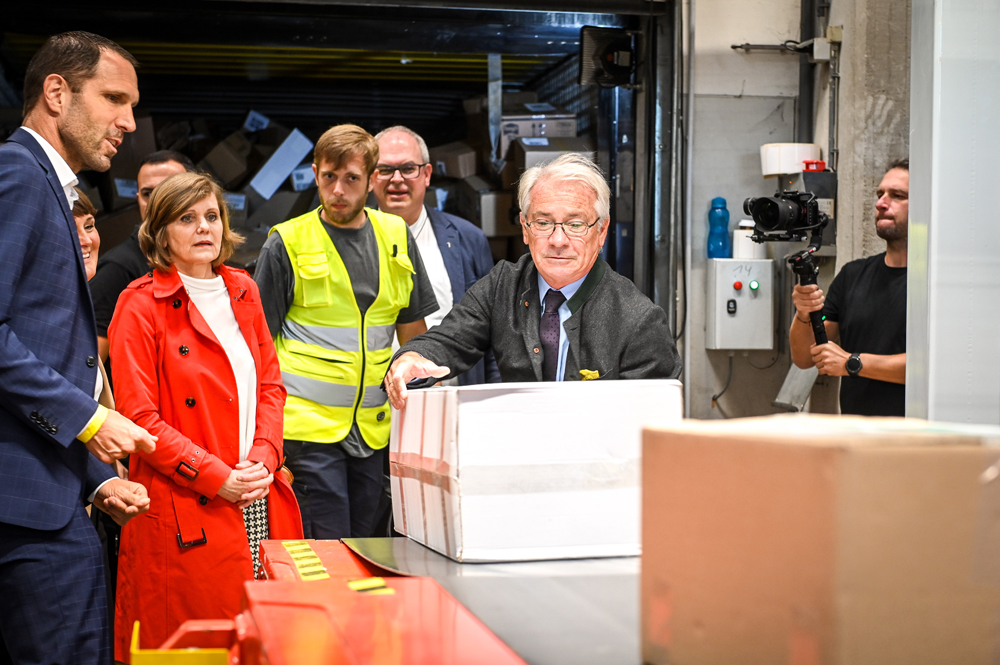 Die Erweiterung des Logistikzentrum im Gewerbegebiet Wolfurt ist sowohl für den Arbeitsmarkt, heimischen Betriebe und Bevökerung ein Gewinn. Nach eineinhalb Jahren Bauarbeiten wurde das Logistikzentrum im August in Betrieb genommen und jetzt feierlich eröffnet. TOP: Durch die neue Sortieranlage können pro Stunde statt 5000 nun 8000 Pakete sortiert werden. Hier sind nunmehr 160 Mitarbeiter:innen – um 40 mehr – tätig.