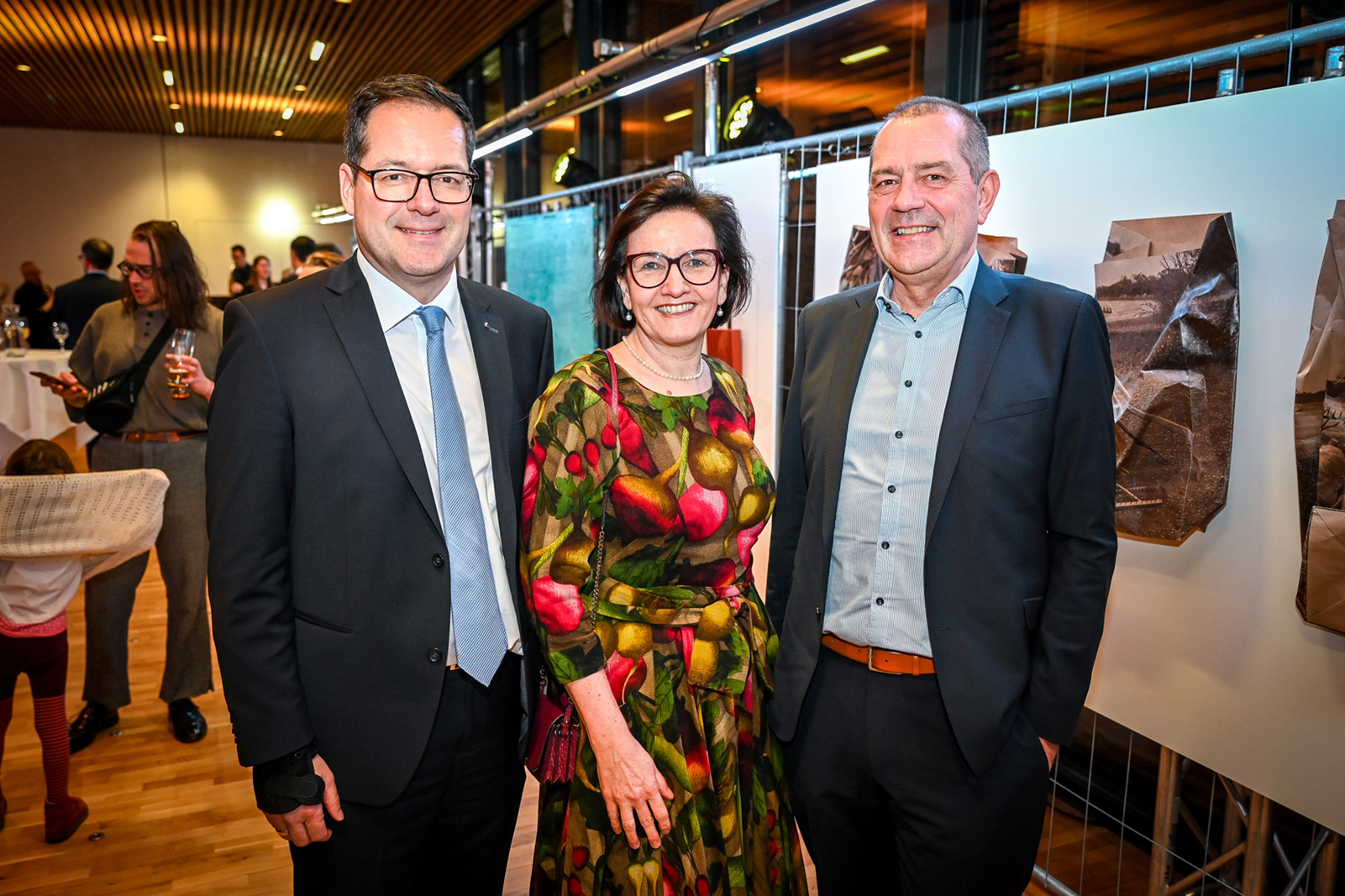 Vorstand Vors. und SR Harald Giesinger, Bgm. Andrea Kaufmann (SR Vors. und AR) und Roland Jörg (Kulturamtsleiter und Jury) (v. li.)