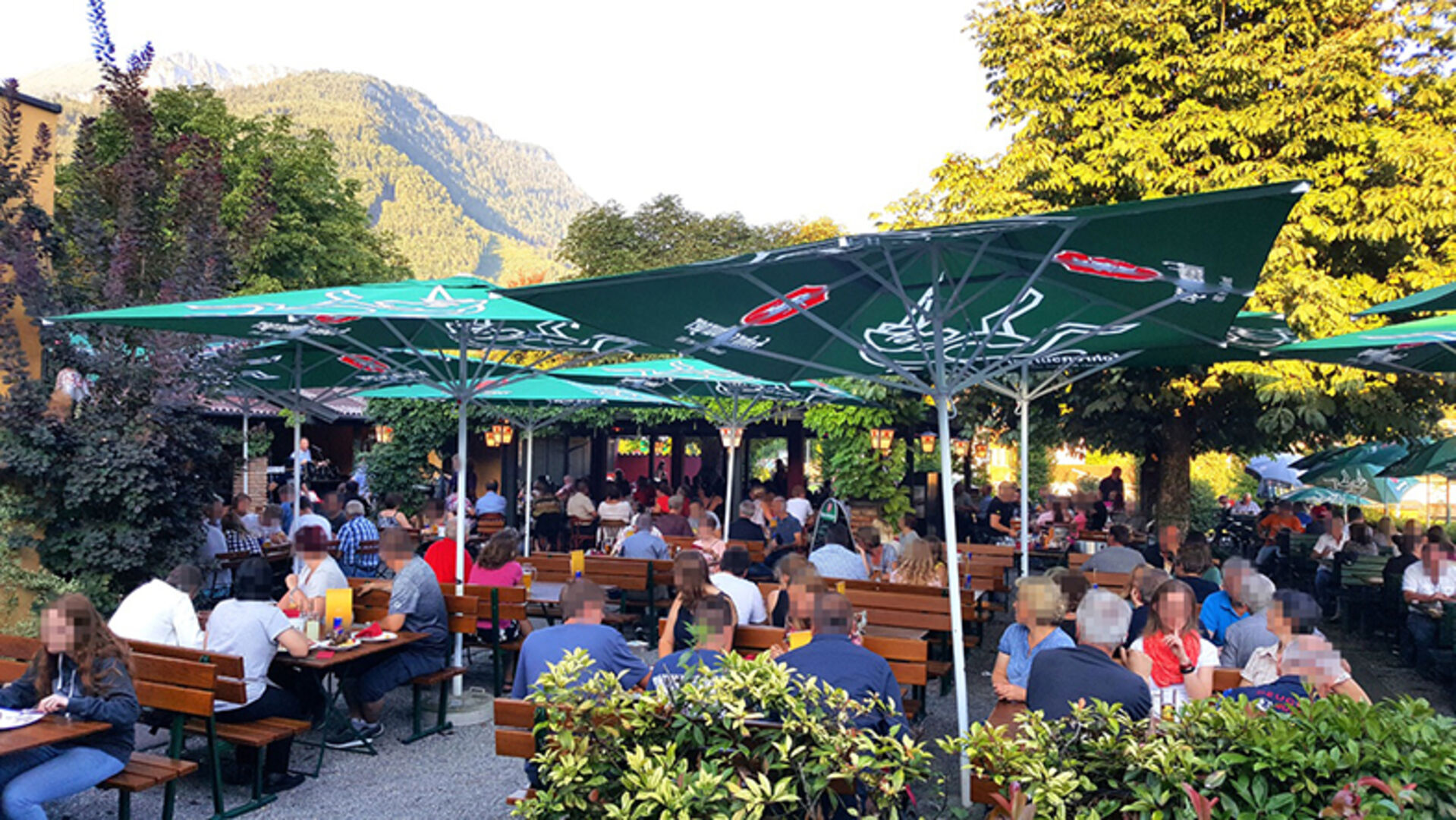 So heißt es normalerweise. Bei uns ist es genau umgekehrt, jeder Treffer unserer österreichischen Nationalmannschaft wird mit einem gratis Shot für alle Gäste belohnt (man darf also auf Elfmeterschießen hoffen). Durch die Bedachung sind ca. 150 Fans wettergeschützt, zusätzlich gibt es rund 100 weitere Plätze im Garten, welcher auch gerne von Bikern (mit oder ohne Strom oder Benzin) besucht wird, da es weitere Highlights zu erleben gibt: