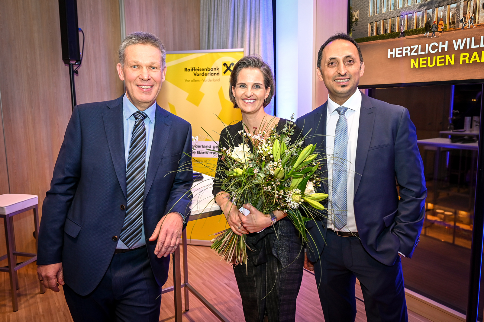 Vorstand Dir. Aydin Aktas (Raiffeisenbank Vorderland), Bürgermeister Karl Wutschitz, Sulz, Dir. Michael Alge, (Vorstandsvorsitzender Raiffeisen Landesbank…