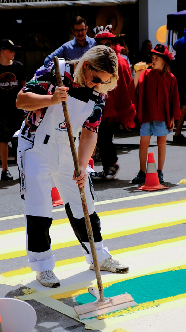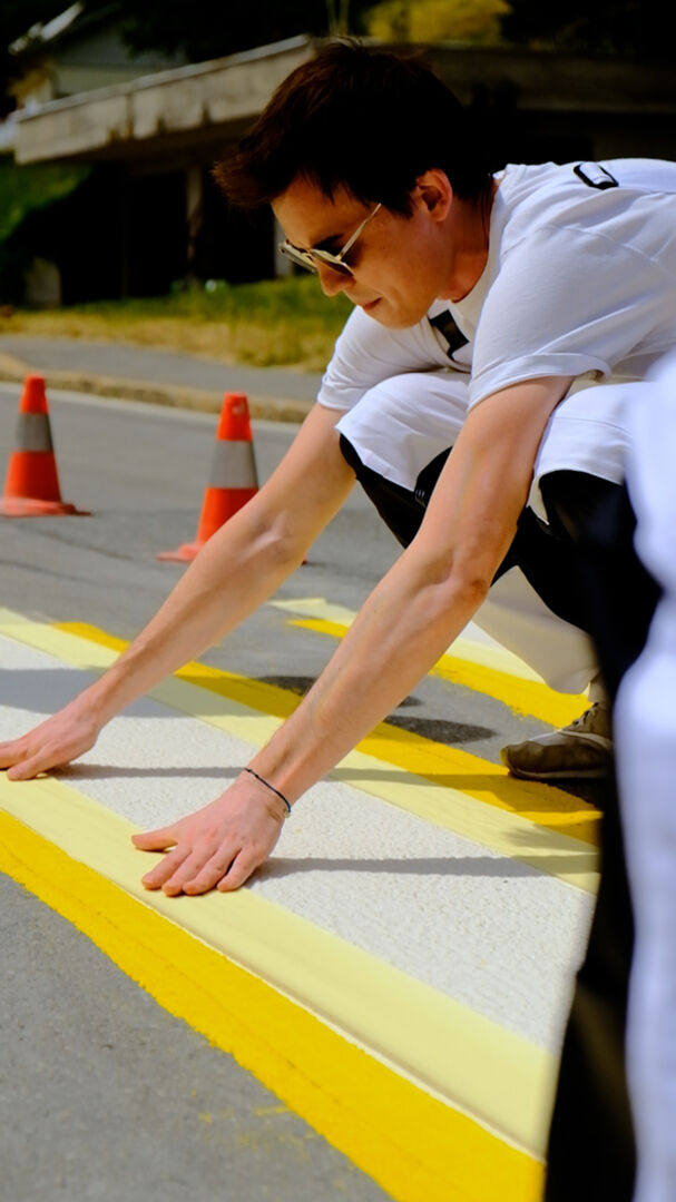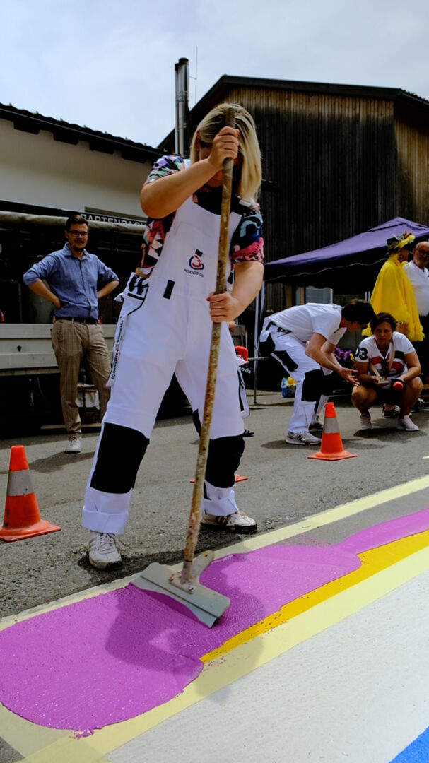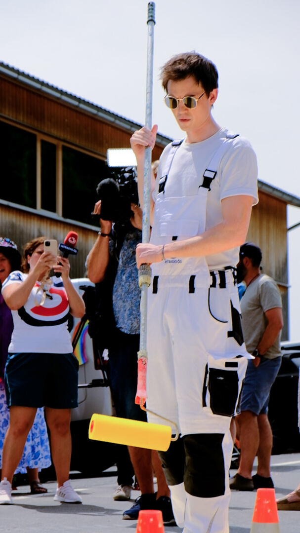 Maleroutfit, Pinsel, Eimer und Farbe: Normalerweise ist das Mikrofon ihr Werkzeug, am Dienstag haben die Ö3-Wecker-Moderator:innen Gabi Hiller und Philipp Hansa das aber gegen Pinsel und Farbe getauscht und persönlich dafür gesorgt, dass in Fluh der Zebrastreifen bei der Volksschule Farbe bekommt. Ö3 setzt damit ein Zeichen für mehr Toleranz, das nicht nur im Pride Month sondern das ganze Jahr über bunt leuchtet.