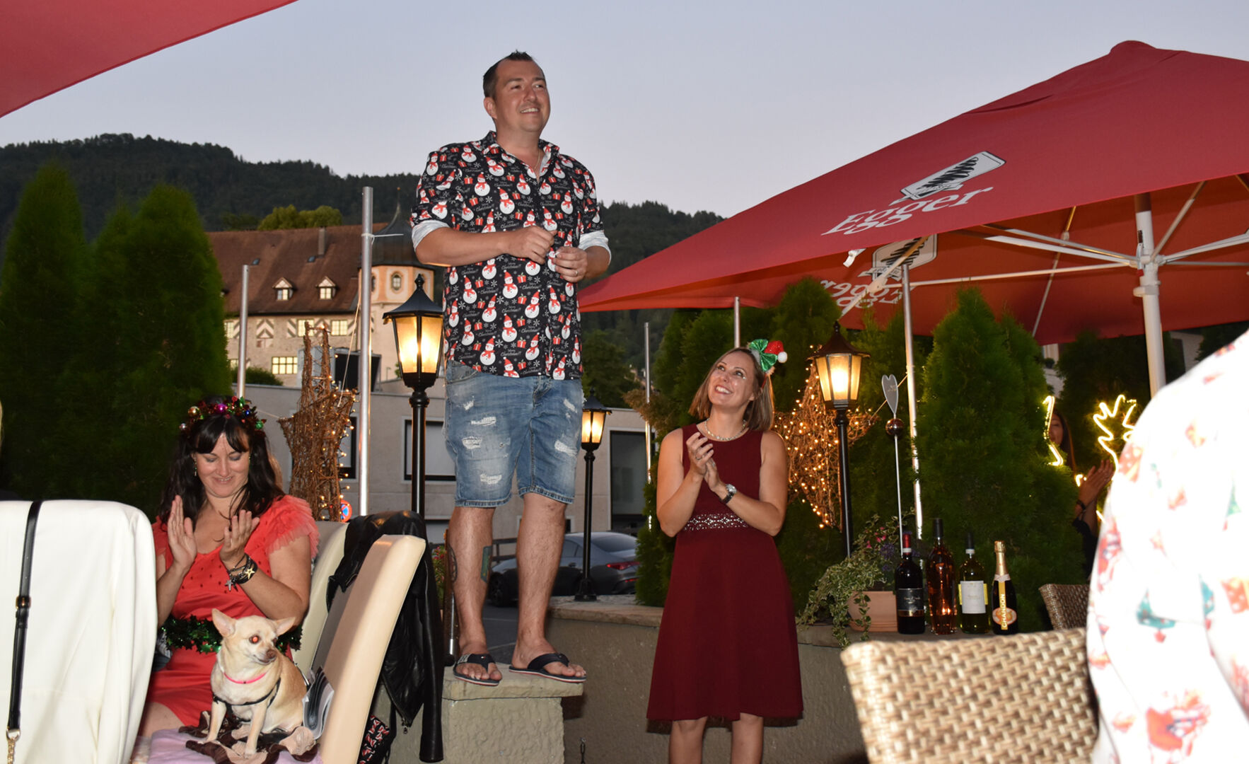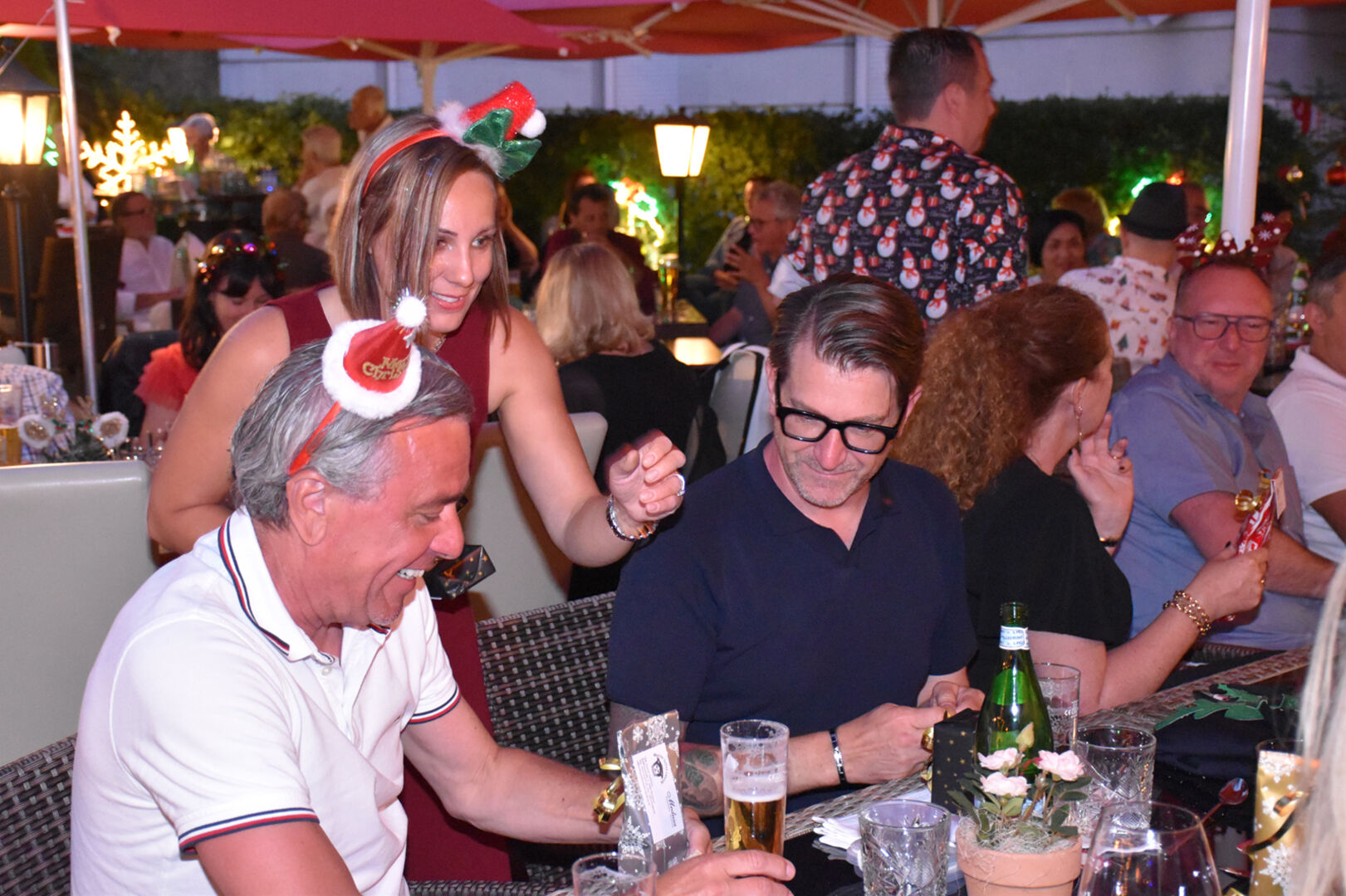 Im X-Mas-Dress zur Weihnachtsfeier: Martin Steiner und Georg Grünwald