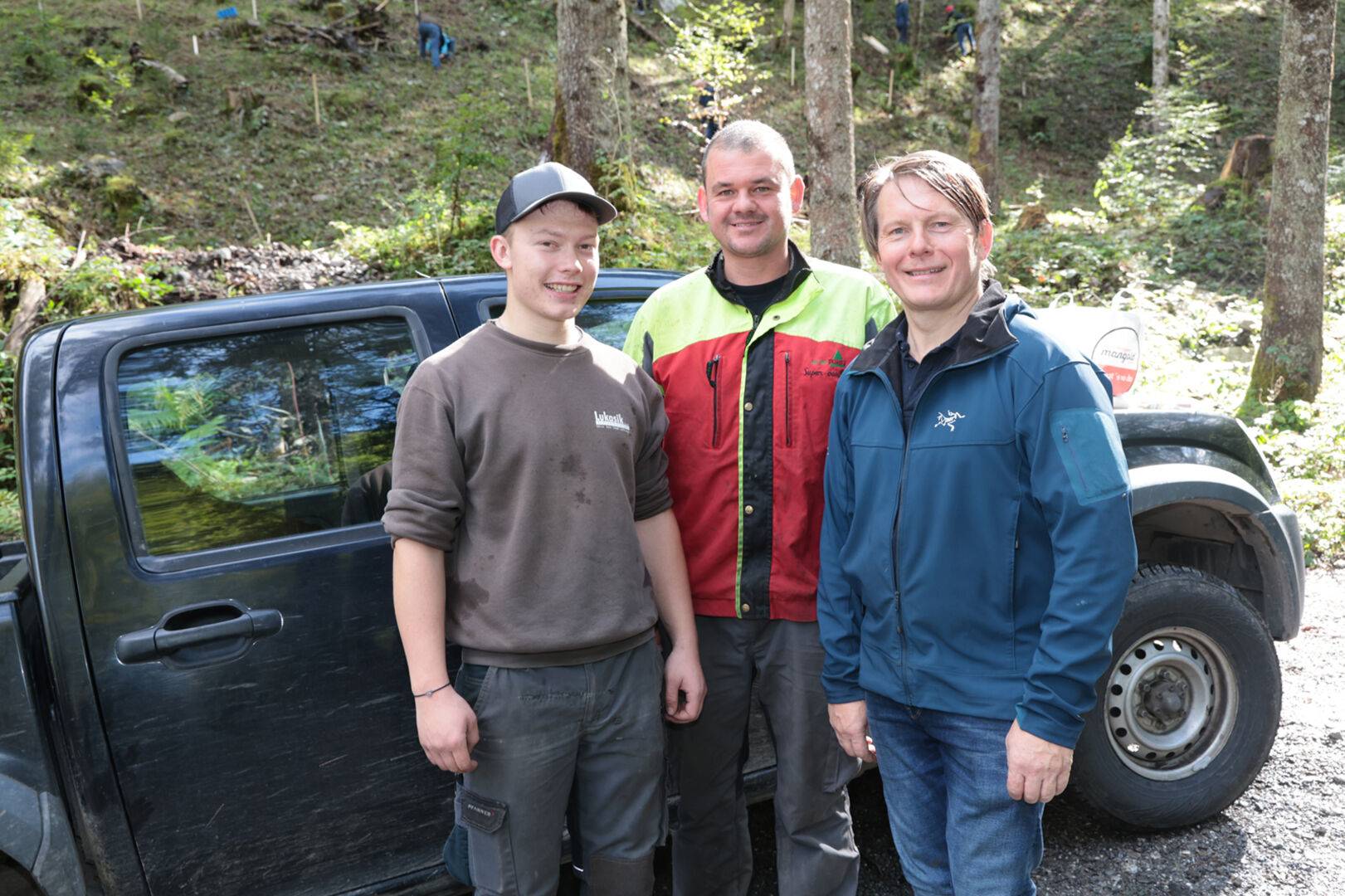 Dieter Haid, Markus und Fynn Thaler im Forsthof Felsenau.