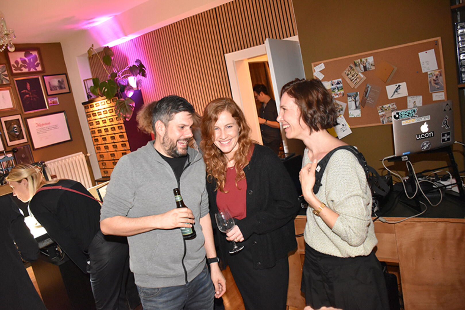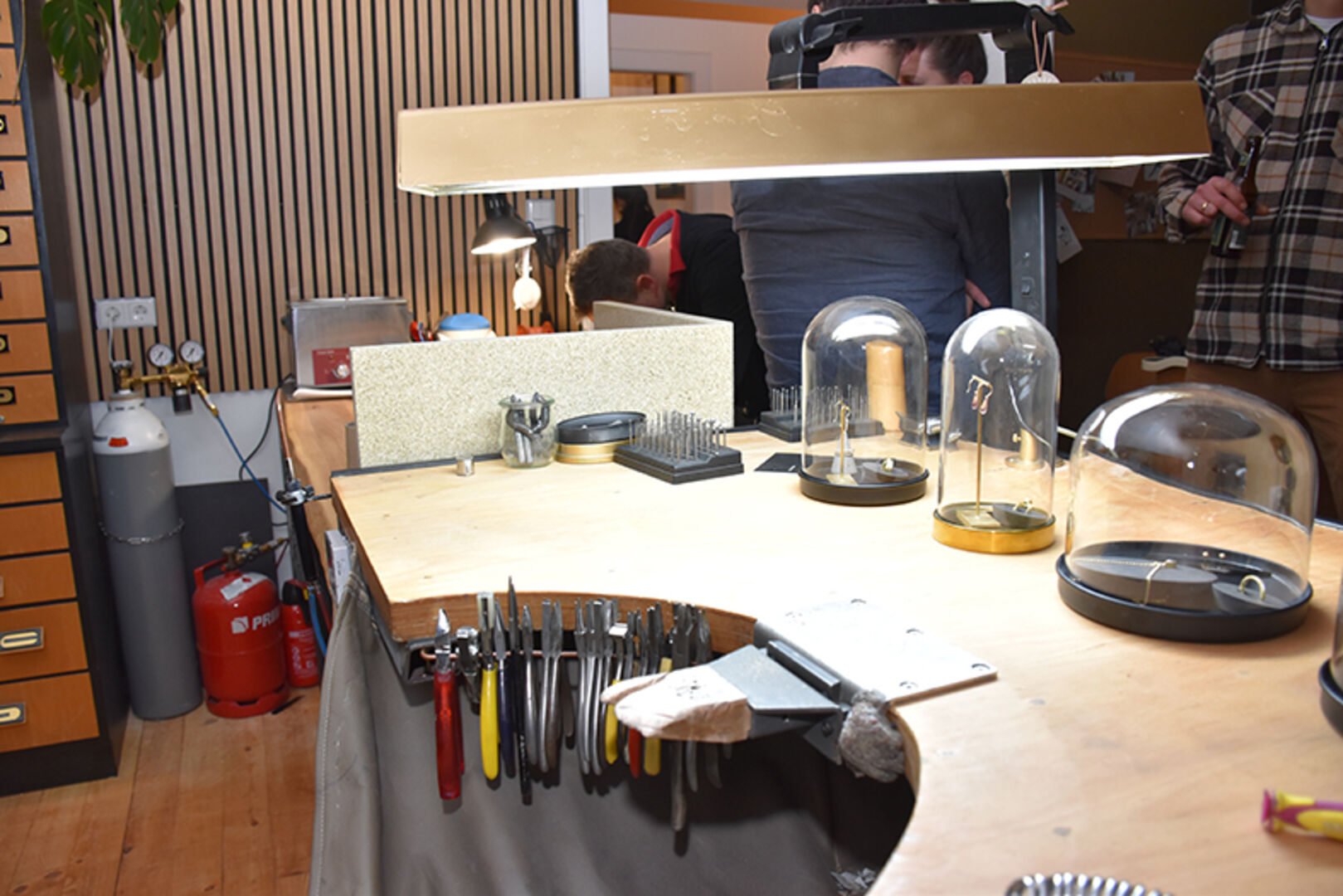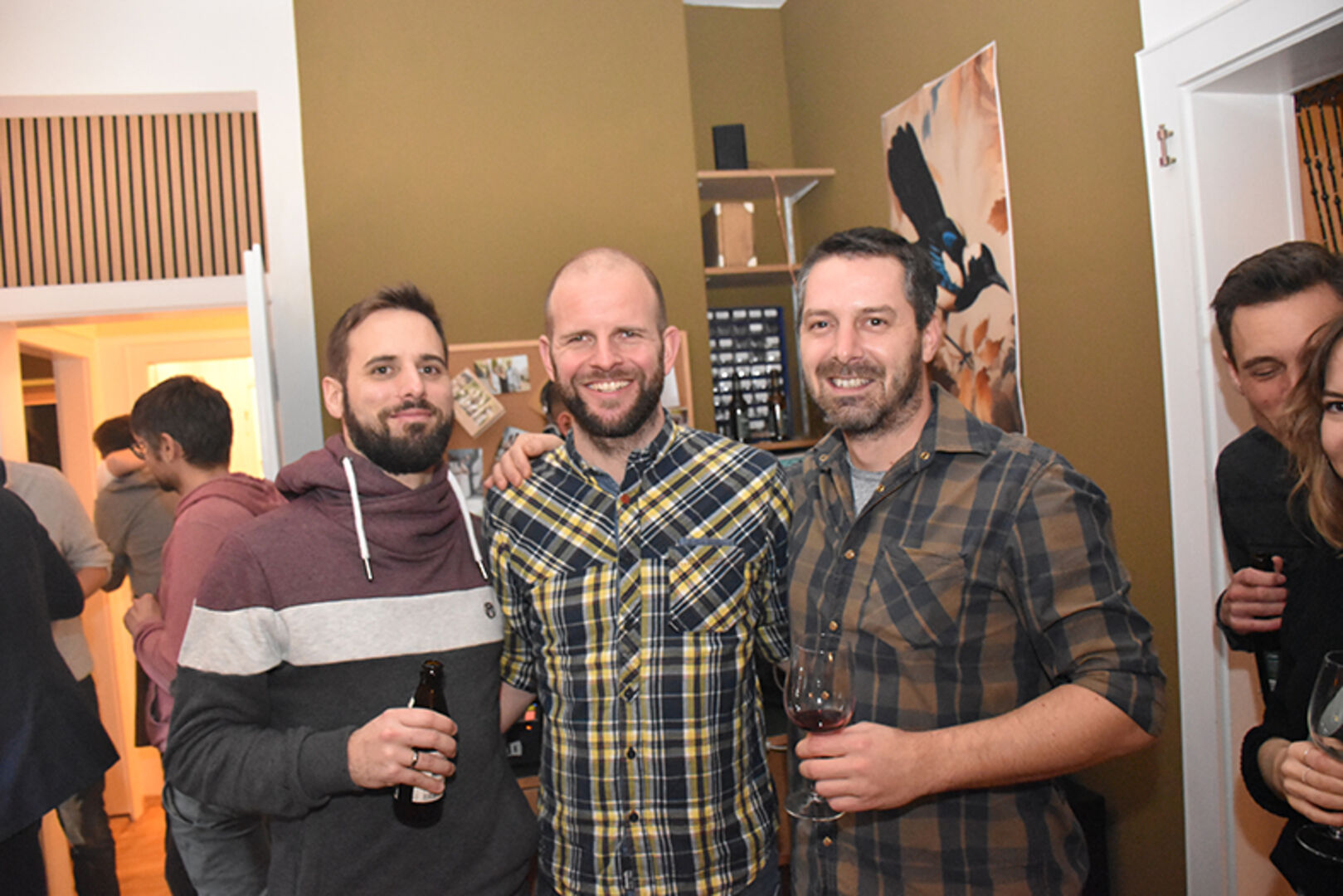 Gastgeberin und Goldschmiedemeisterin Katrin Eberhard mit Markus Andres (mi.), mit Bruder Simon Eberhard (li.) und Mama Ute Eberhard (re.)