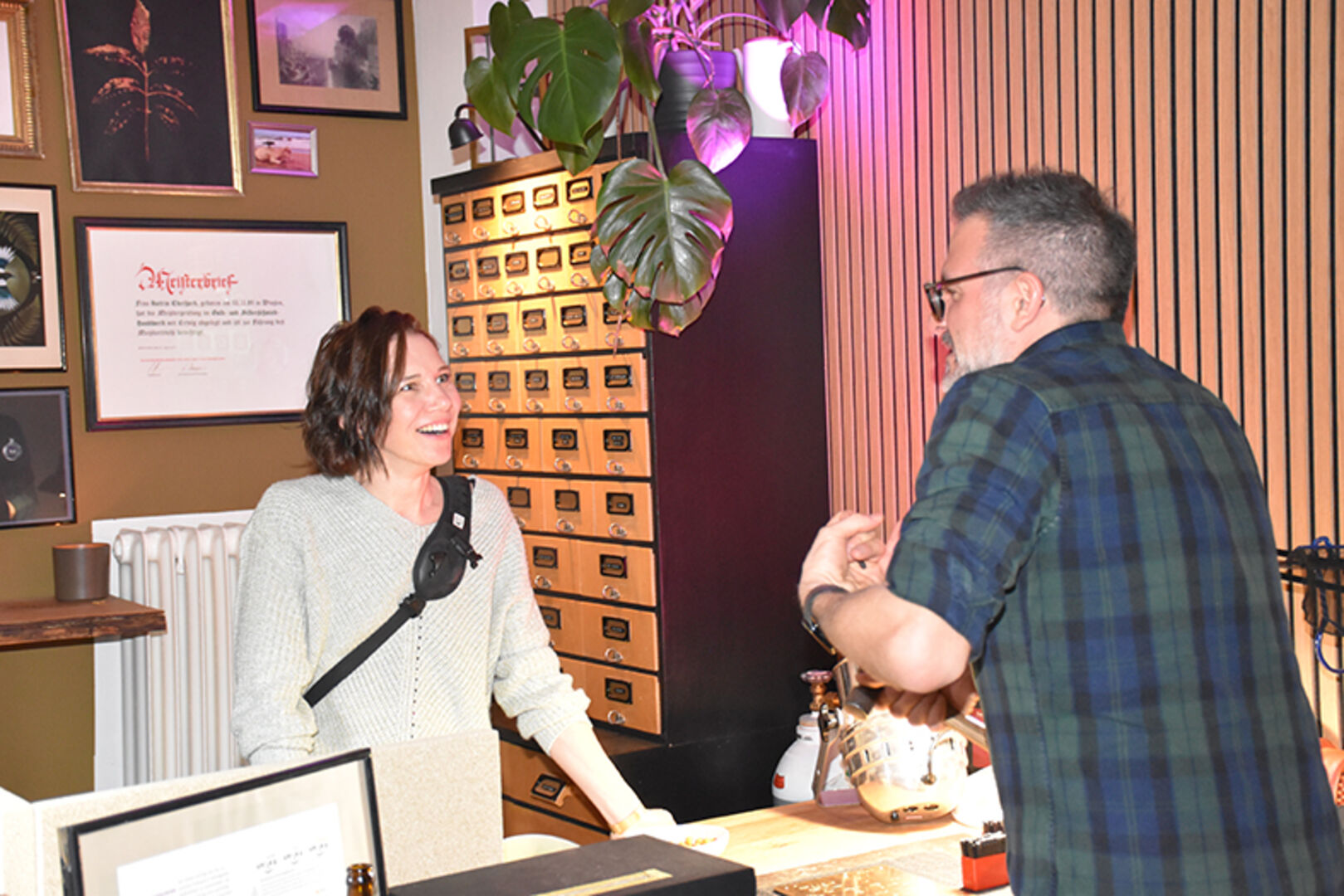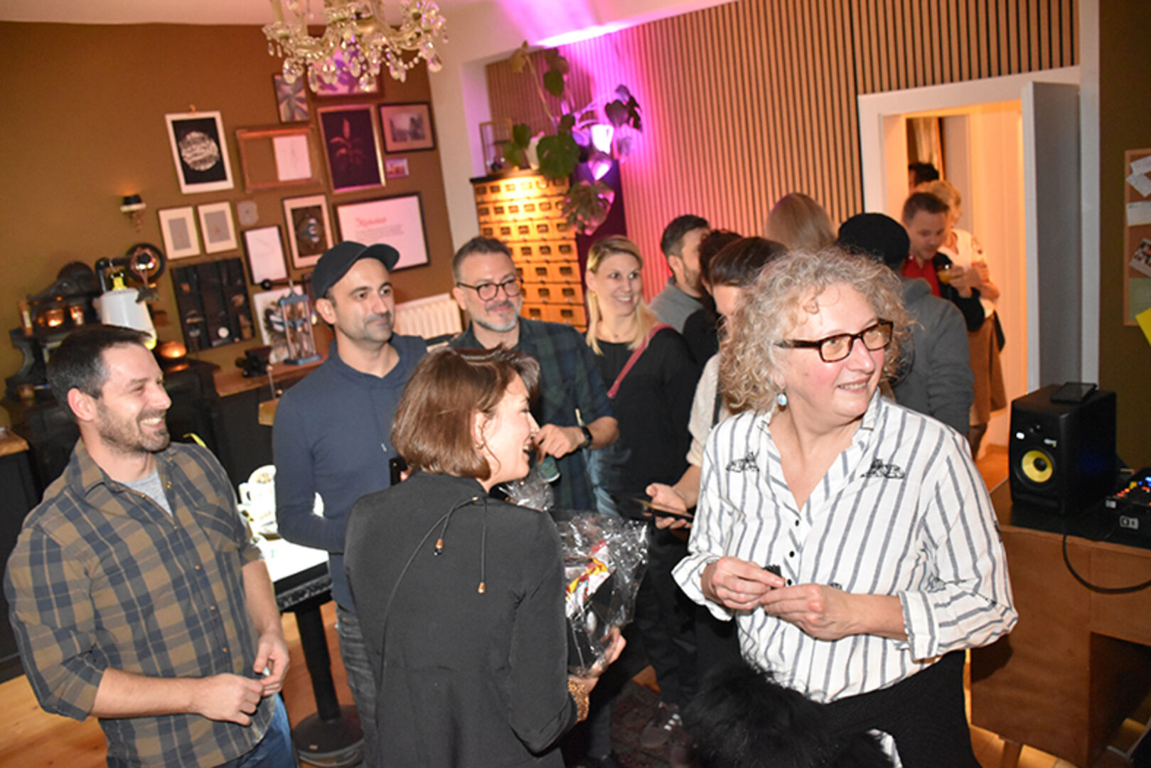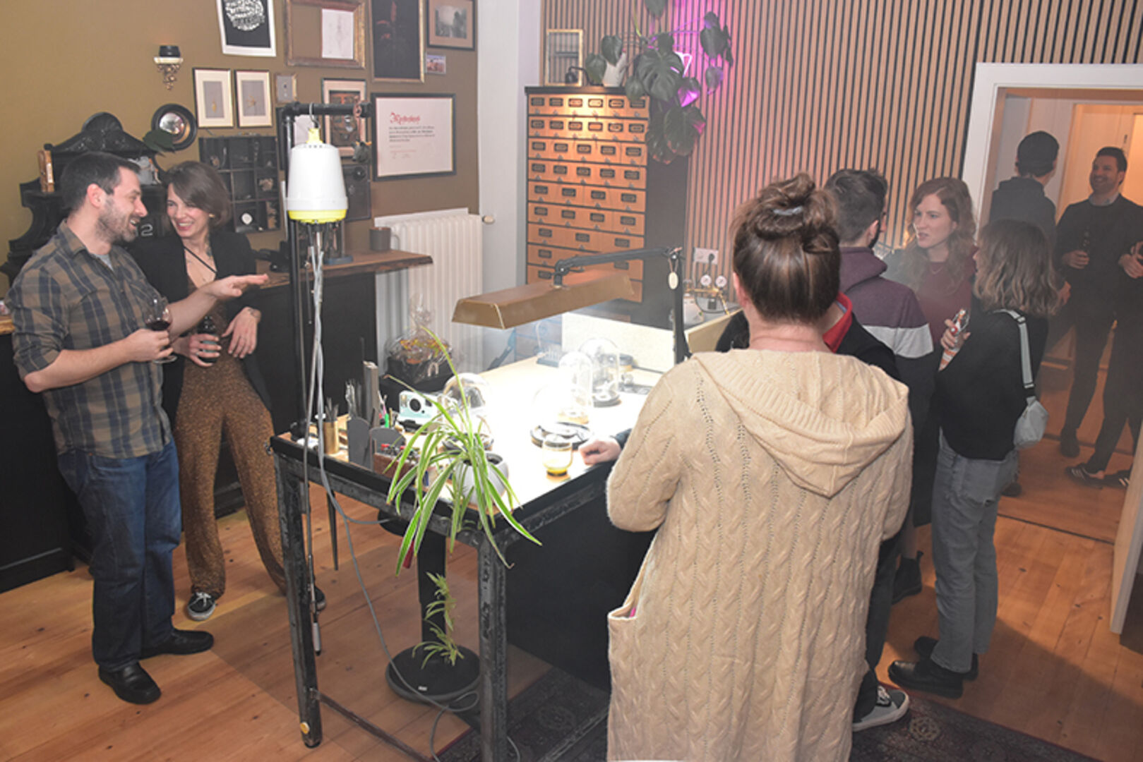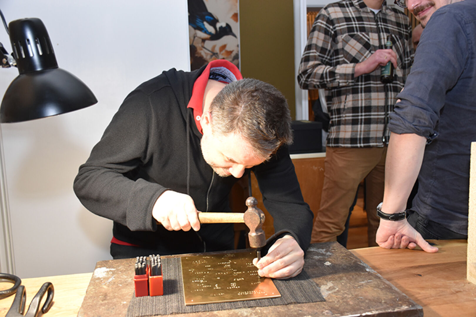 Gastgeberin und Goldschmiedemeisterin Katrin Eberhard mit Markus Andres (mi.), mit Bruder Simon Eberhard (li.) und Mama Ute Eberhard (re.)