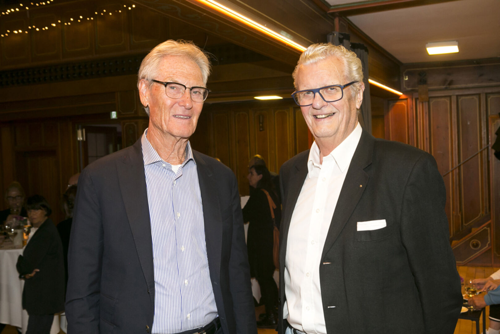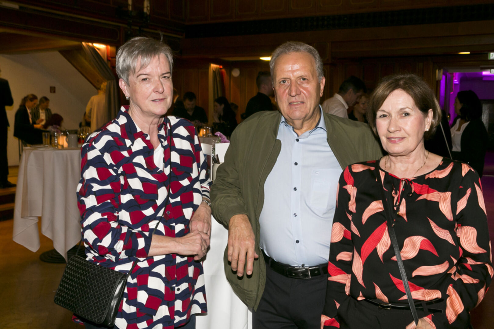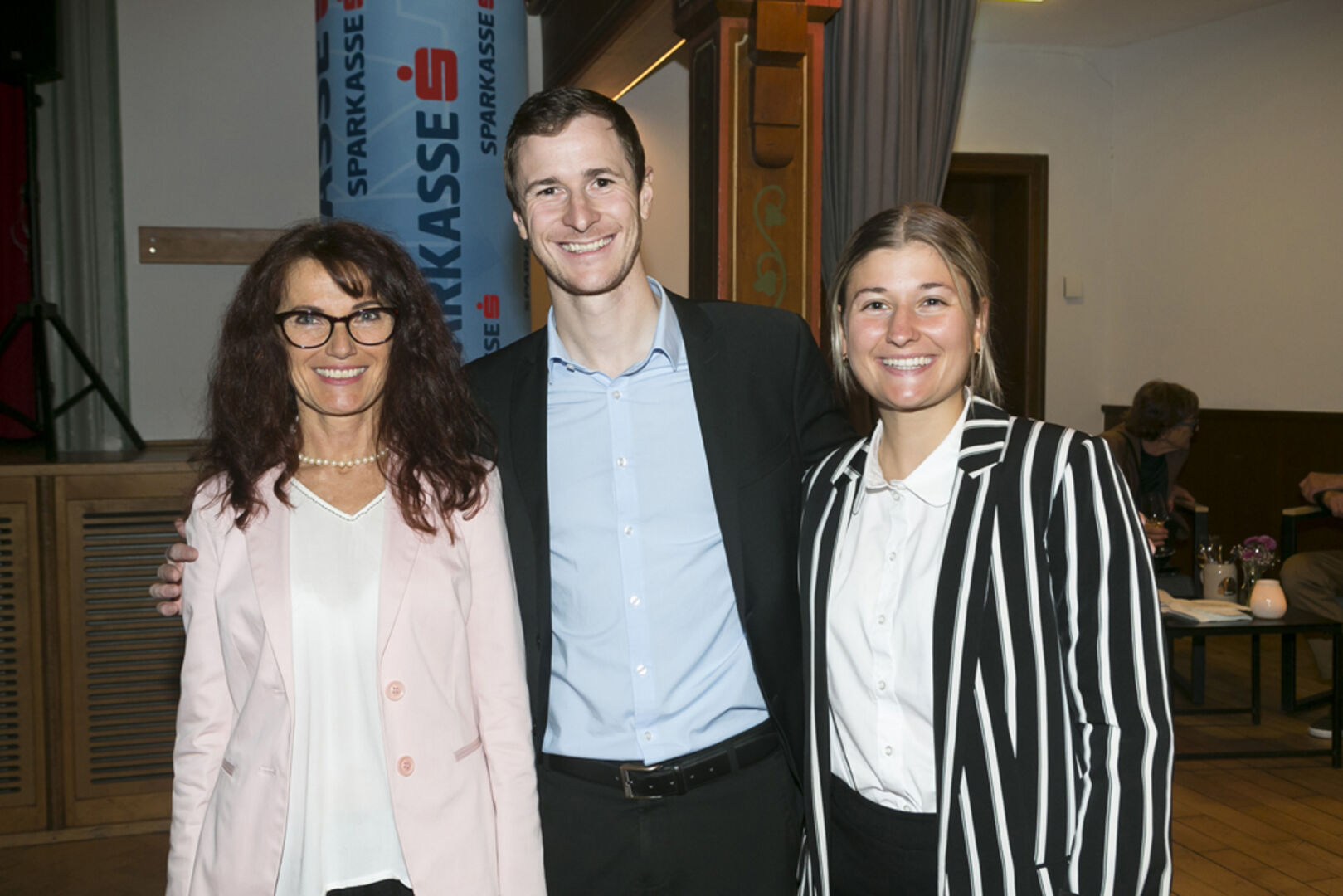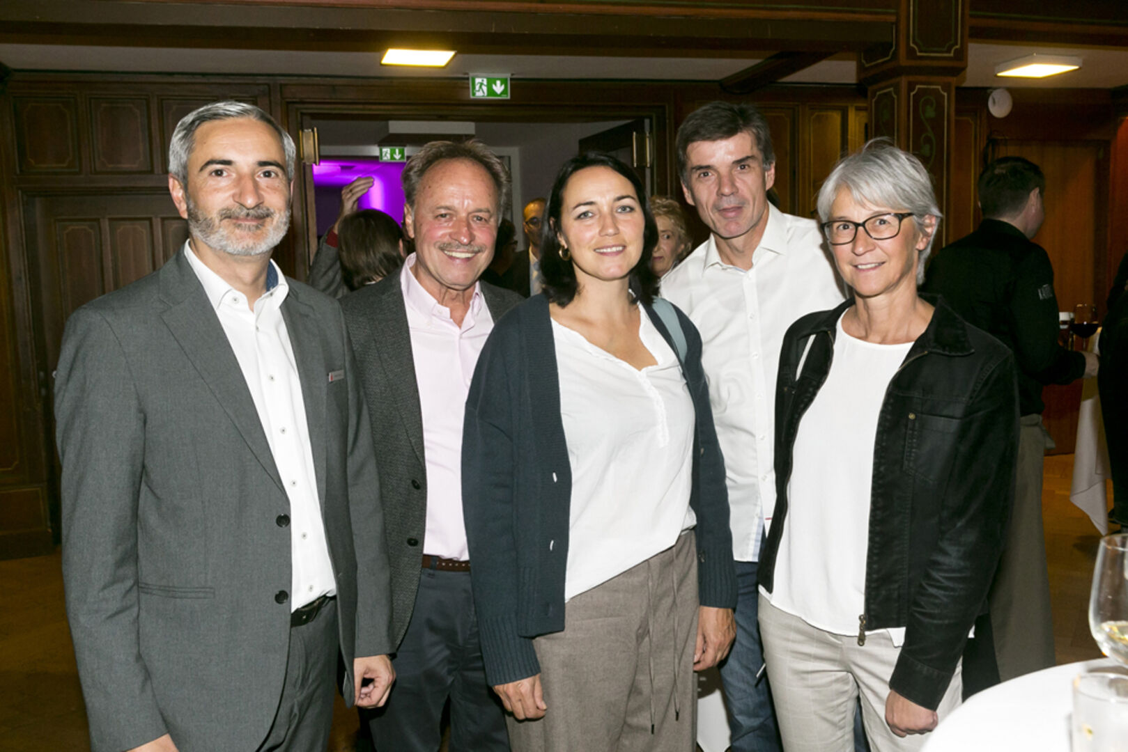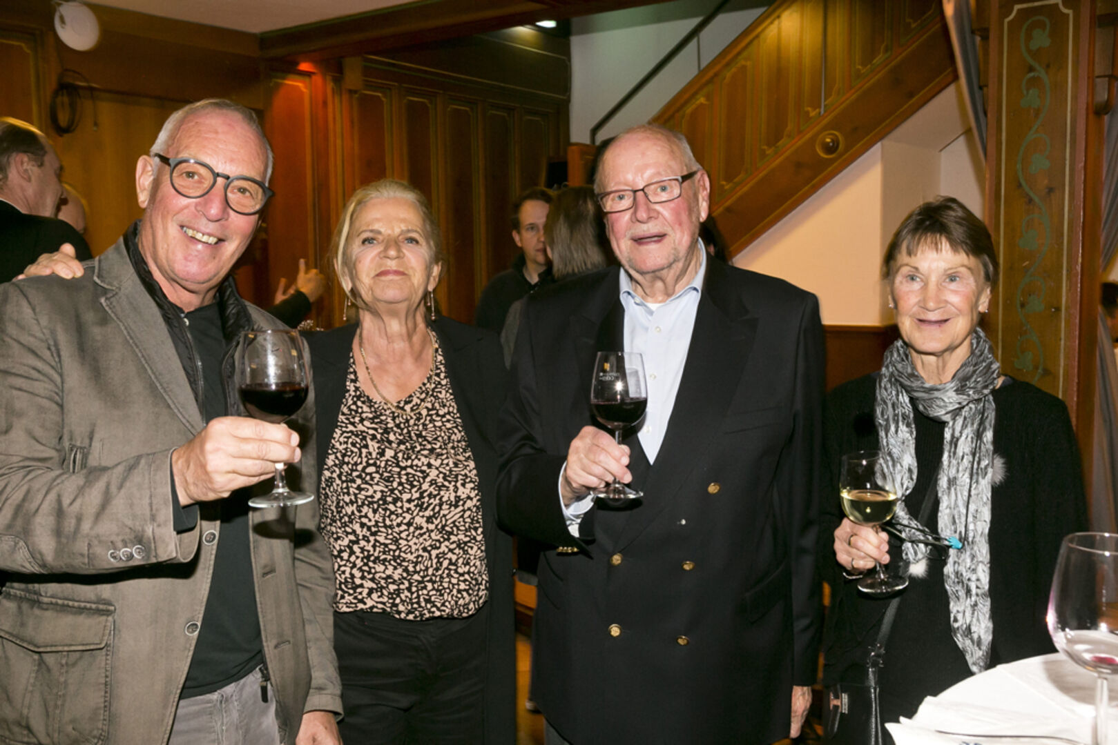 Die Vorstandsdirektoren der Sparkasse Bregenz Gerhard Lutz (li.) und Johannes Hämmerle (re.) mit Künstler und Gestalter des Kunstsparbuchs 2022 Gottfried Bechtold.