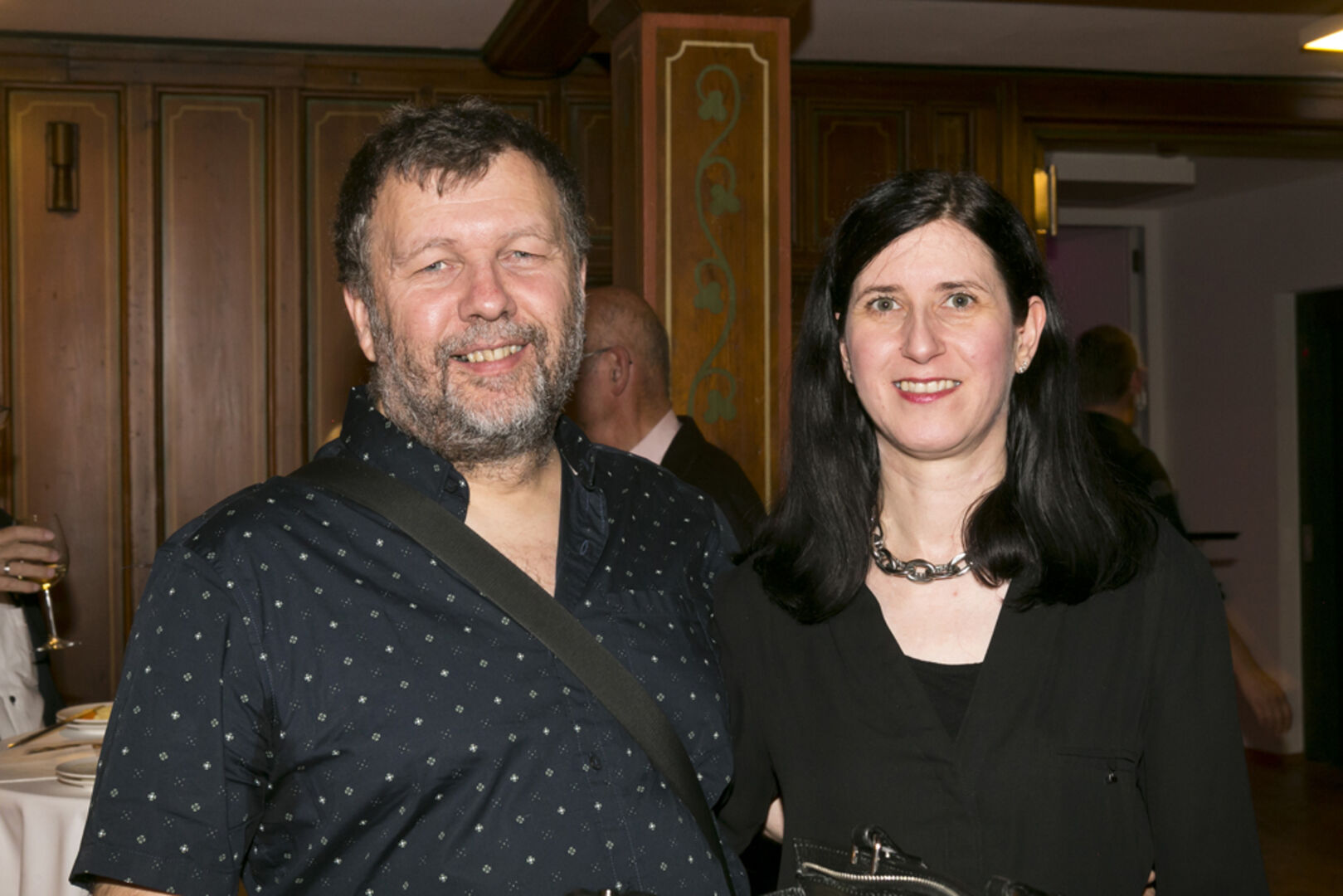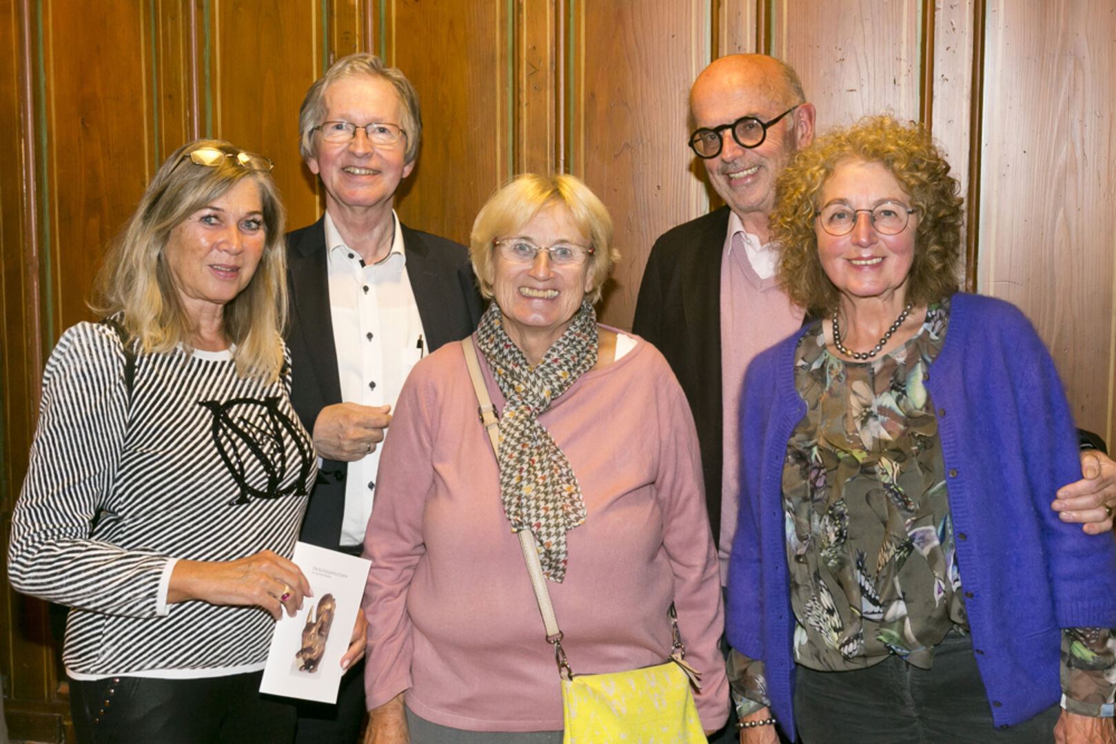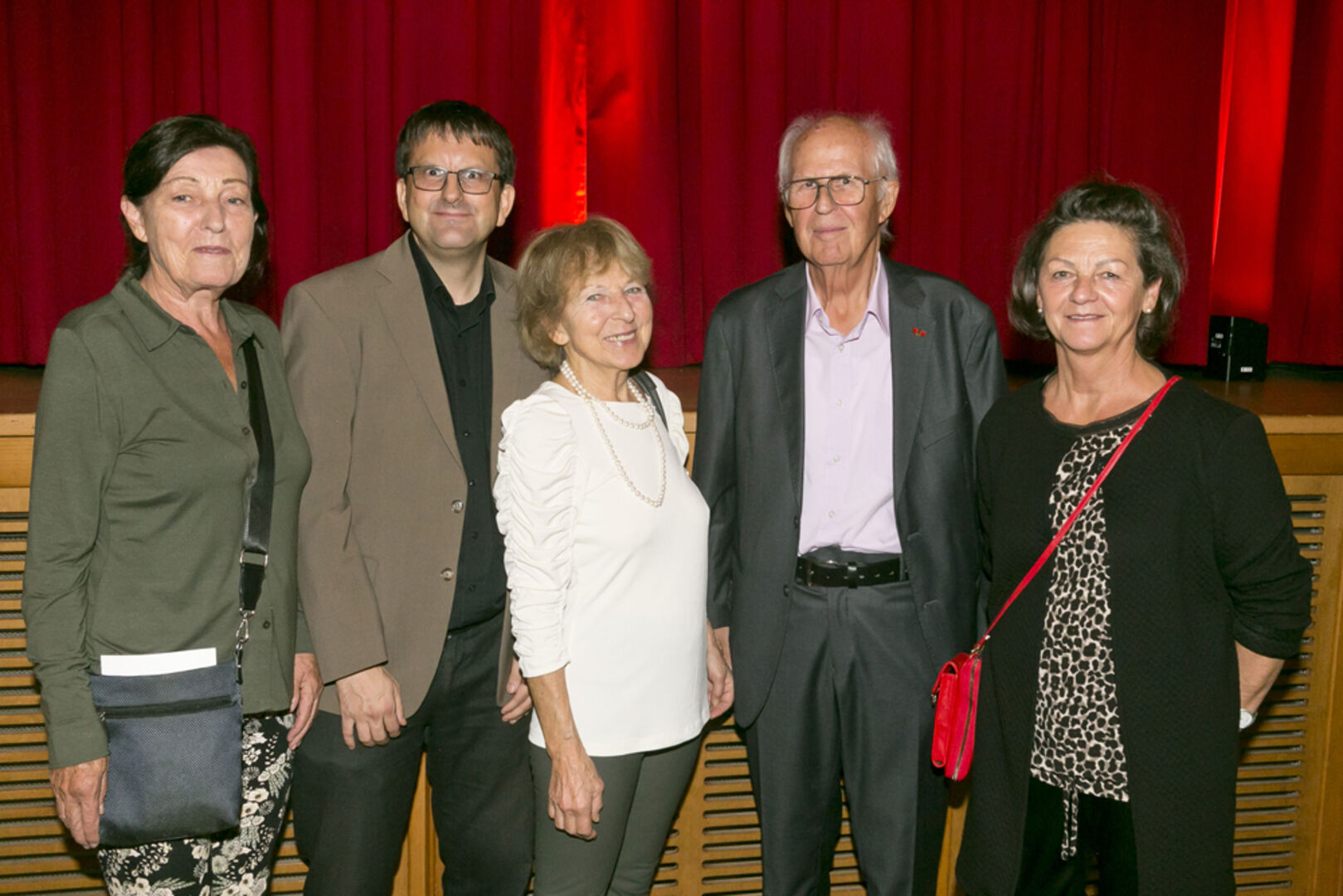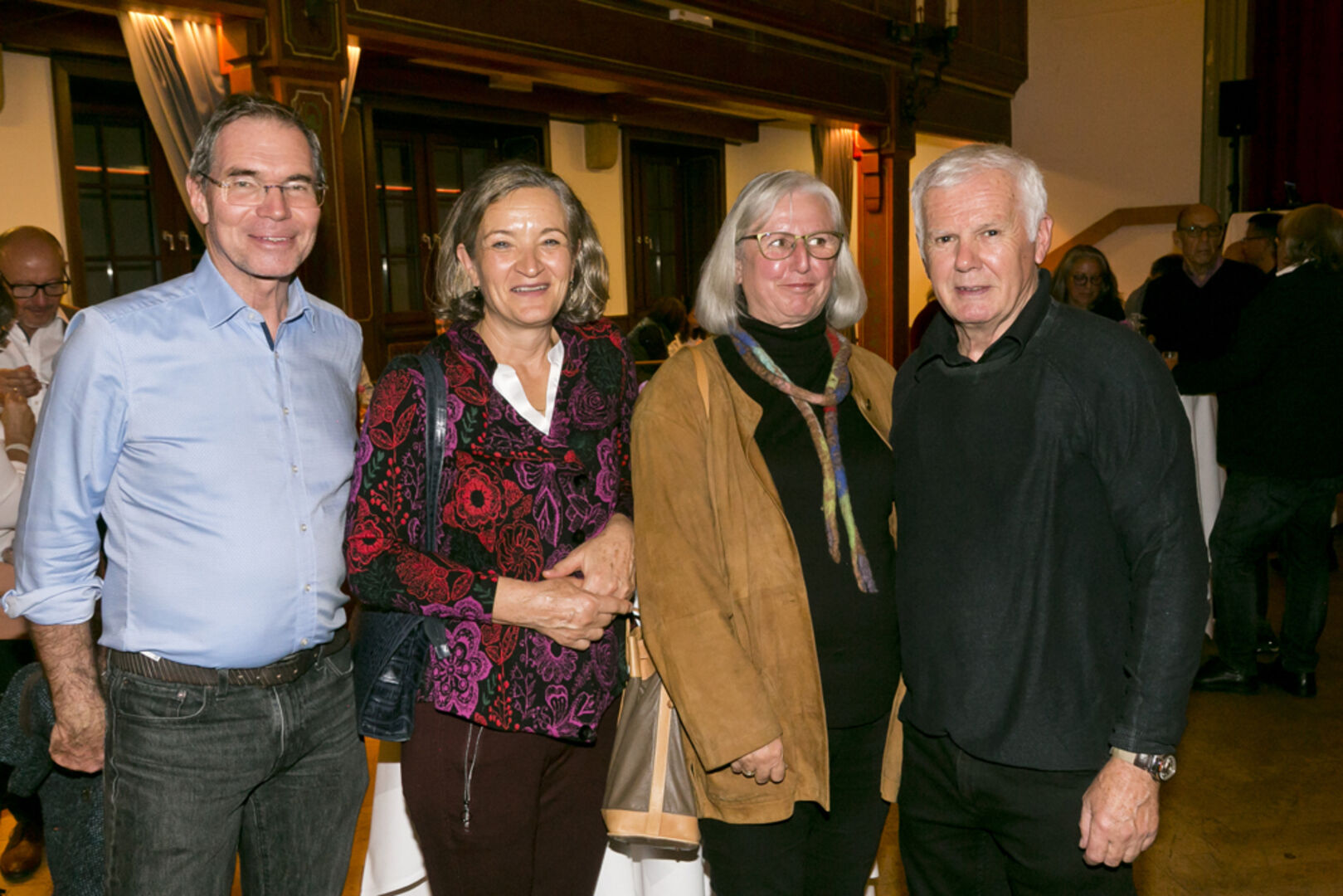 Die Vorstandsdirektoren der Sparkasse Bregenz Gerhard Lutz (li.) und Johannes Hämmerle (re.) mit Künstler und Gestalter des Kunstsparbuchs 2022 Gottfried Bechtold.