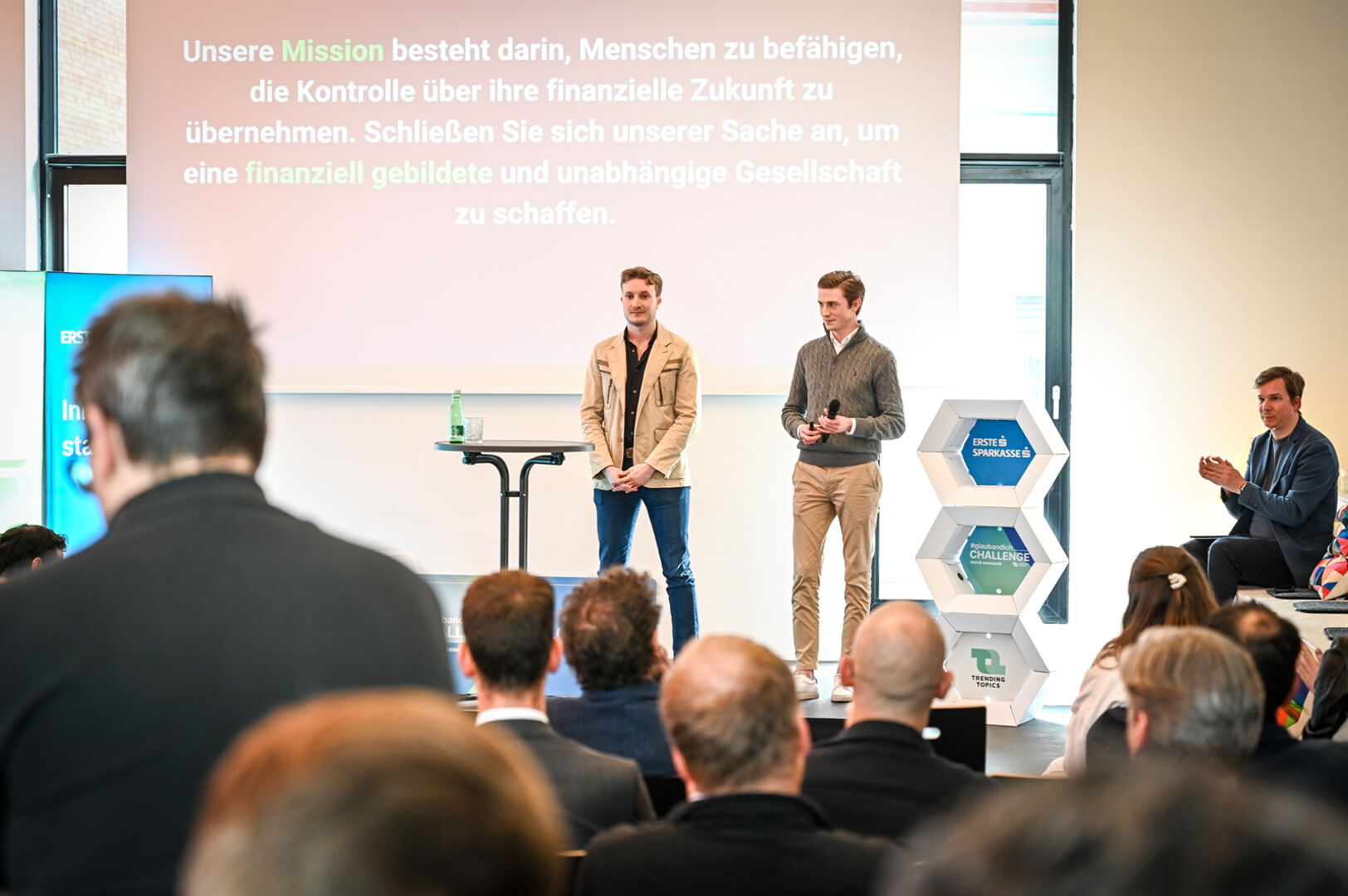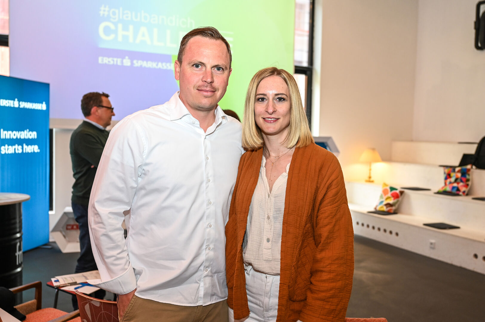 Arne Nostitz (Startup „SocialCard“), Julia Leitner (Erste Bank Oesterreich)
