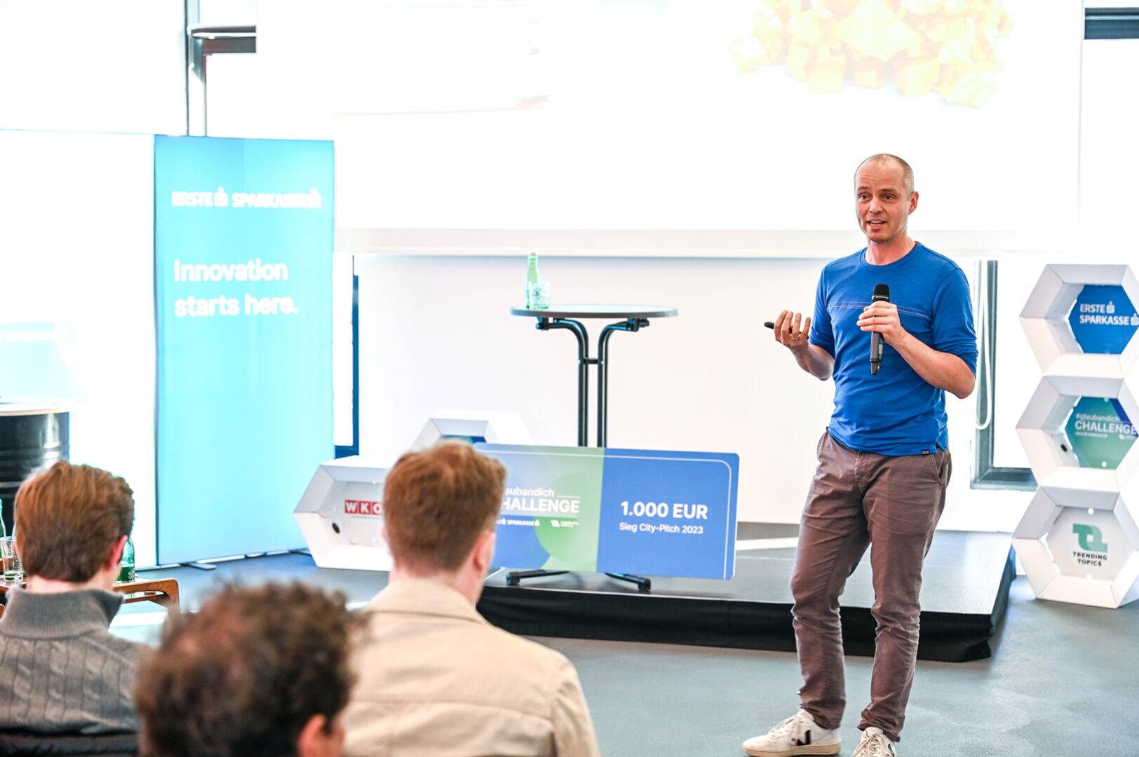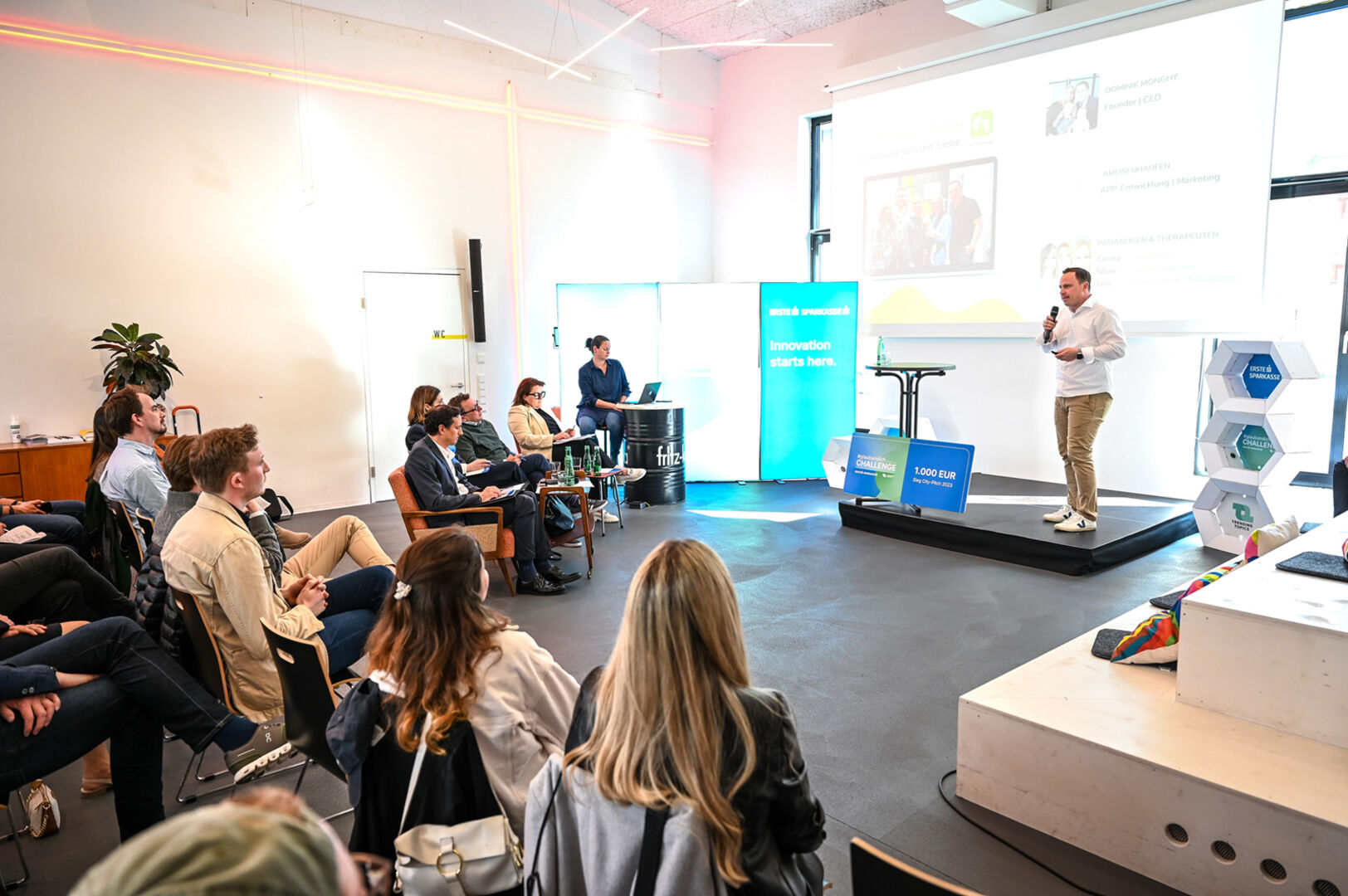 Fünf Jungfirmen präsentierten sich beim größten Startup-Wettbewerb Österreichs, der #glaubandich Challenge, in der Dornbirner Postgarage.