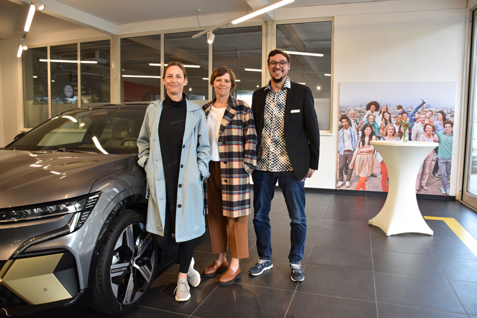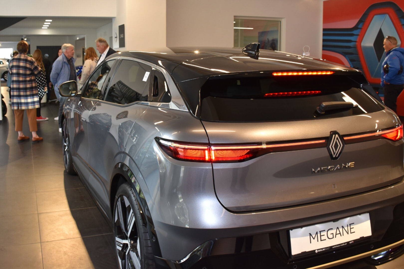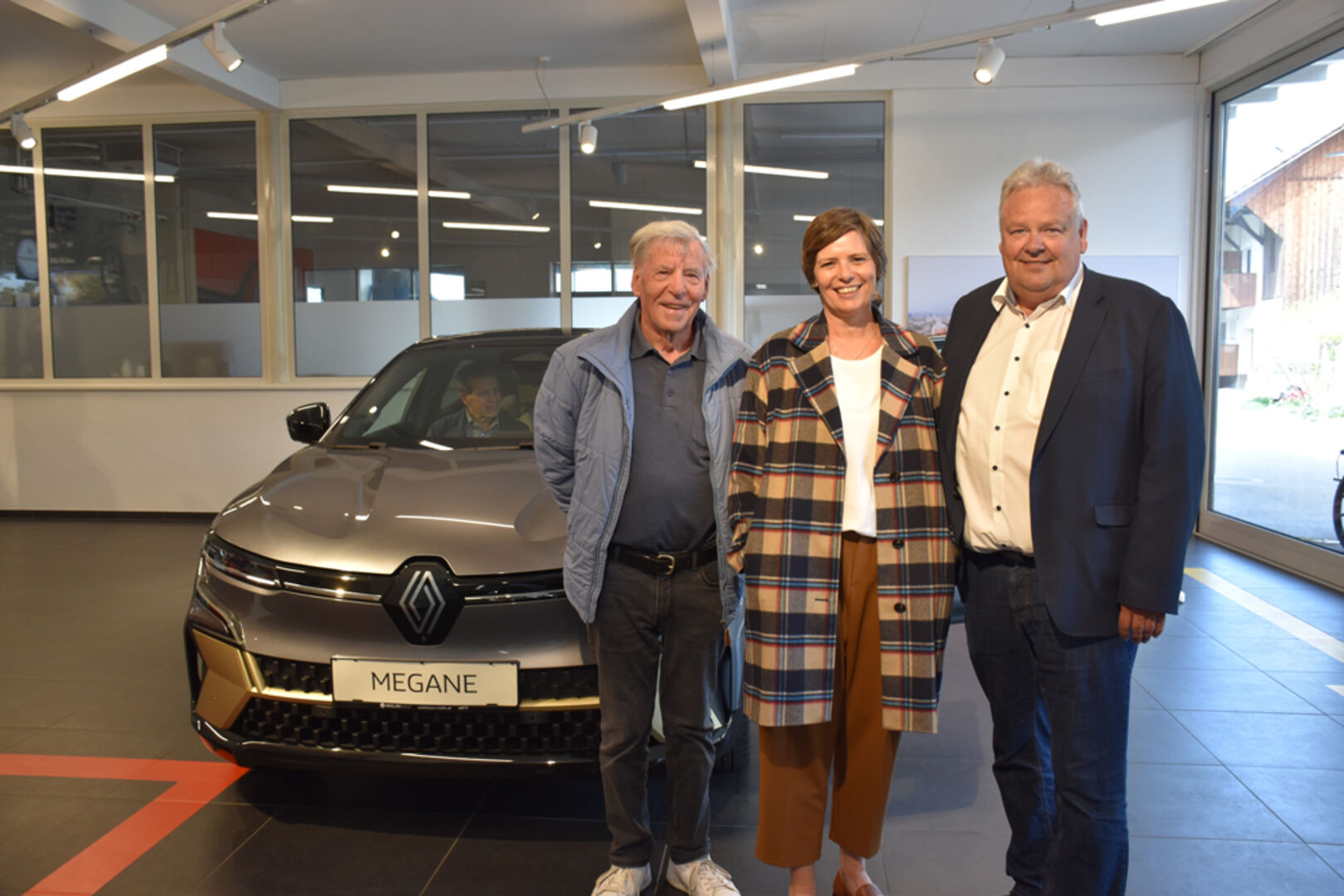 Bis 470 km Reichweite, in 30 Minunten bis zu 300 km geladen, der neue Renault MEGANE E-TECH war der Star der Präsentation: Autohaus Malin Geschäftsleitung Linda Wallenta-Malin (li.), Nadja Malin-Potzinger und Verkaufsberater Thomas Breuss.