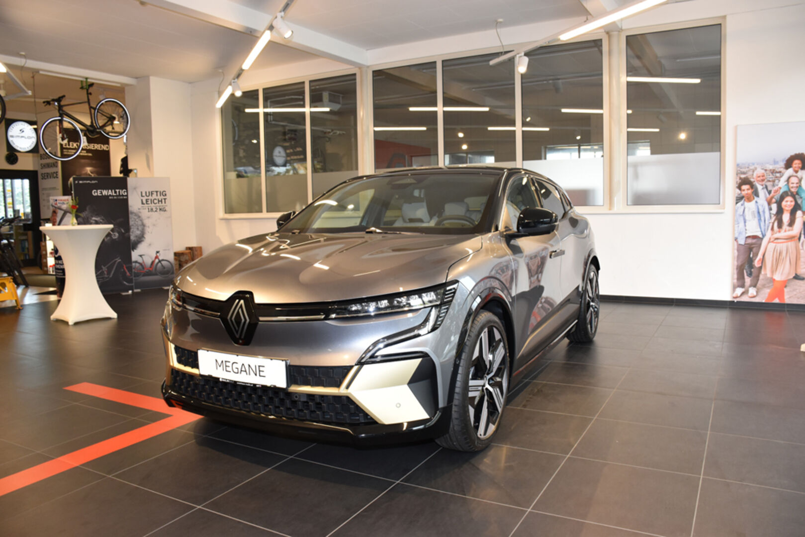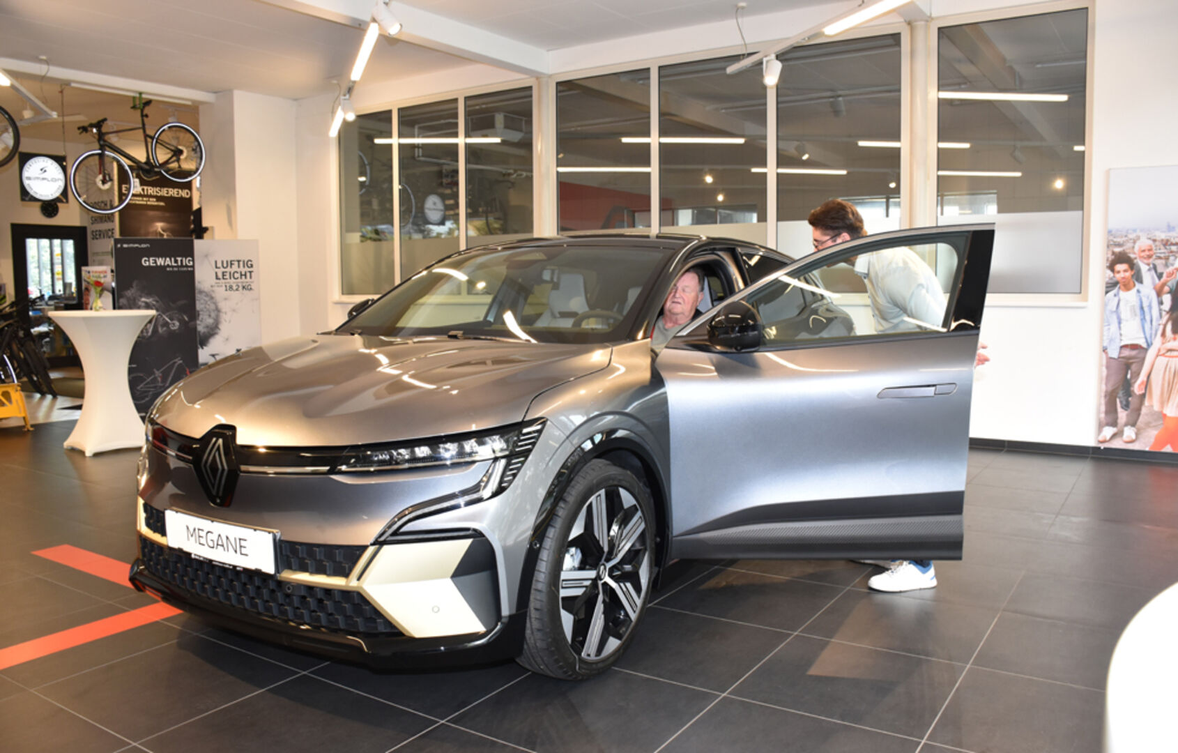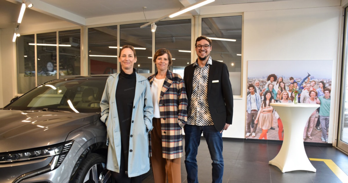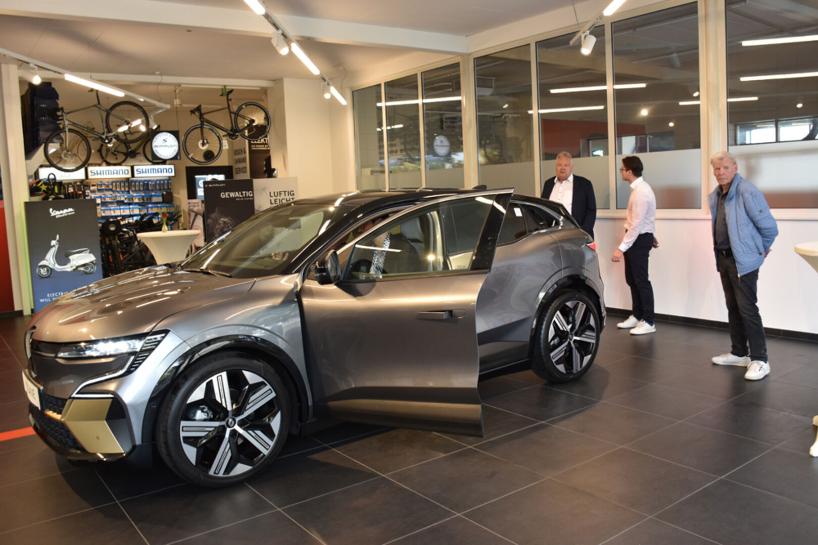 Bis 470 km Reichweite, in 30 Minunten bis zu 300 km geladen, der neue Renault MEGANE E-TECH war der Star der Präsentation: Autohaus Malin Geschäftsleitung Linda Wallenta-Malin (li.), Nadja Malin-Potzinger und Verkaufsberater Thomas Breuss.
