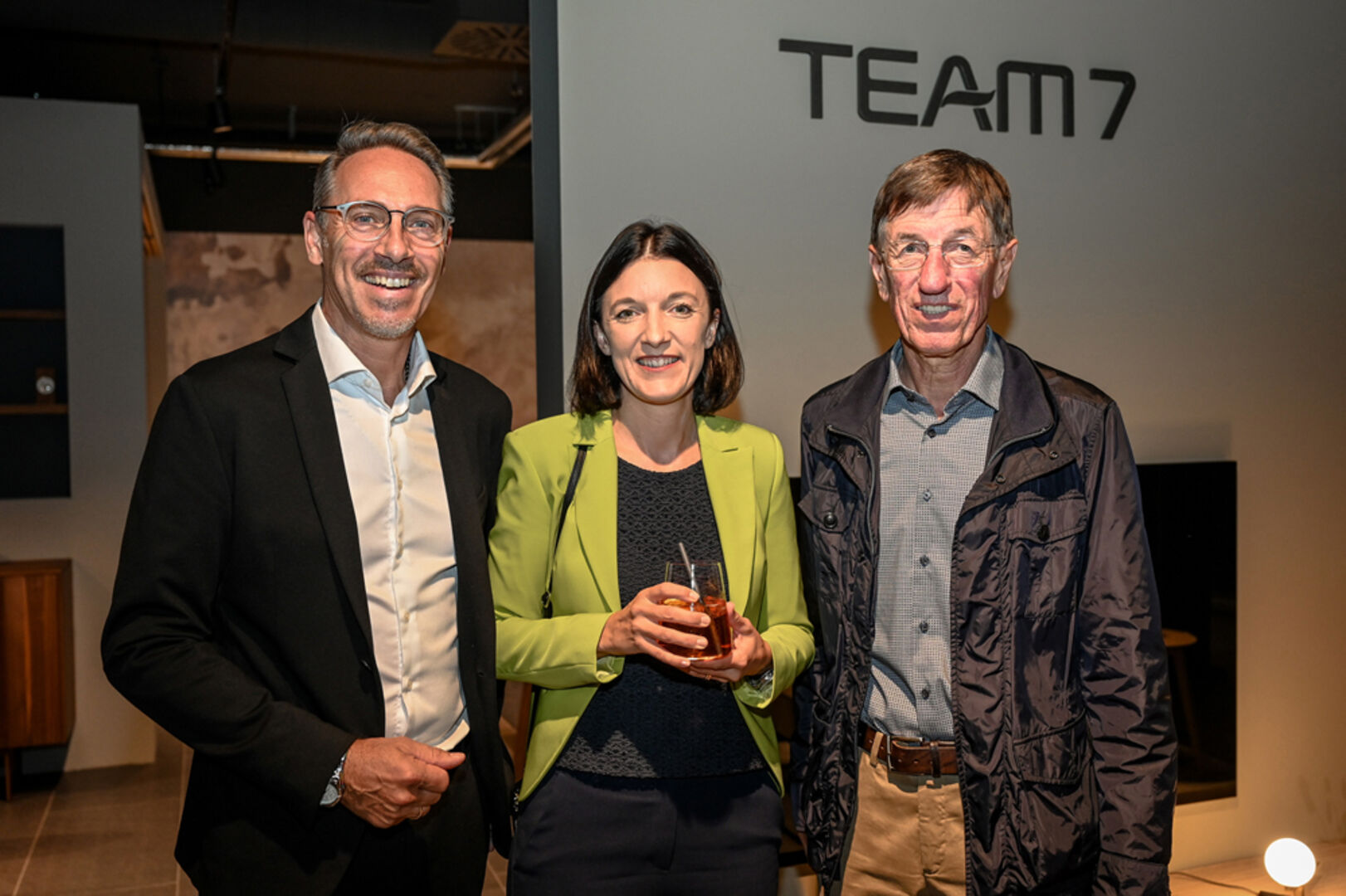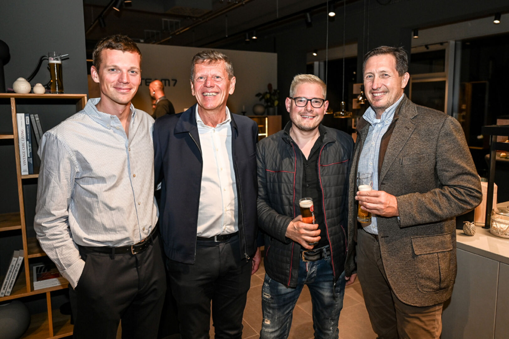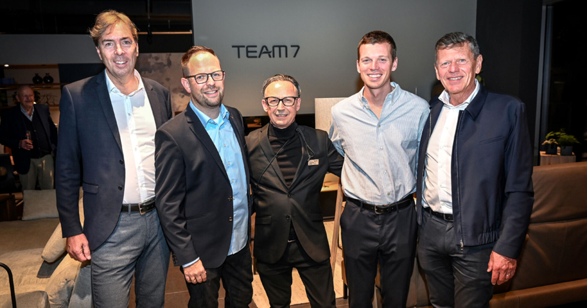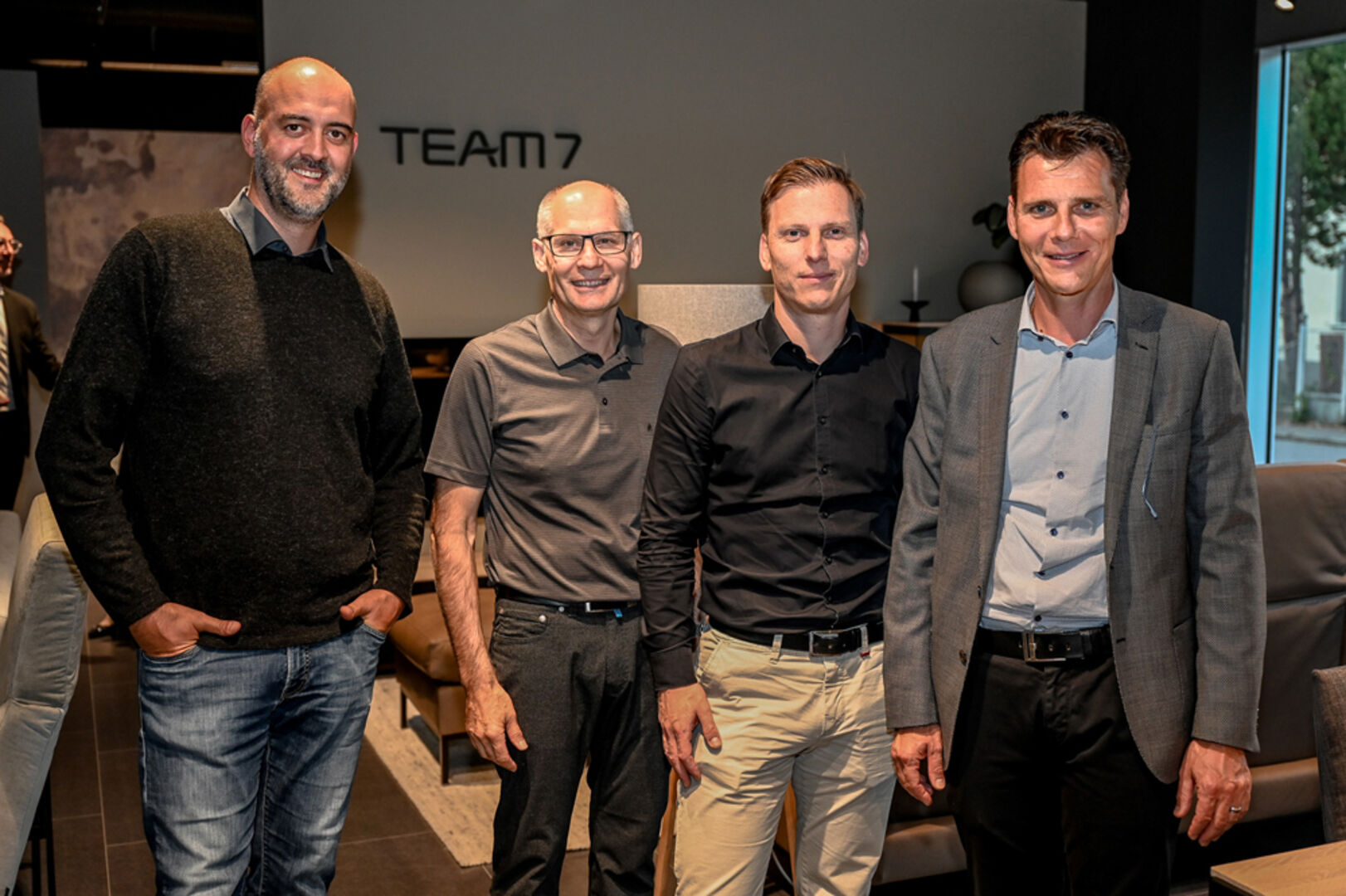 Olaf Brennecke (Vertriebschef Ö, D + Benelux), Andreas Wilhelm (Storeleiter Ö+D), Udo Nicolussi (Leiter Flagshipstore Bregenz), Stefan Emprechtinger mit Vater Georg Emprechtinger (TEAM 7 CEO, Eigentümer)