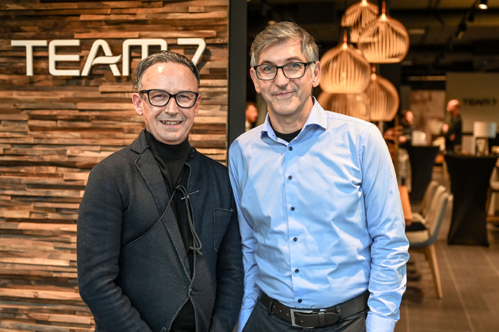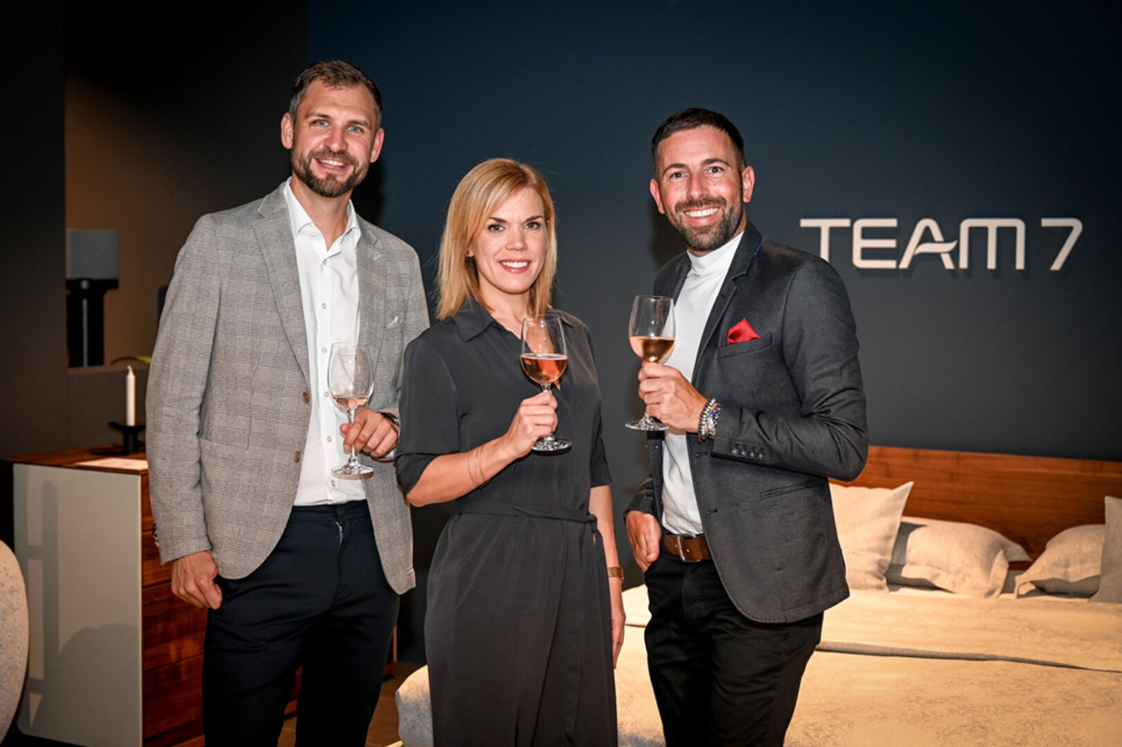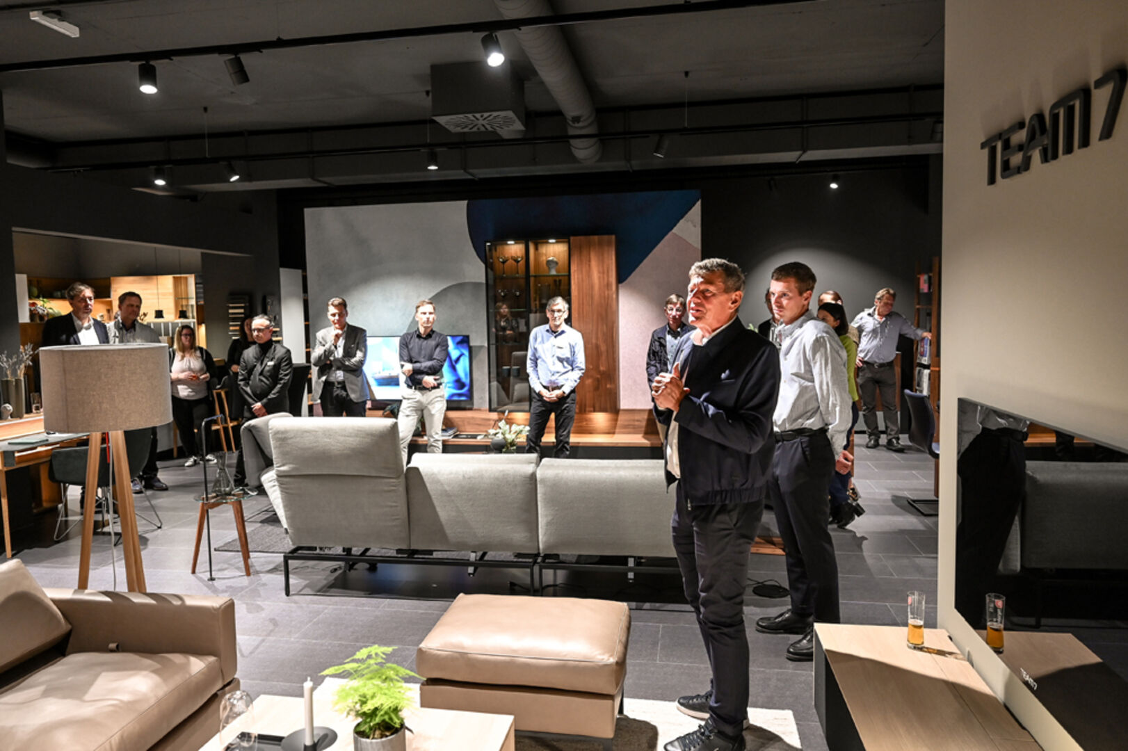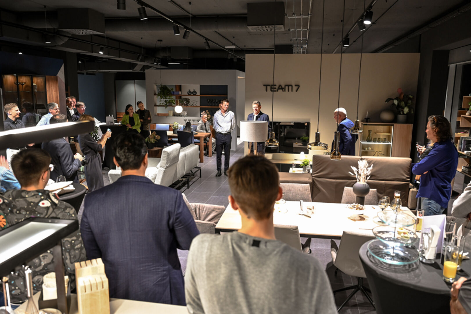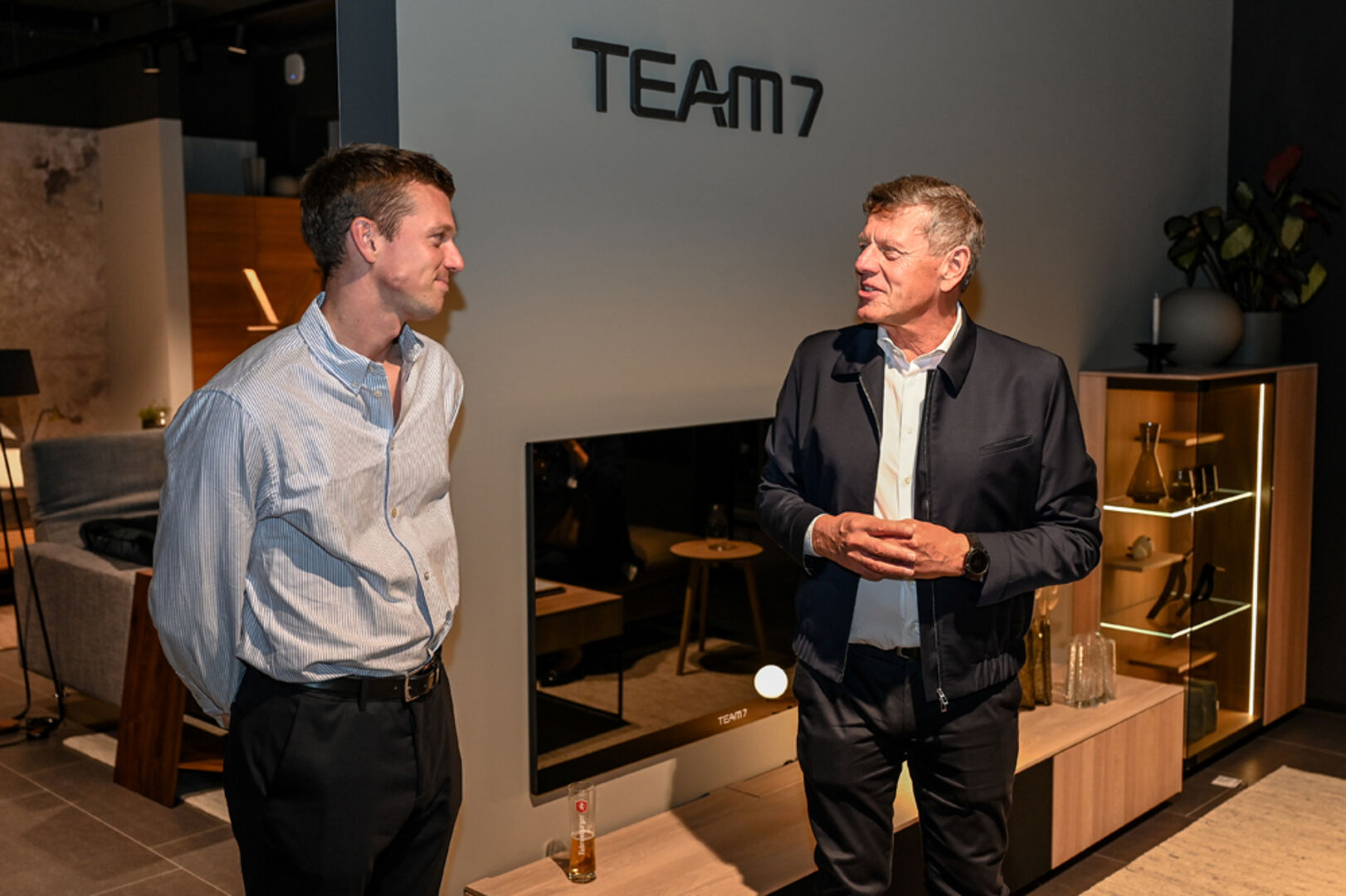 Olaf Brennecke (Vertriebschef Ö, D + Benelux), Andreas Wilhelm (Storeleiter Ö+D), Udo Nicolussi (Leiter Flagshipstore Bregenz), Stefan Emprechtinger mit Vater Georg Emprechtinger (TEAM 7 CEO, Eigentümer)