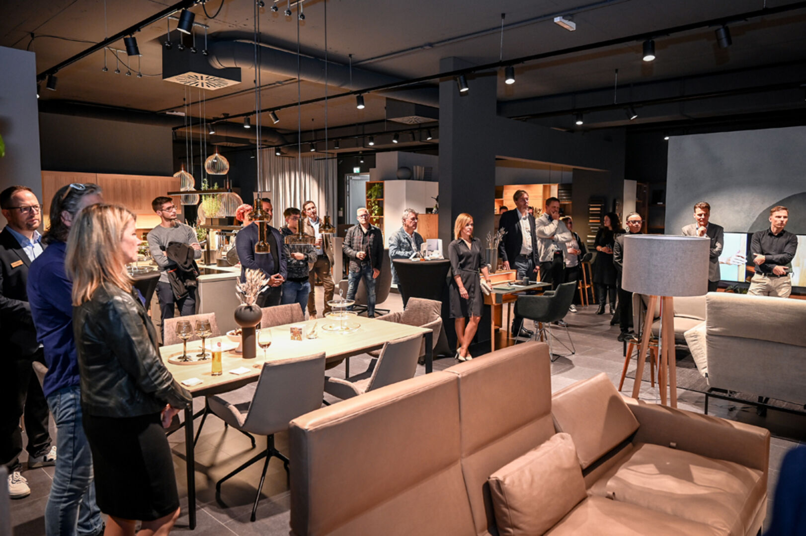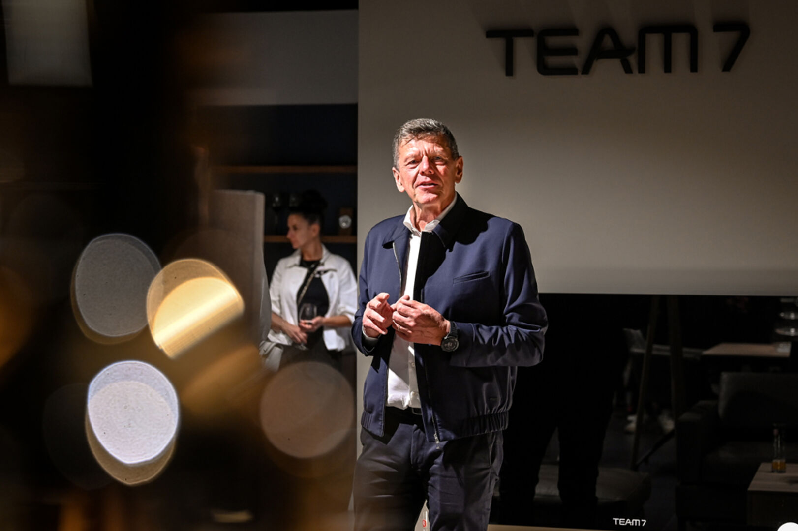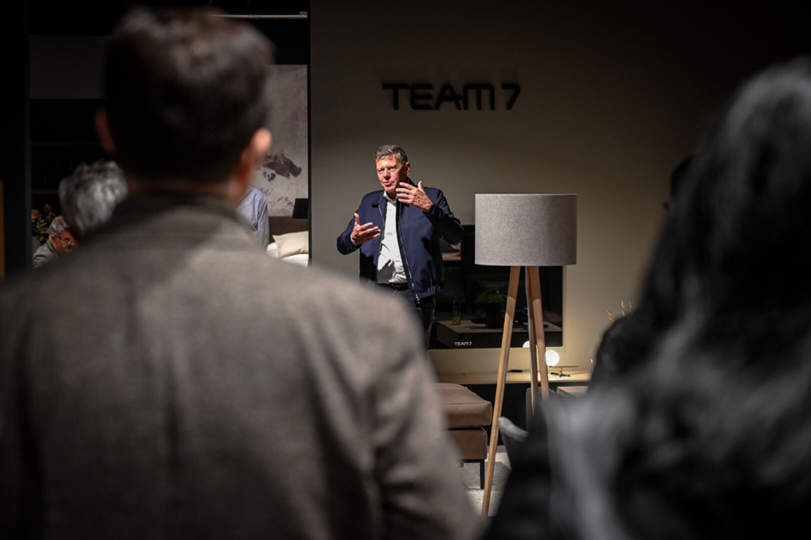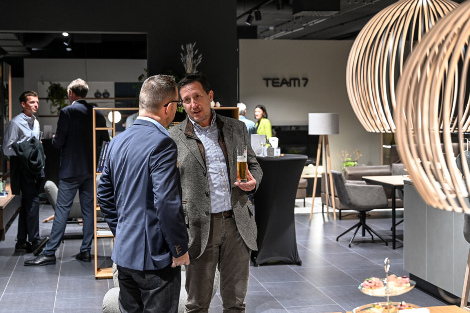 Olaf Brennecke (Vertriebschef Ö, D + Benelux), Andreas Wilhelm (Storeleiter Ö+D), Udo Nicolussi (Leiter Flagshipstore Bregenz), Stefan Emprechtinger mit Vater Georg Emprechtinger (TEAM 7 CEO, Eigentümer)