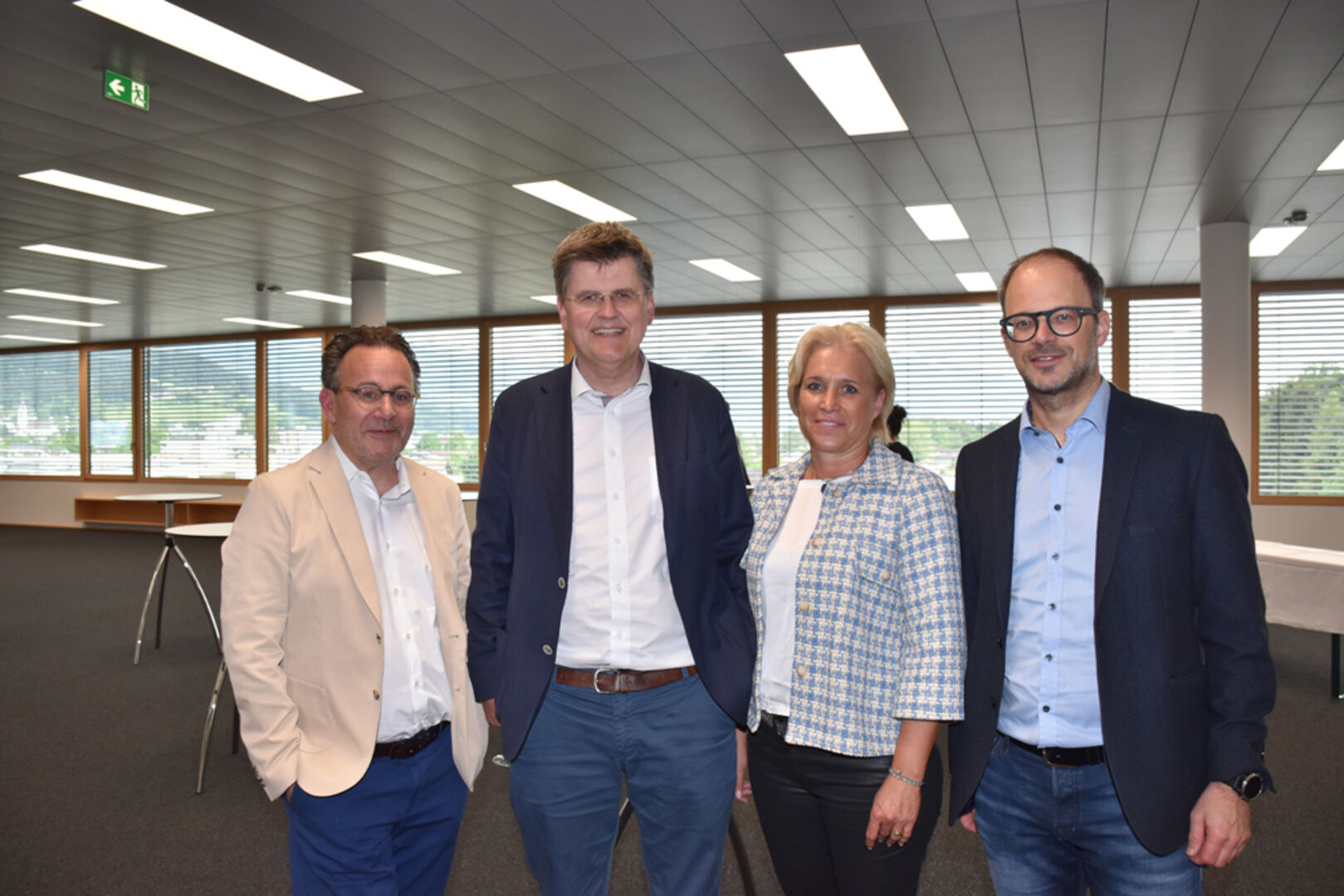 Wolfurt BM Christian Natter, Simone Kitzmüller (GF Hofsteig Card), Nicole Speckle (Veranstaltungsmanagement Wolfurt), Walter Eberle (Obmann Wirtschaft Wolfurt) und LTW Intralogistics GmbH Hausherr und CEO Konrad Eberle (v. li.)