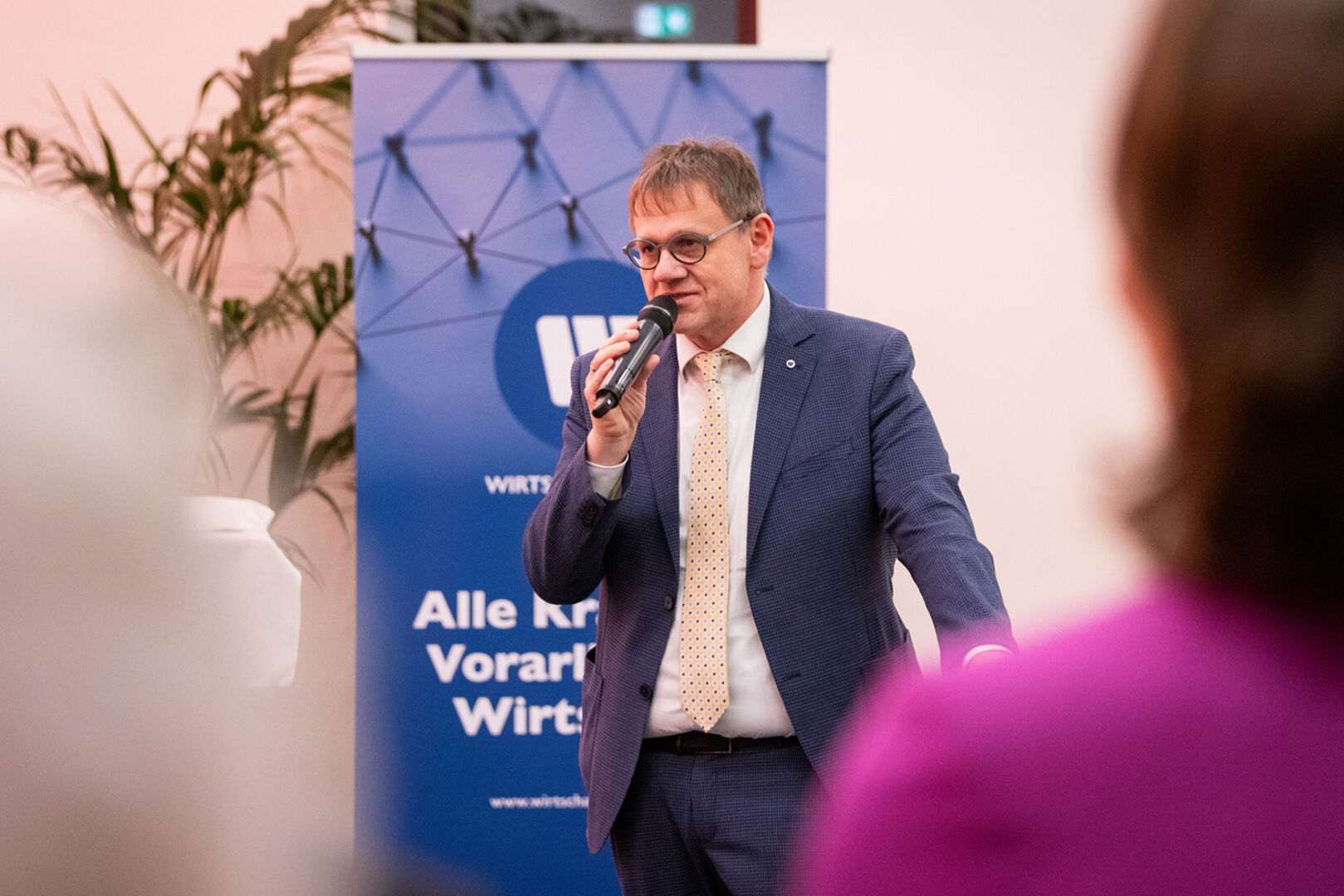 In Rahmen des Unternehmertreffs skizzierte Nationalrat Kurt Egger, Generalsekretär des Wirtschaftsbundes, die Schlüsselherausforderungen, denen sich Österreich in den kommenden Monaten stellen muss. TOP: Die Präsentation des neuen Magazins des Wirtschafsbund Vorarlberg für zeitgemäße politische Kommunikation.