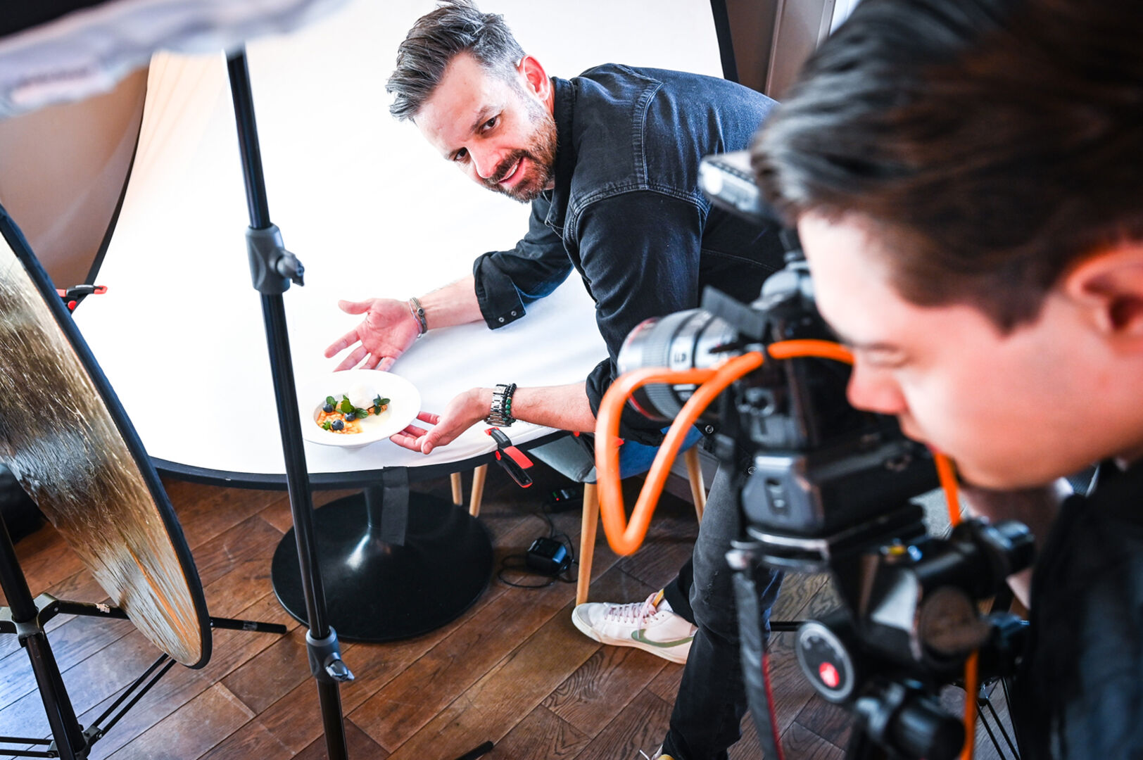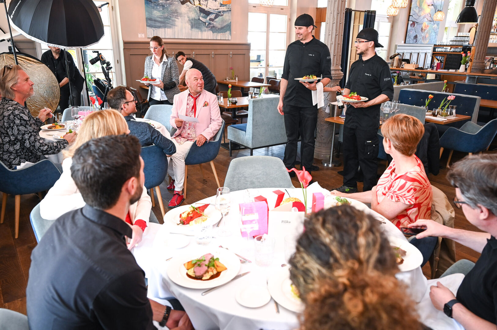 David Friedl (Betriebsleiter Pier69) mit Vorspeise: Veganes Rote Beete Tatar, Süßkartofffel,Skiitake-Pilze ...