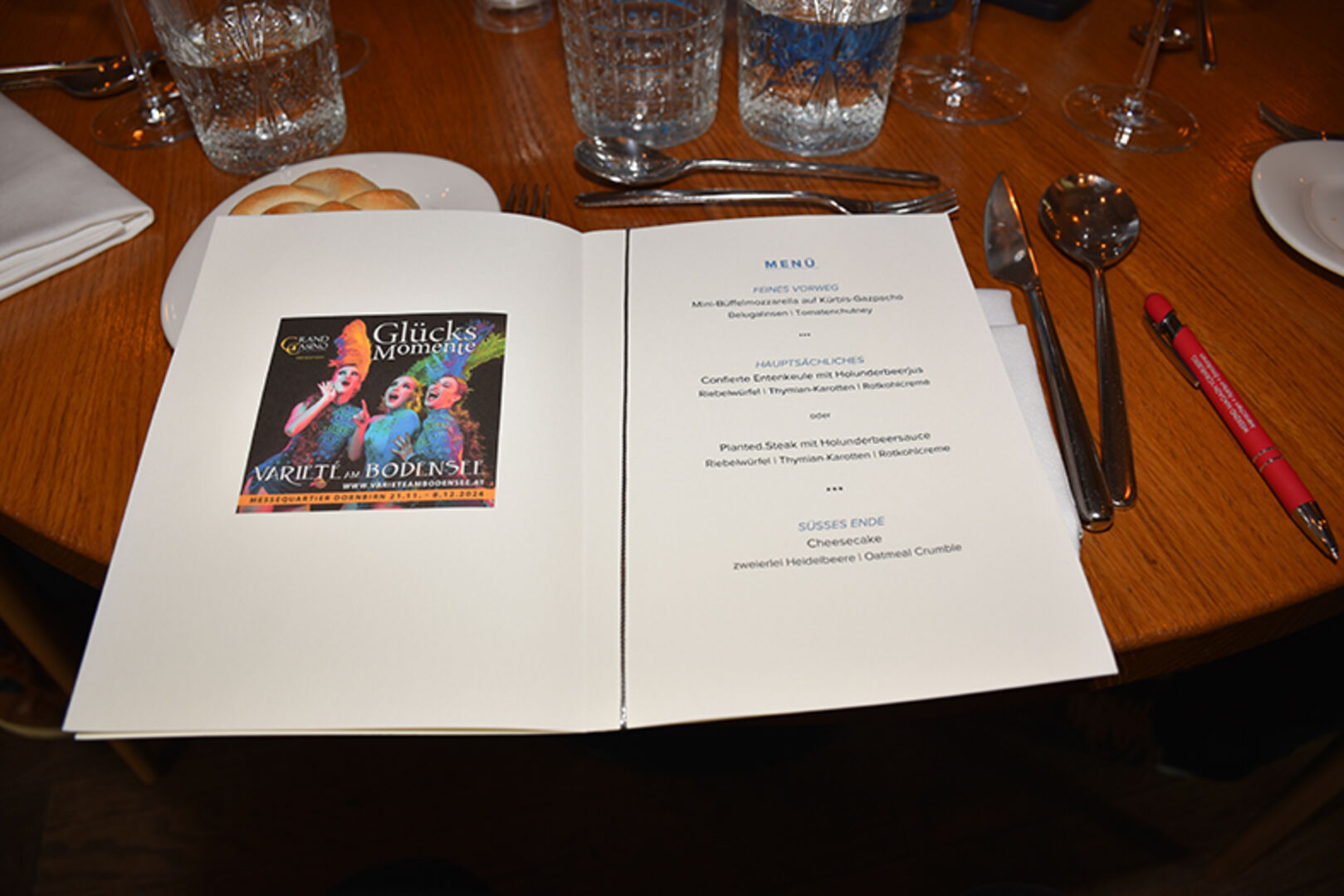 Varieté am Bodensee: Programm- & Menüpräsentation