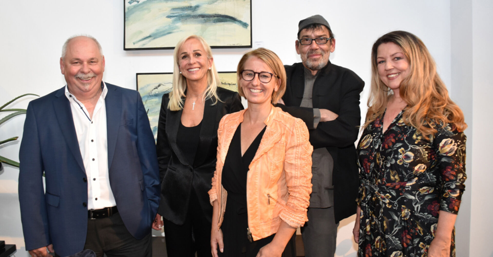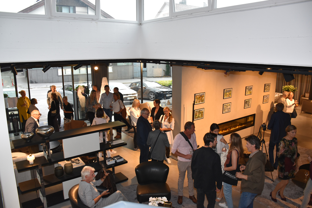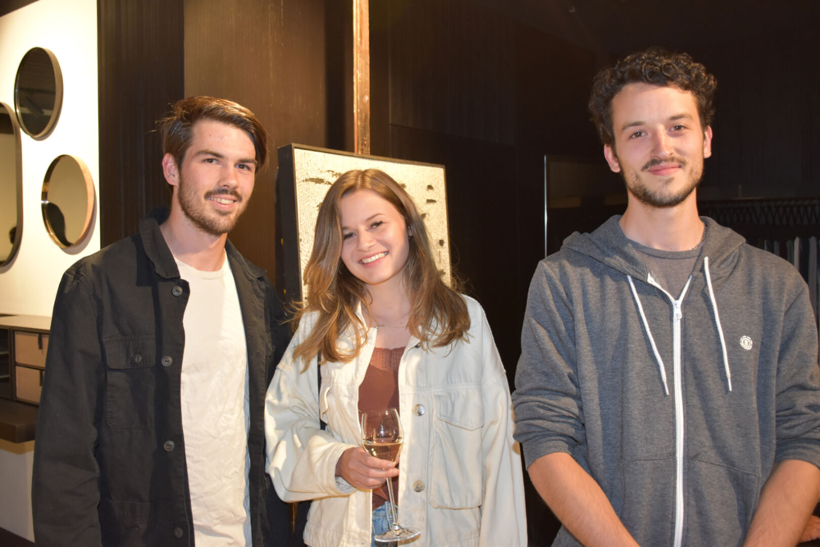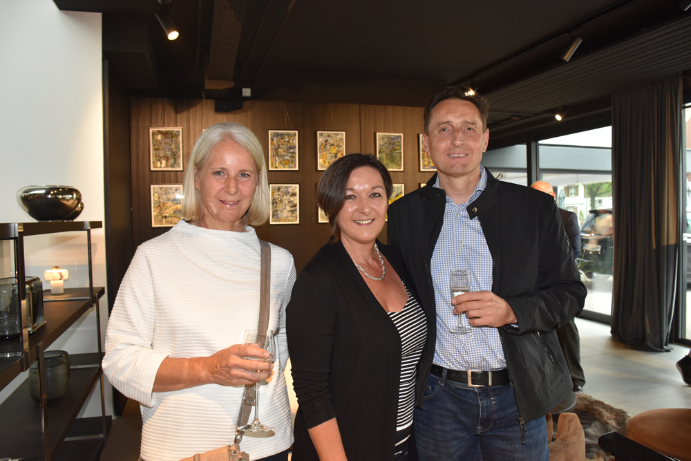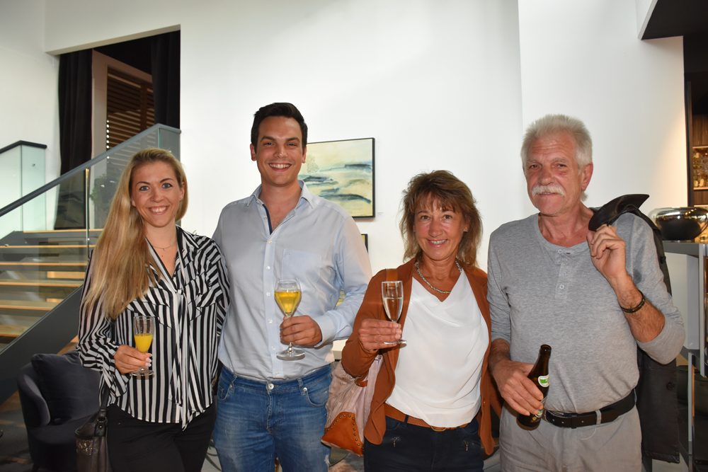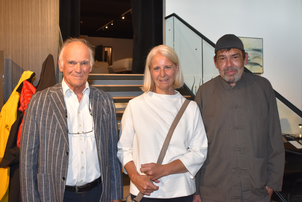 Helmut Schuster (Küchen- und Wohnraumgestaltung), Susanne Messmer (GF), Diana Binder (Kuratorin und Mitarbeiterin), Künstler Maximilian Fohn und Vernissage…