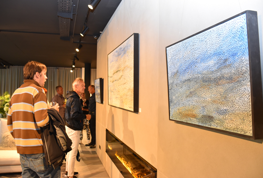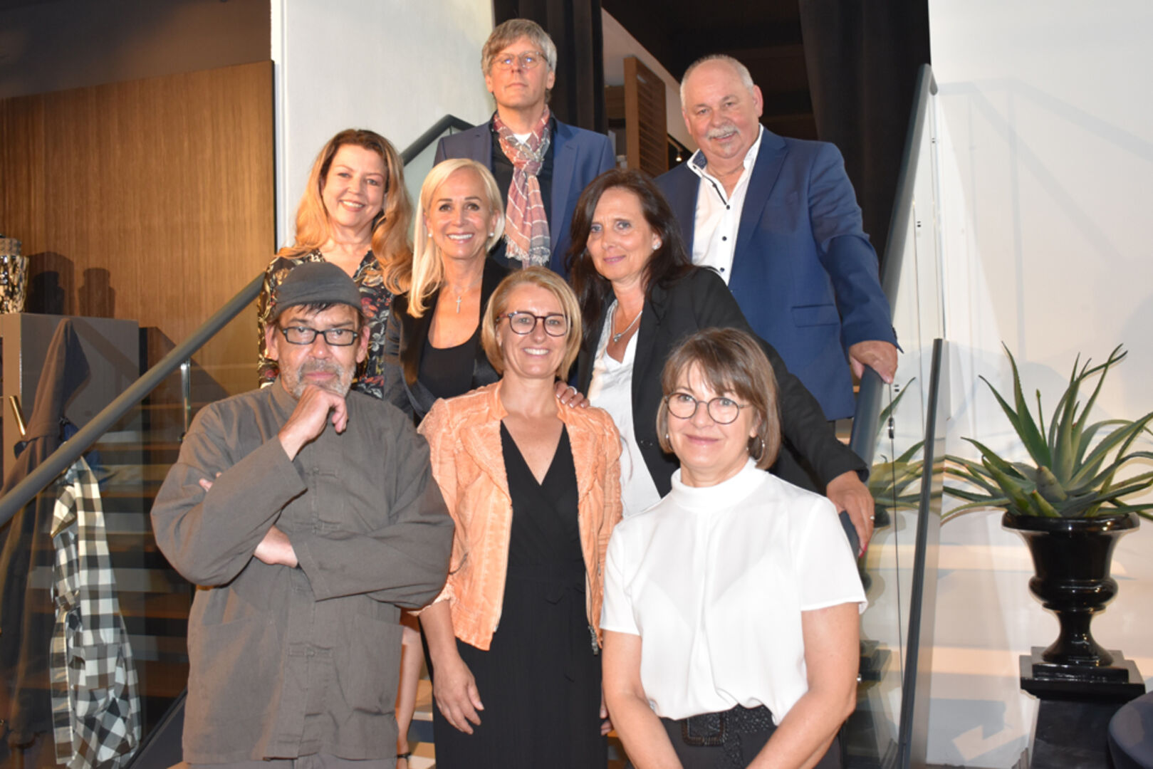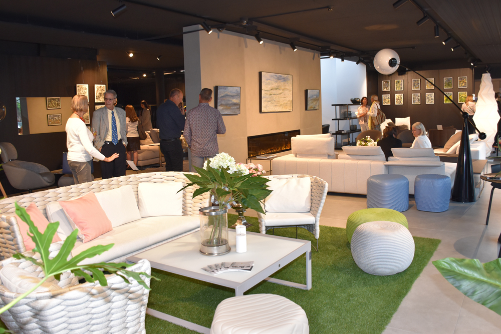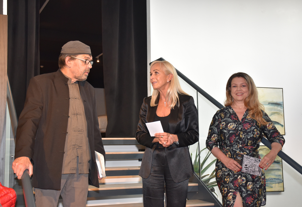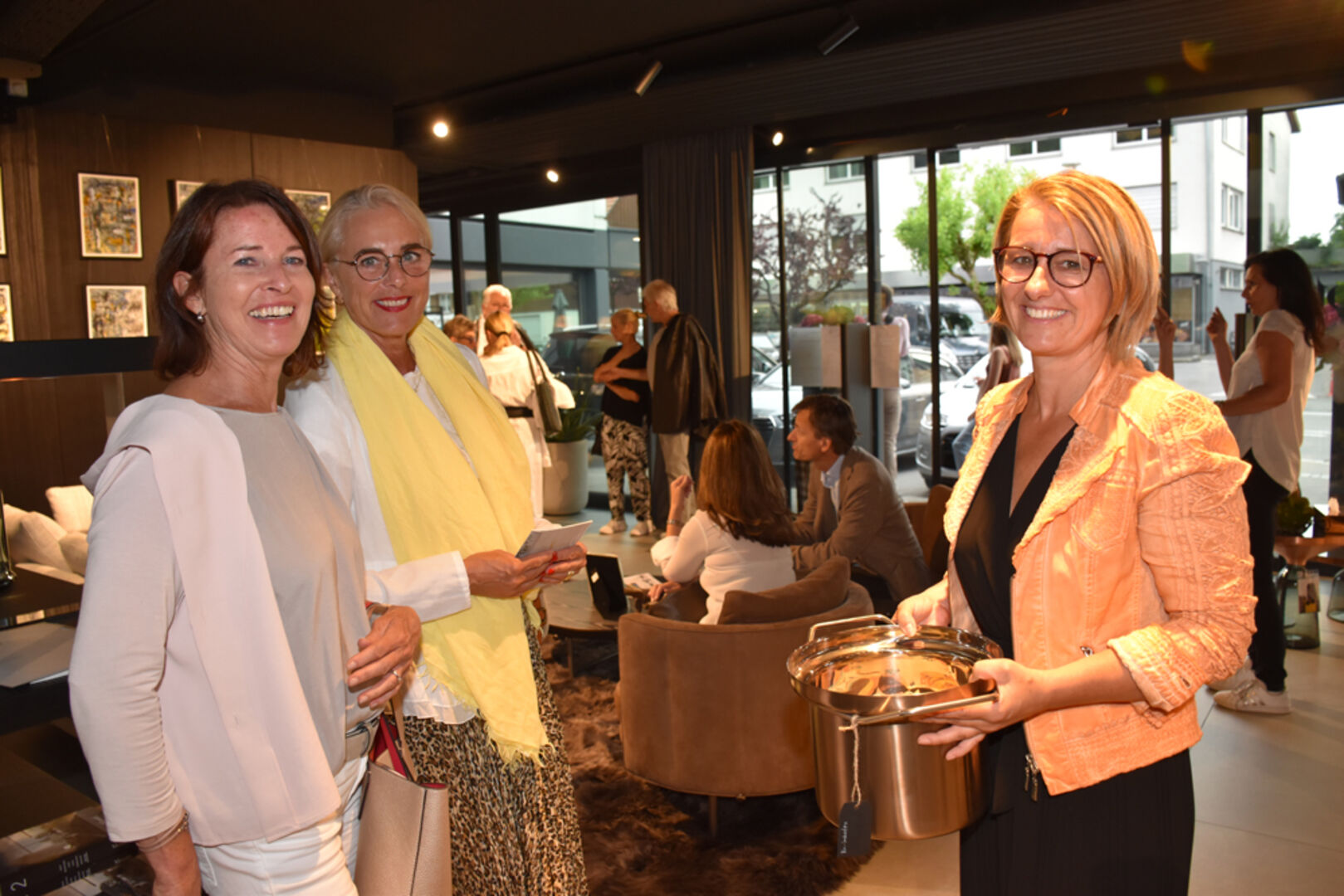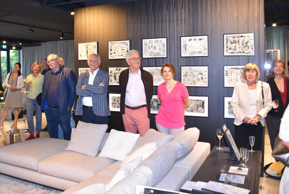 Helmut Schuster (Küchen- und Wohnraumgestaltung), Susanne Messmer (GF), Diana Binder (Kuratorin und Mitarbeiterin), Künstler Maximilian Fohn und Vernissage…