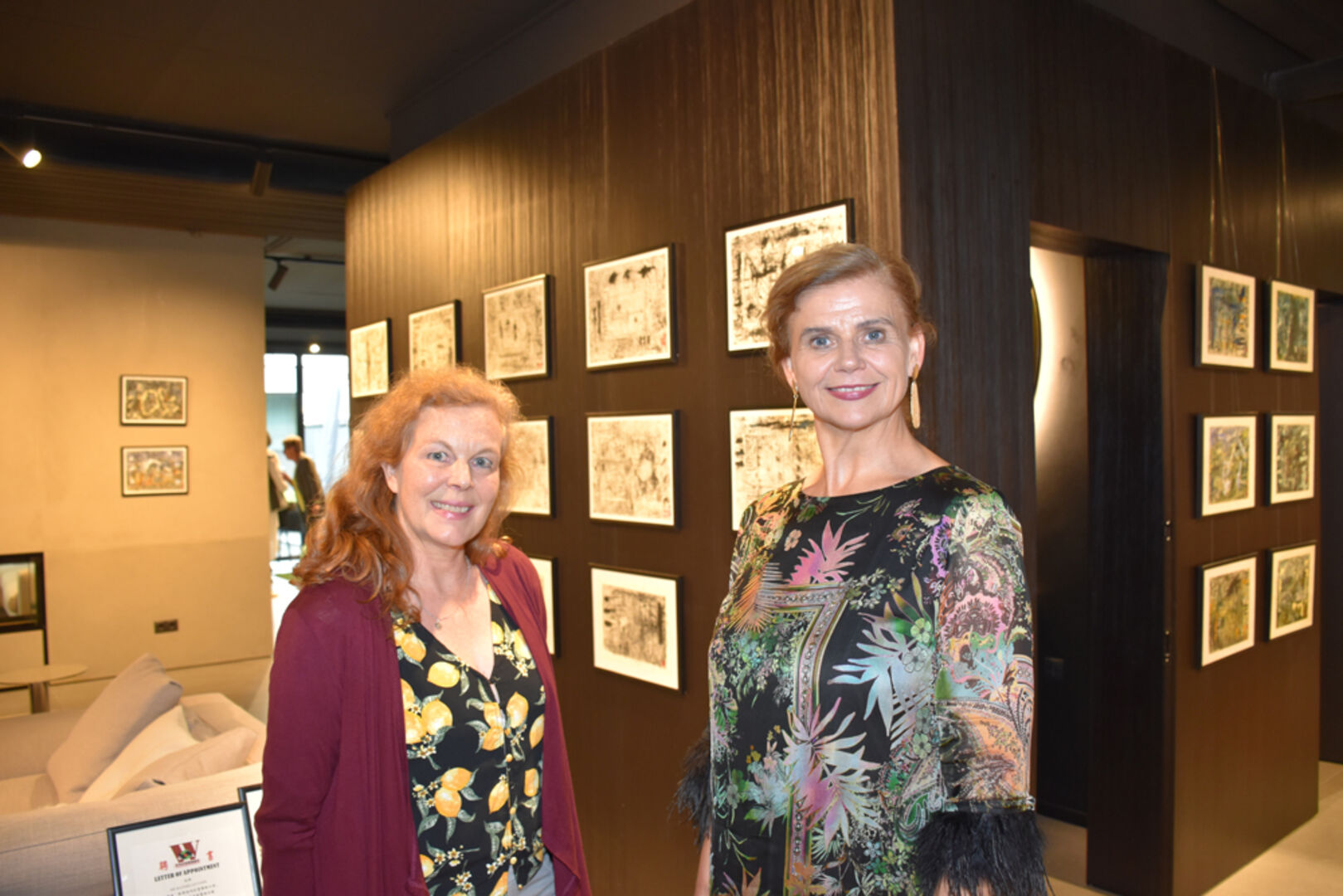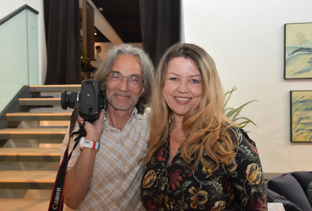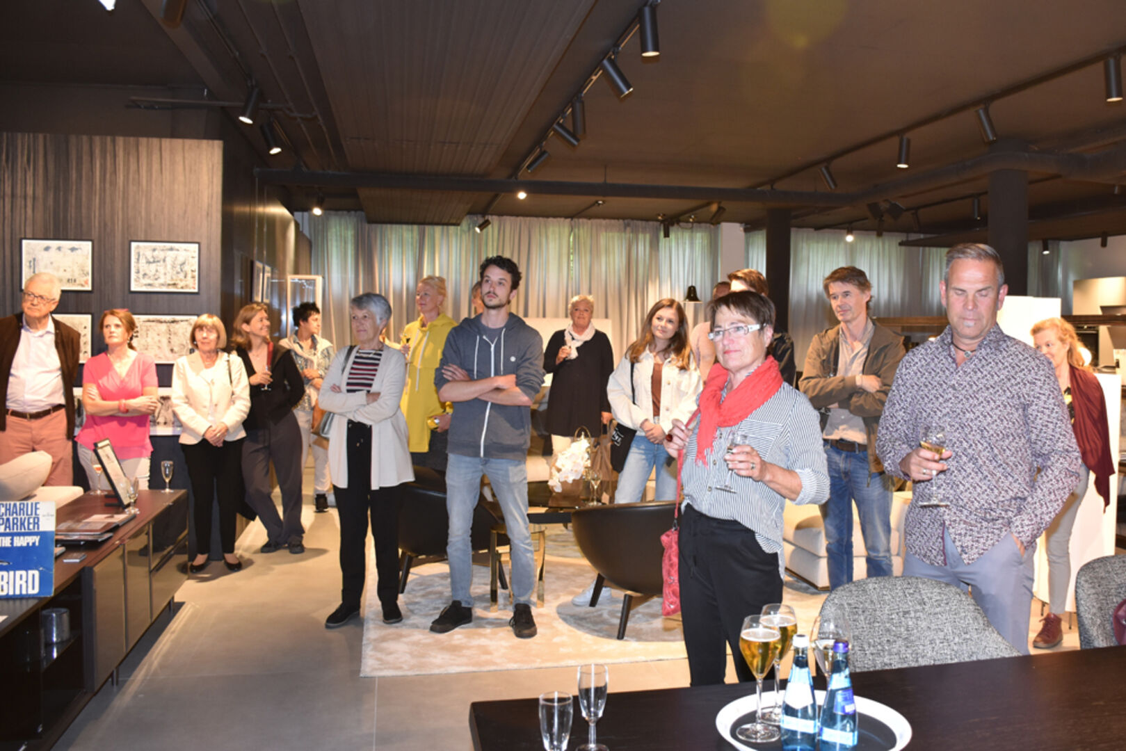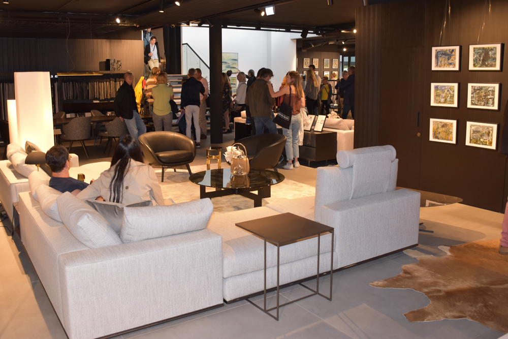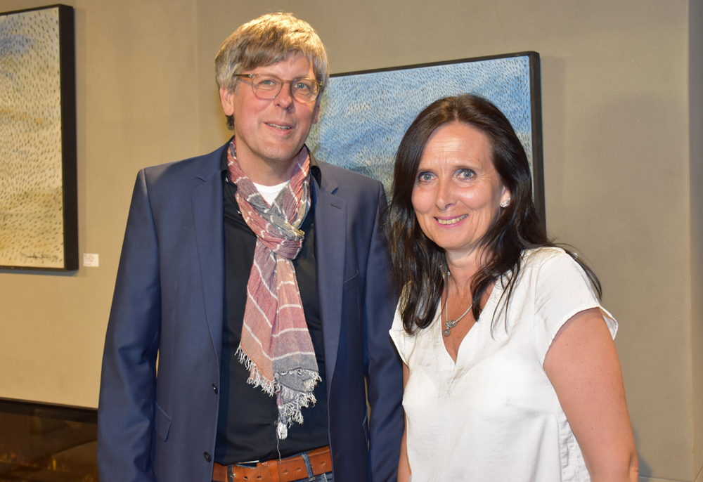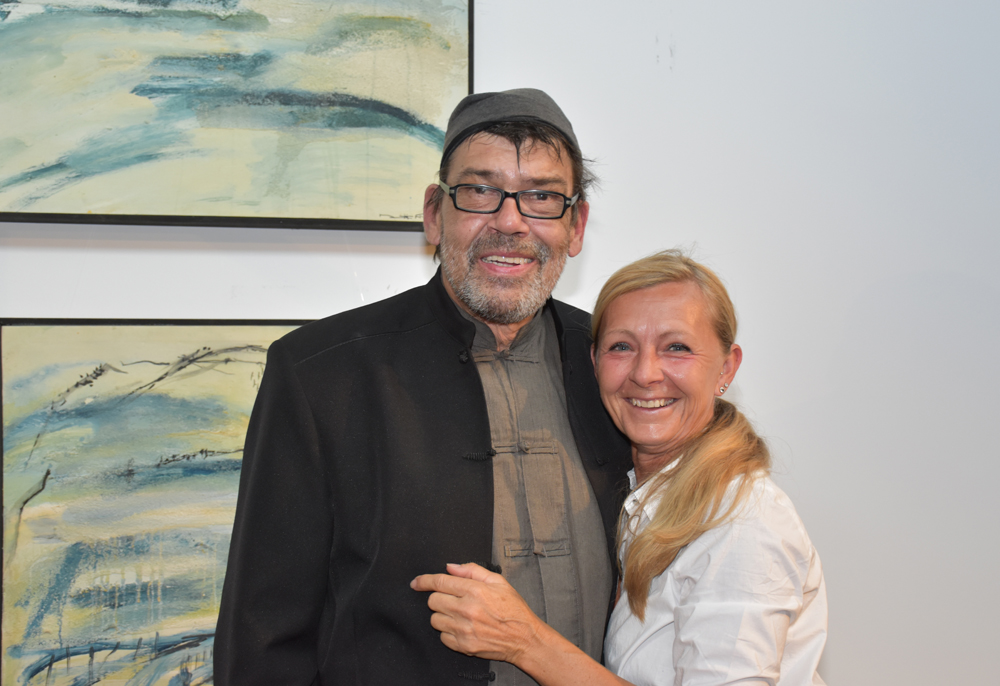 Helmut Schuster (Küchen- und Wohnraumgestaltung), Susanne Messmer (GF), Diana Binder (Kuratorin und Mitarbeiterin), Künstler Maximilian Fohn und Vernissage…