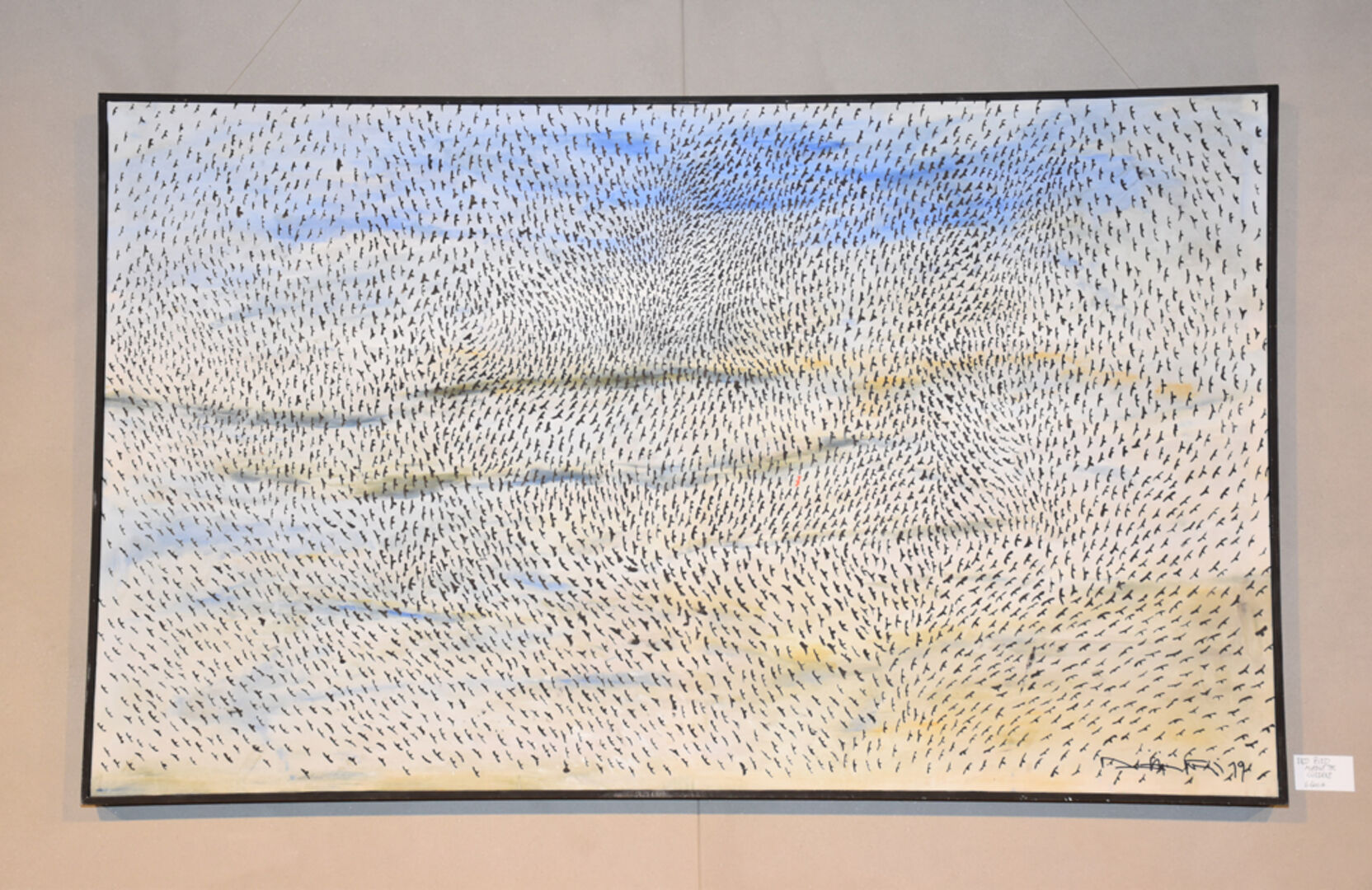 Fohn spielt hier mit Luftströmen, lässt Vögel Pirouetten schlagen, tanzen... Die Bilderserie „3 Tage, 30 Arbeiten, 3000 Vögel“ ist noch bis 31.7. im exklusiven Wohnstudio-Ambiente bei freiem Eintritt zu sehen. TOP: Eine Bildversteigerung und Spenden brachte Euro 2125,- zugunsten der Kinder-Onkologie.