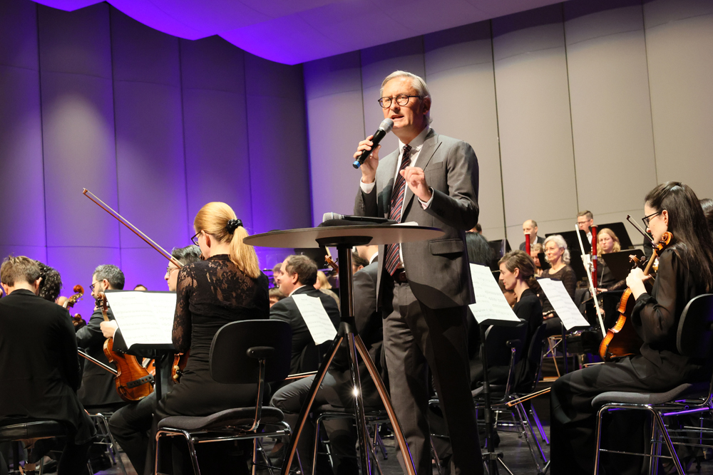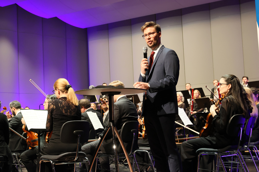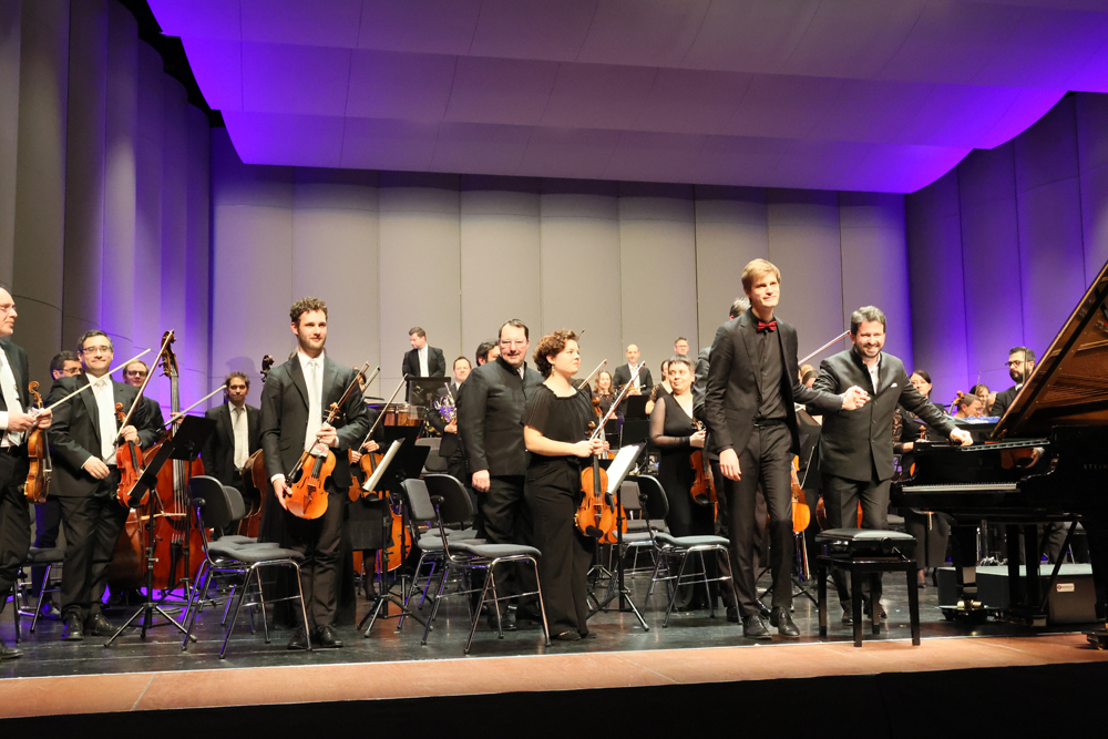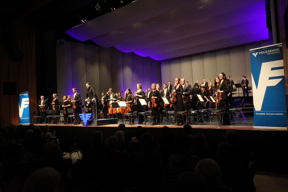 „Die Teilnahme an kulturellen Ereignissen ermöglicht die Erfahrung, Teil einer Gesellschaft zu sein. Als regionale Genossenschaftsbank sind wir stark in Vorarlberg verwurzelt und es ist uns ein Anliegen, der Region und ihren Menschen etwas zurückzugeben. Mit dem traditionellen Konzertabend sprechen wir unseren Gästen ein kleines Dankeschön aus“, erklärt Betr.oec. Gerhard Hamel, Vorstandsvorsitzender der Volksbank Vorarlberg. Gerhard Hamel und Vorstandsdirektor Dr. Helmut Winkler konnten an diesem Abend über 800 musikbegeisterten Gäste begrüßen. Sie wurden von den Musikerinnen und Musikern des Symphonieorchesters unter der Leitung von Gerrit Prießnitz auf eine musikalische Reise mitgenommen, die bei Detlev Glanert (Weites Land) startete, über Ludwig van Beethoven (Klavierkonzert Nr. 1 C-Dur, op. 15) führte und mit Johannes Brahms (Symphonie Nr. 4 e-Moll op. 98) endete. Dirigent Gerrit Prießnitz, der zum ersten Mal das Symphonieorchester Vorarlberg dirigierte, brachte den jungen und höchst talentierten Pianisten Johannes Piirto aus Finnland mit nach Vorarlberg.