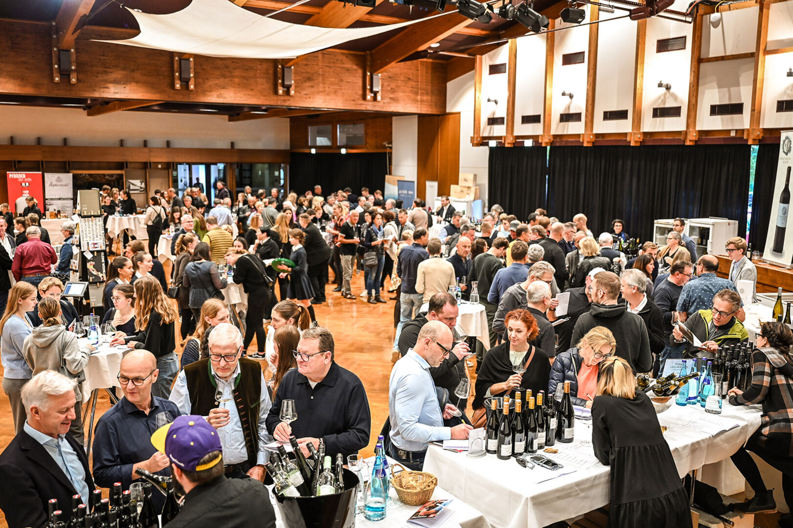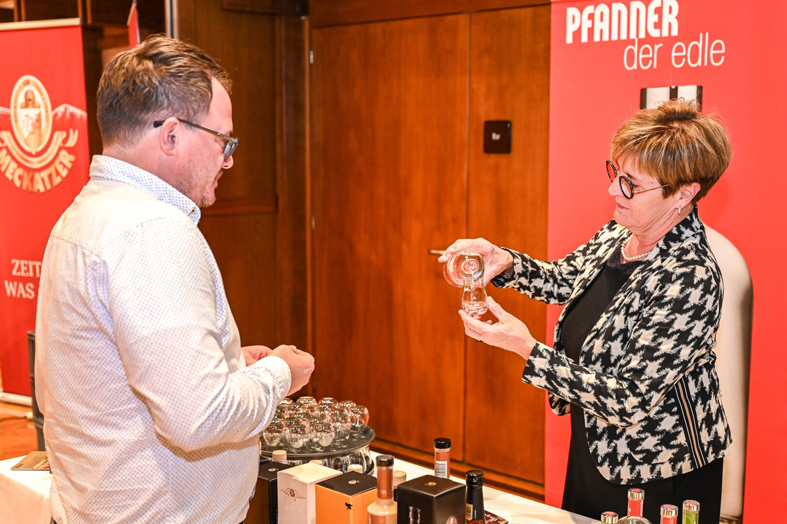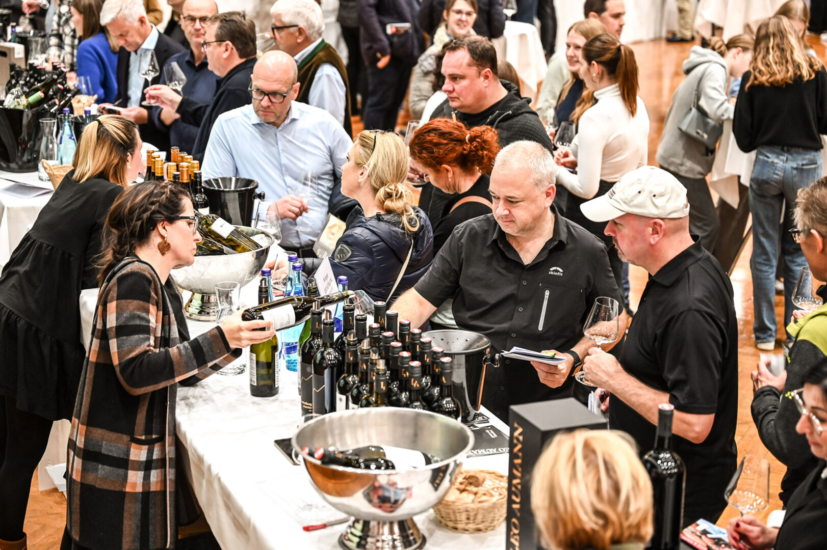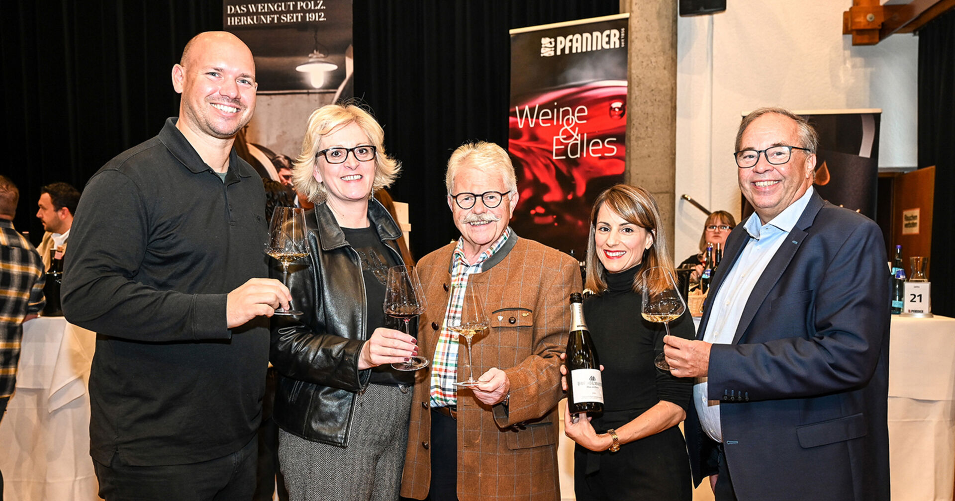 „Wein & Edles“ im Hofsteigsaal Lauterach: Als „Apero“ startete die Masterclass der Österreich Wein Marketing GmbH unter dem Motto „Herkunft ist wichtig – auch für den Gast“ mit 20 Weinfachleuten, bevor dann offiziell ab 14 Uhr die traditionelle Weindegustation für Gastronomen, Weinliebhaber, Firmenkunden und Jungsommeliers mit Top-Beteiligung den Saal für sieben Stunden füllte. TOP: Wie immer das typische Heurigenbuffet mit ausgesuchten Käse- & Speckspezialitäten und feinen Pilzgerichten, aber auch Espresso, Bier, Cocktails und die bekannten Pfanner-Edelbrände.