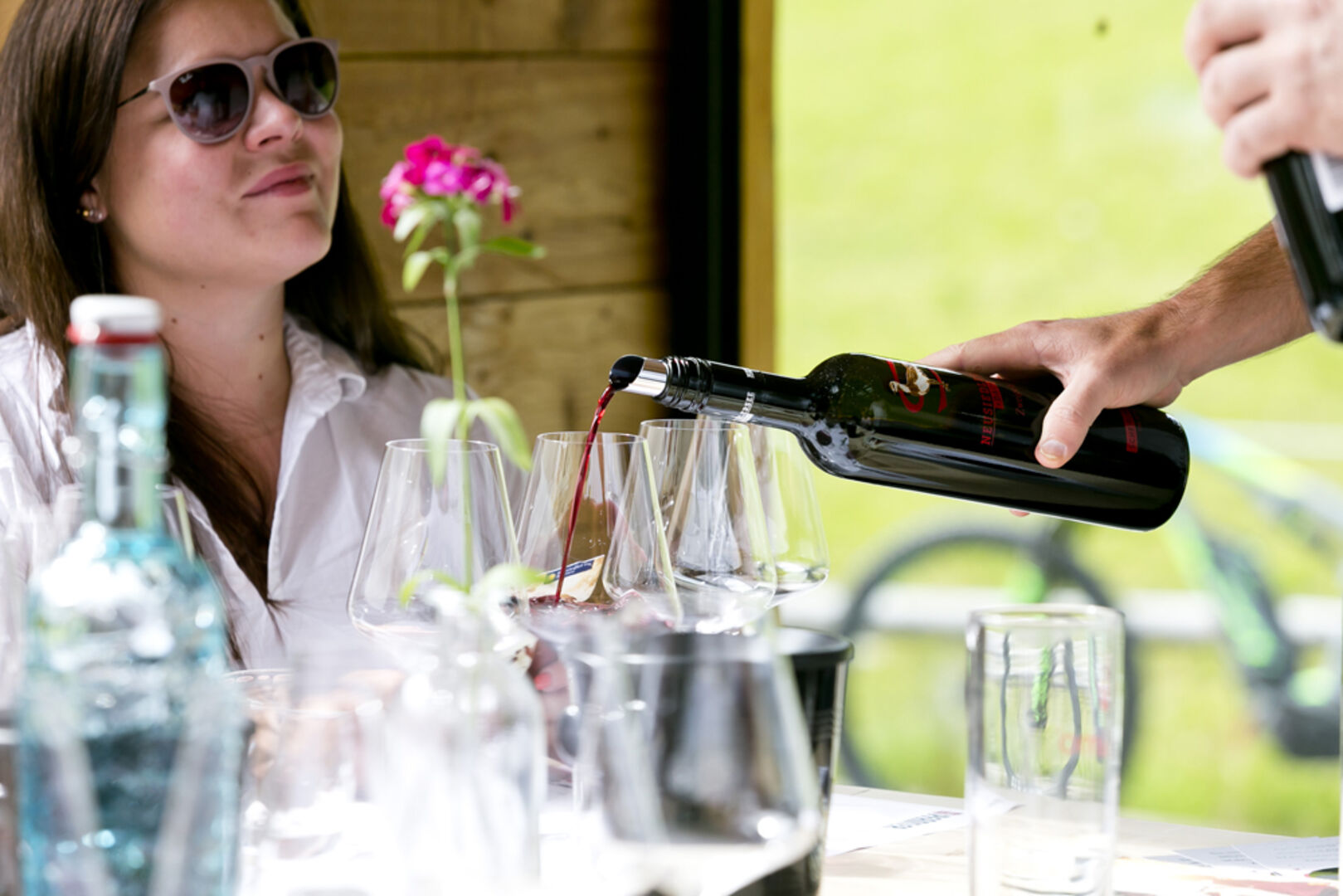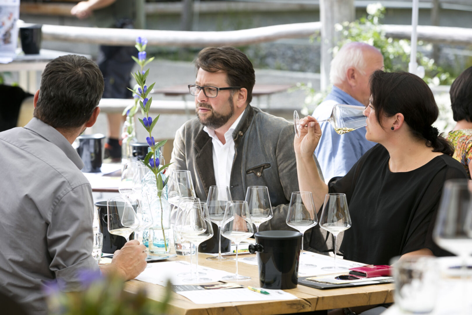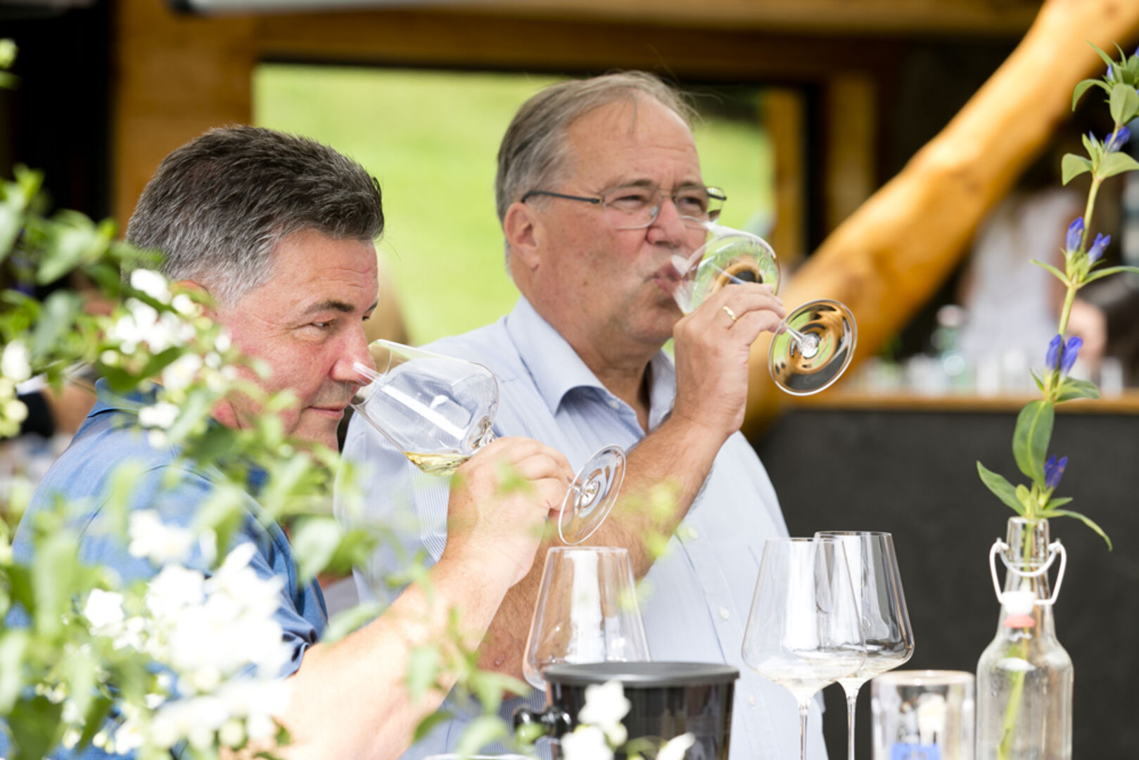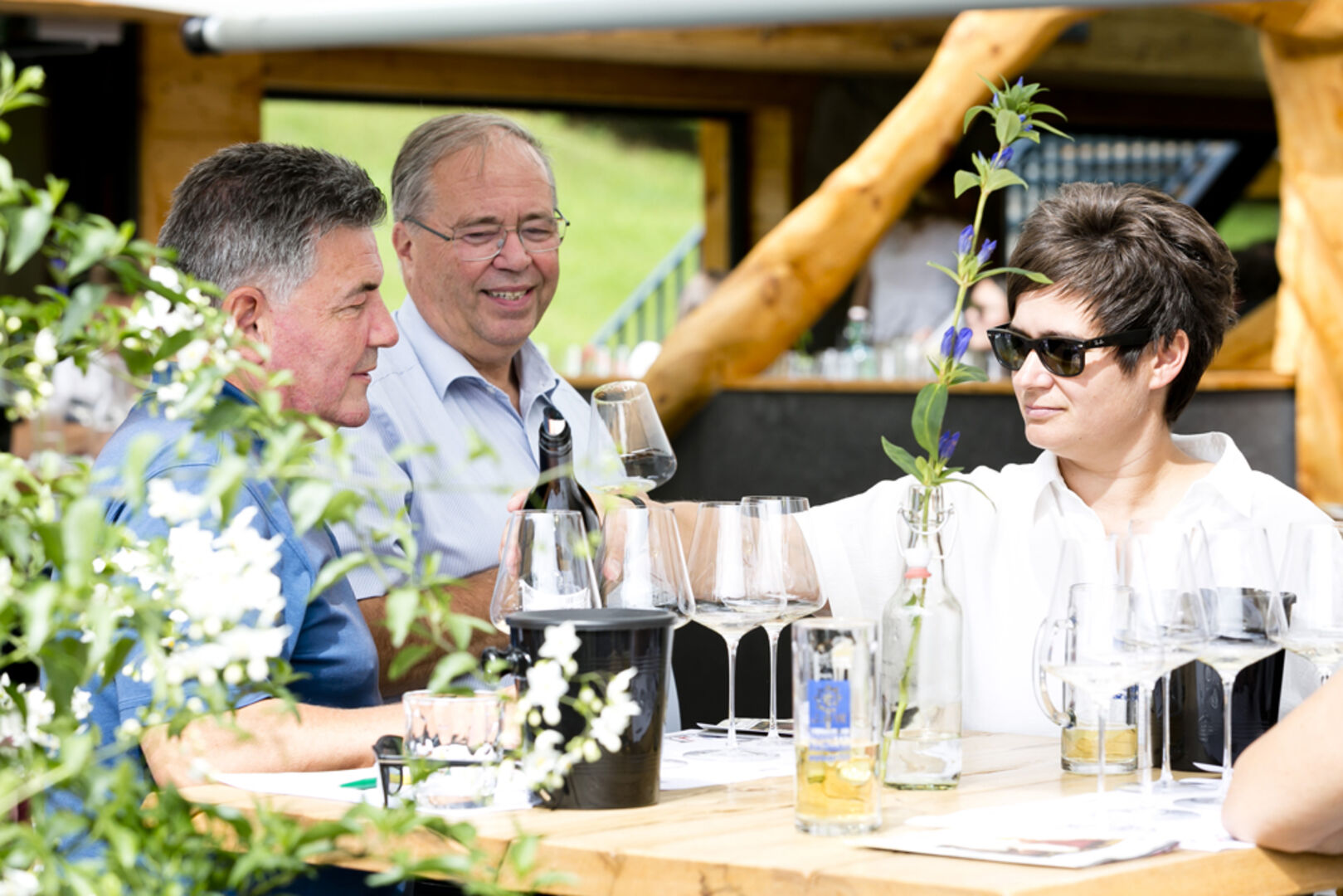 Weinliebhaber trafen sich im Berghotel Almhütte in Hirschegg im Kleinwalsertal.