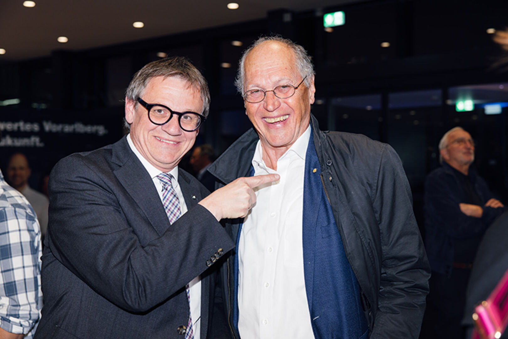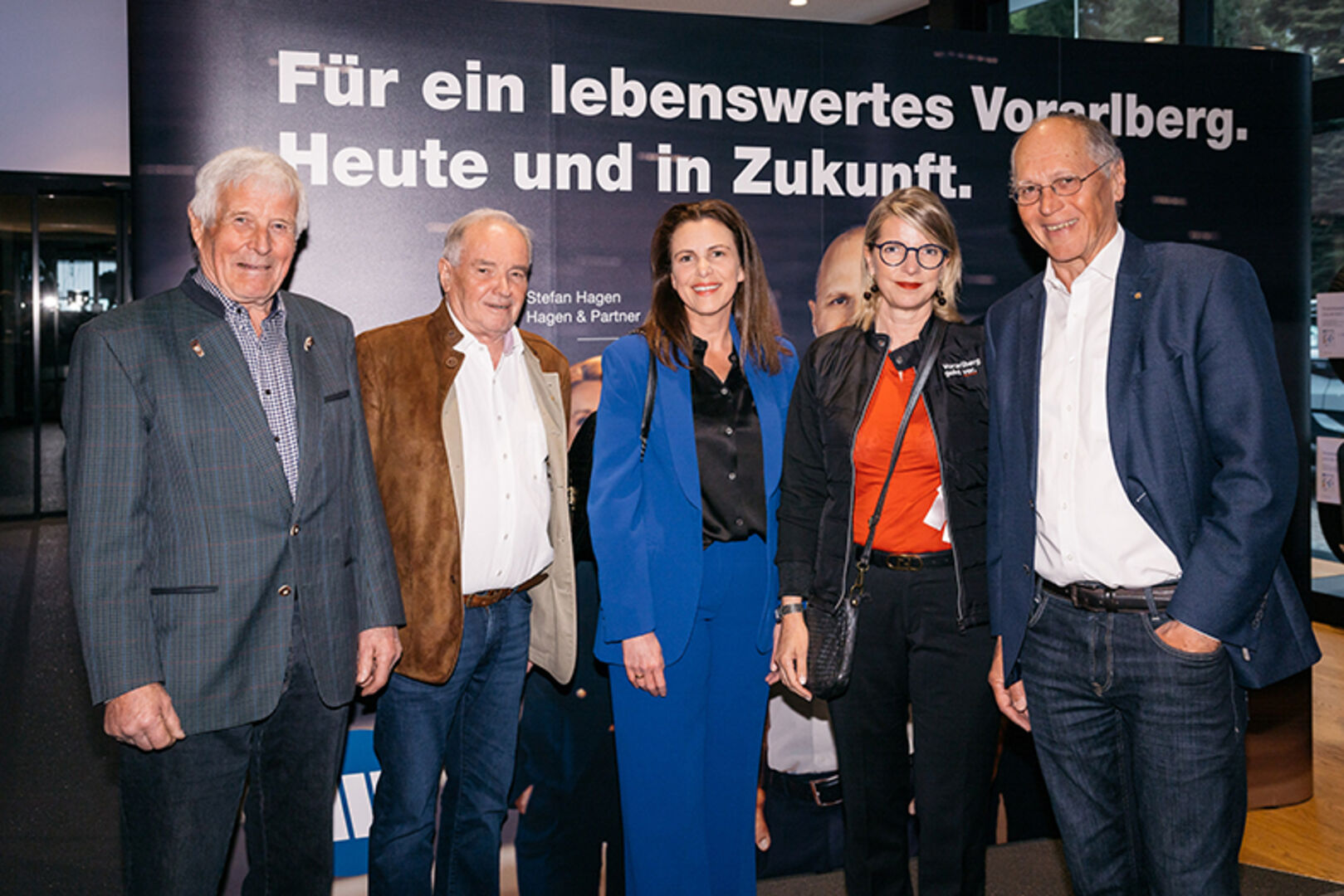 Bild oben: NR Karlheinz Kopf (WKÖ-Generalsekretär), LT Klubobmann Roland Frühstück, LR Marco Tittler (Obmann Vorarlberger Wirtschaftsbund), LH Markus Wallner, Bgm. Andrea Kaufmann, Alt-Bundeskanzler Wolfgang Schüssel und Direktor Christoph Thoma (Vorarlberger Wirtschaftsbund) (v. li.)