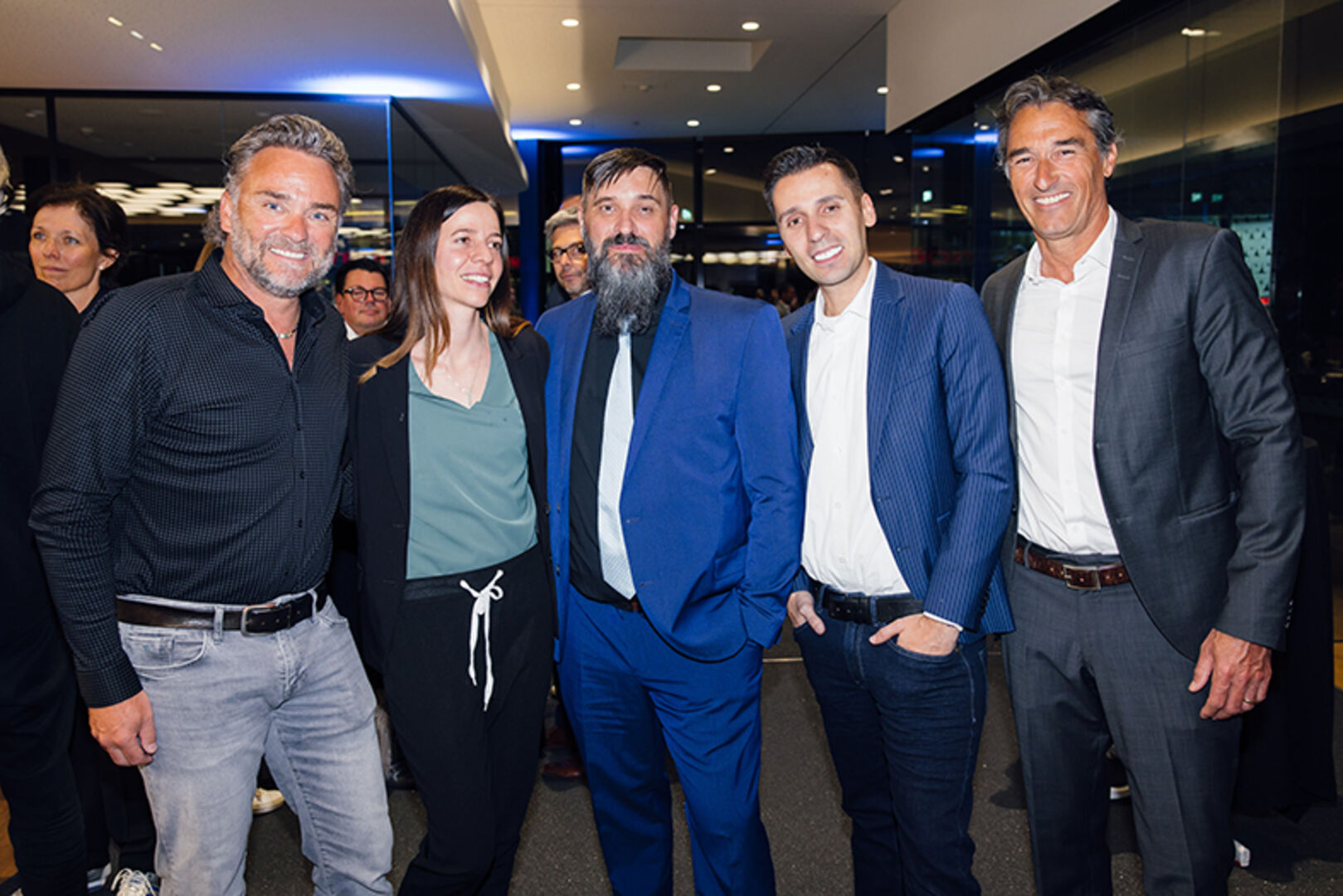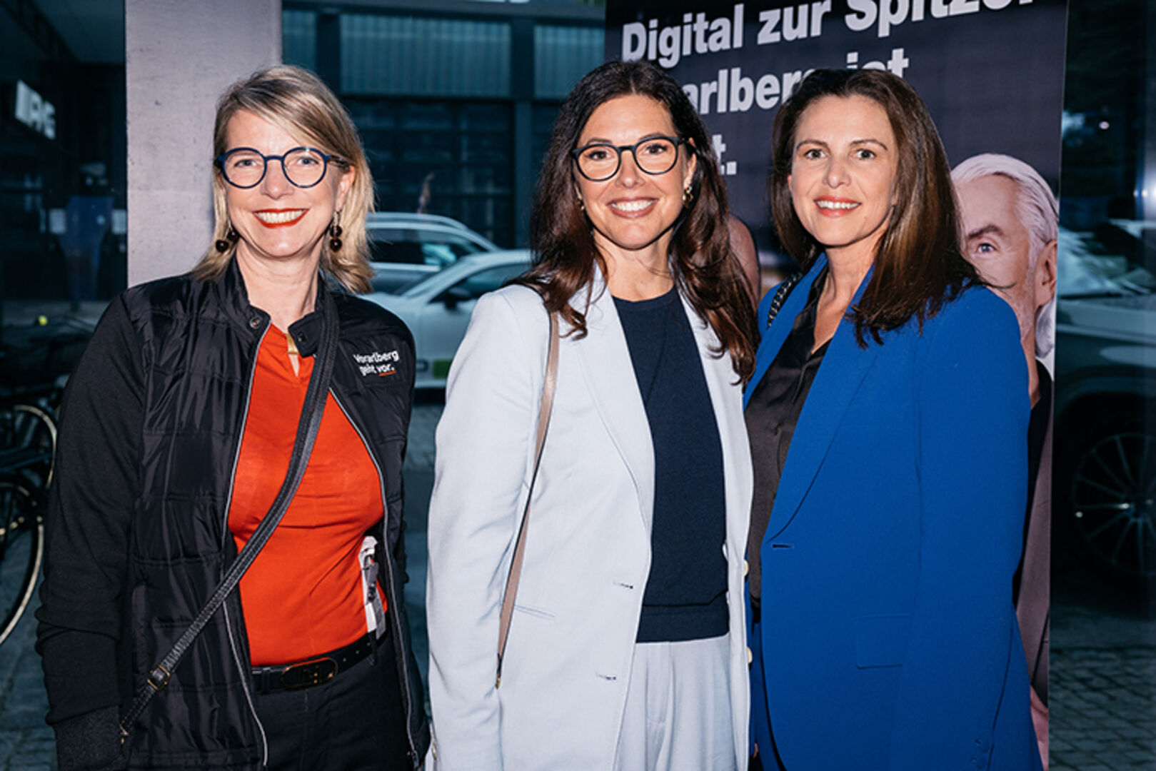 Michael Osti (Wirtschaftkammer Vorarlberg Tourismus), Mathias Vacek (BOS Technik), Claudia und Michael Kramer (Gebrüder Weiss) (v. li.)