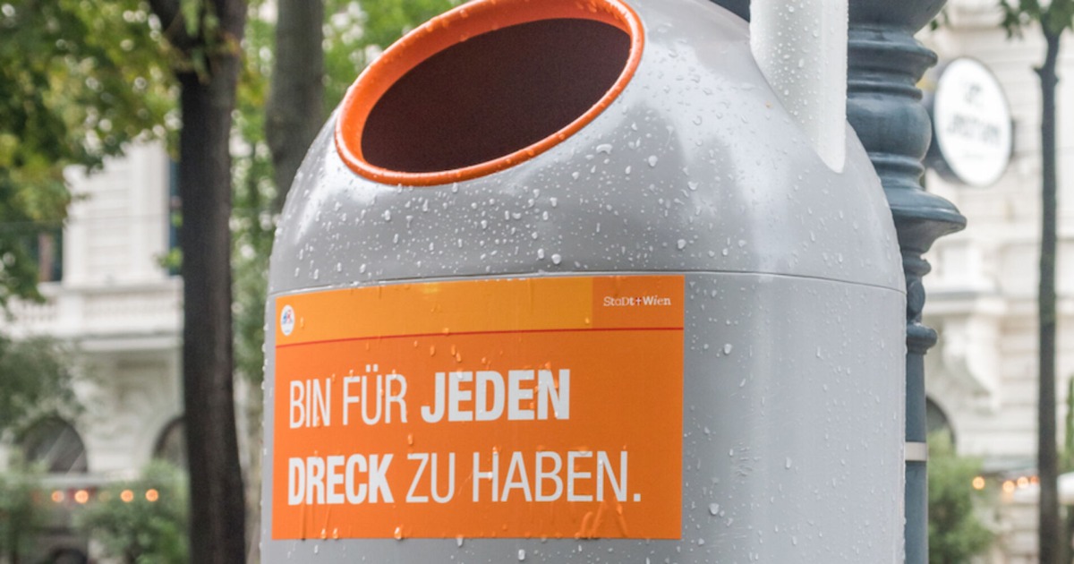 „Ich wär so gerne Müllionär“, „In guten wie in dreckigen Zeiten“, „Hasta La Mista, Baby?“ und noch viele mehr: Wer auf der Straße nach dem nächsten Mistkübel schaut, findet immer auch einen flotten Spruch fürs richtige Entsorgen – mit einem ganz großen Augenzwinkern.