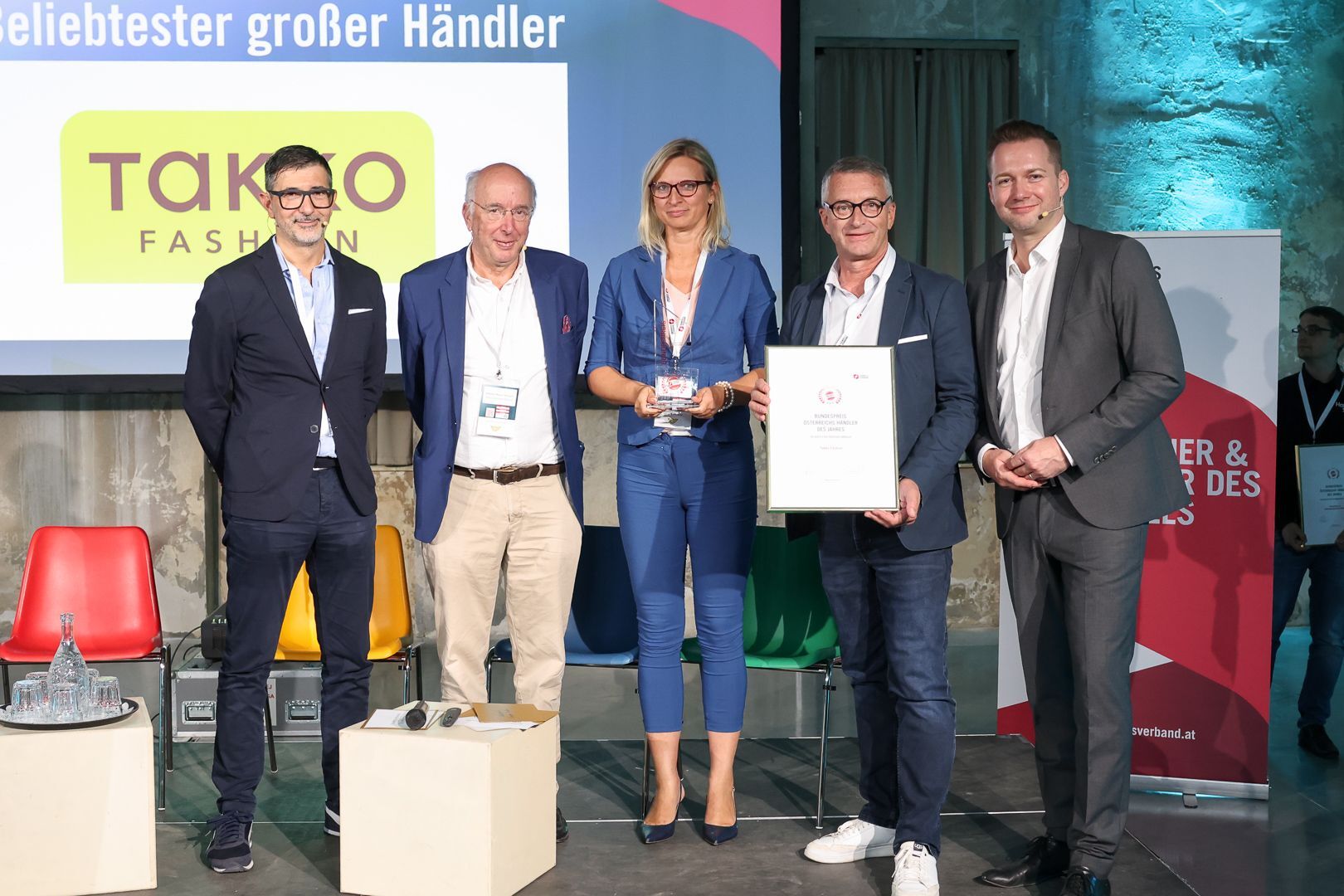 Erstmals konnte sich Takko Fashion den Titel als "Großer Händler" (über 250 Beschäftigte) sichern. Country Manager Marc Andreas Carls und Erzsebet Pinter, Head of Expansion, nahmen den Preis entgegen.