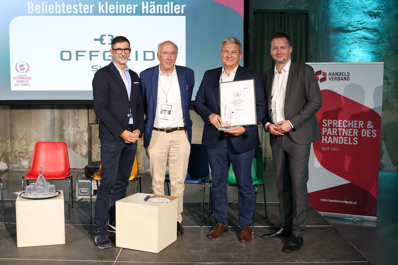 Als "Kleiner Händler" (10 bis 49 Beschäftigte) setzte sich die offgridshop.eu – Sailectron Services GmbH aus Gratwein-Straßengel durch. Das Unternehmen ist Distributor für Victron Energy und sorgt dafür, dass elektrische Geräte zuverlässig laufen. Die Geschäftsführer Lukas Vrecer und Michael Ponbauer freuten sich über die Auszeichnung.