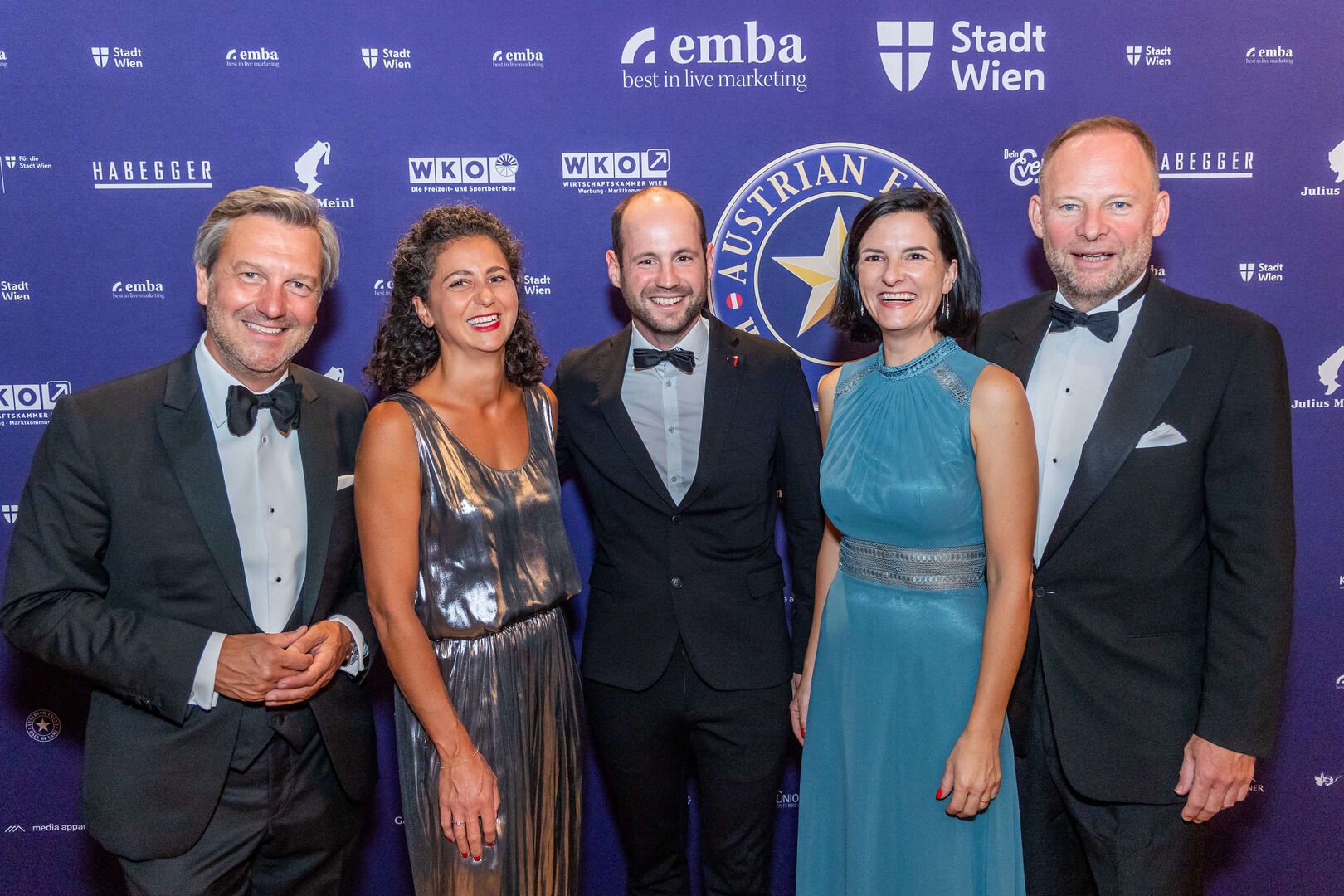 Das event marketing board austria (emba) ist der Zusammenschluss der aktivsten und relevantesten Live-Marketing-Agenturen Österreichs. Sie vereint die Besten und hat nicht den Anspruch, eine Vertretung für die Vielen zu sein. Der Branchenverband zählt derzeit 29 Mitglieder. Die „Austrian Event Hall of Fame“ hat seit 2015 das nachhaltige Lebenswerk von 30 einflussreichen Event-Schaffenden gewürdigt und für die Zukunft dokumentiert. Zu den Unterstützern der Gala zählen die Fachgruppe Werbung und Marktkommunikation der Wirtschaftskammer Wien, der Fachverband Freizeit- und Sportbetriebe der Wirtschaftskammer Österreich, der Technikpartner Habegger sowie die Julius Meinl Kaffeebar.