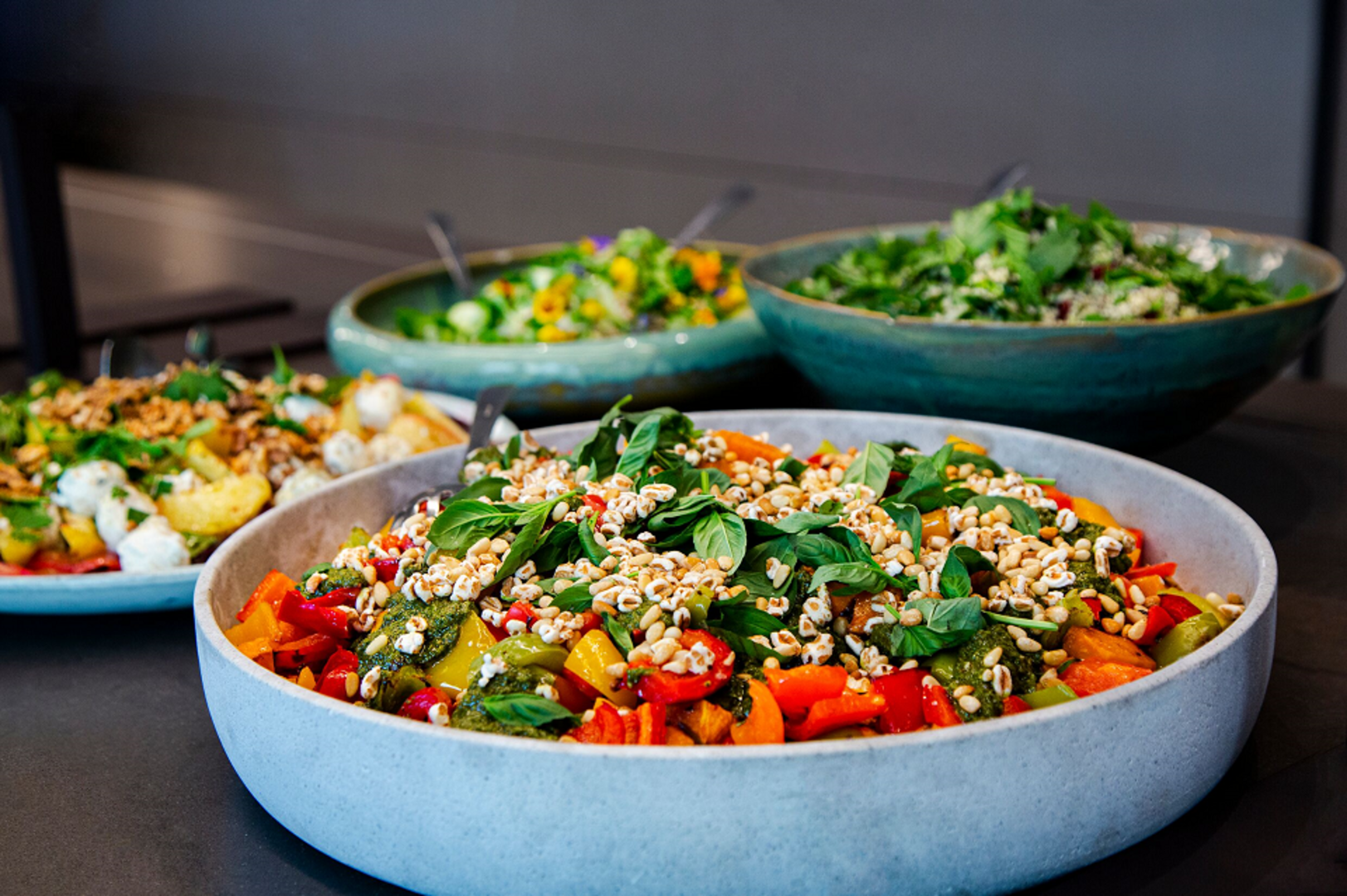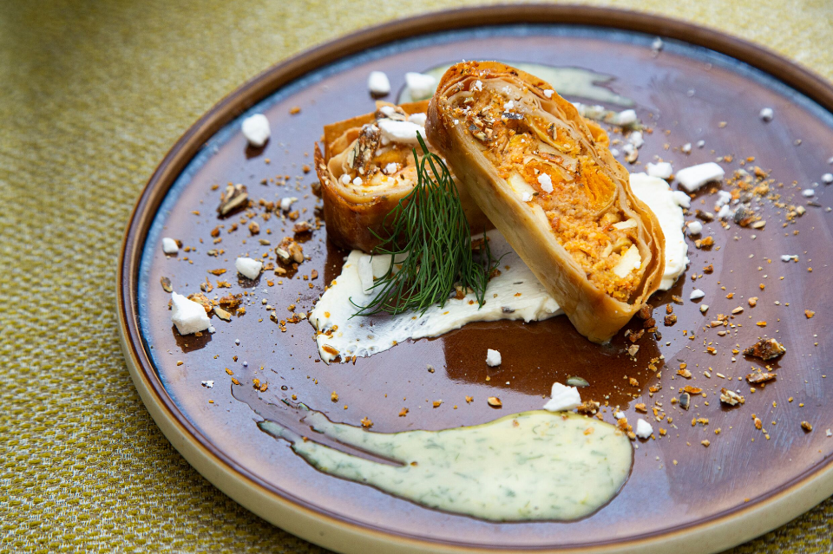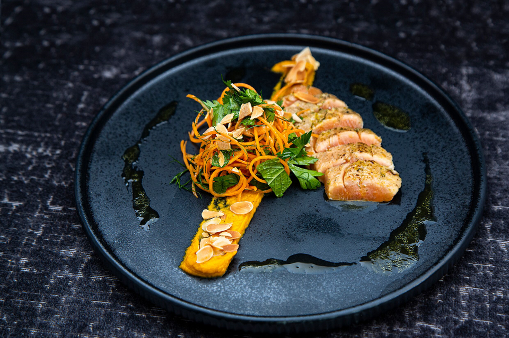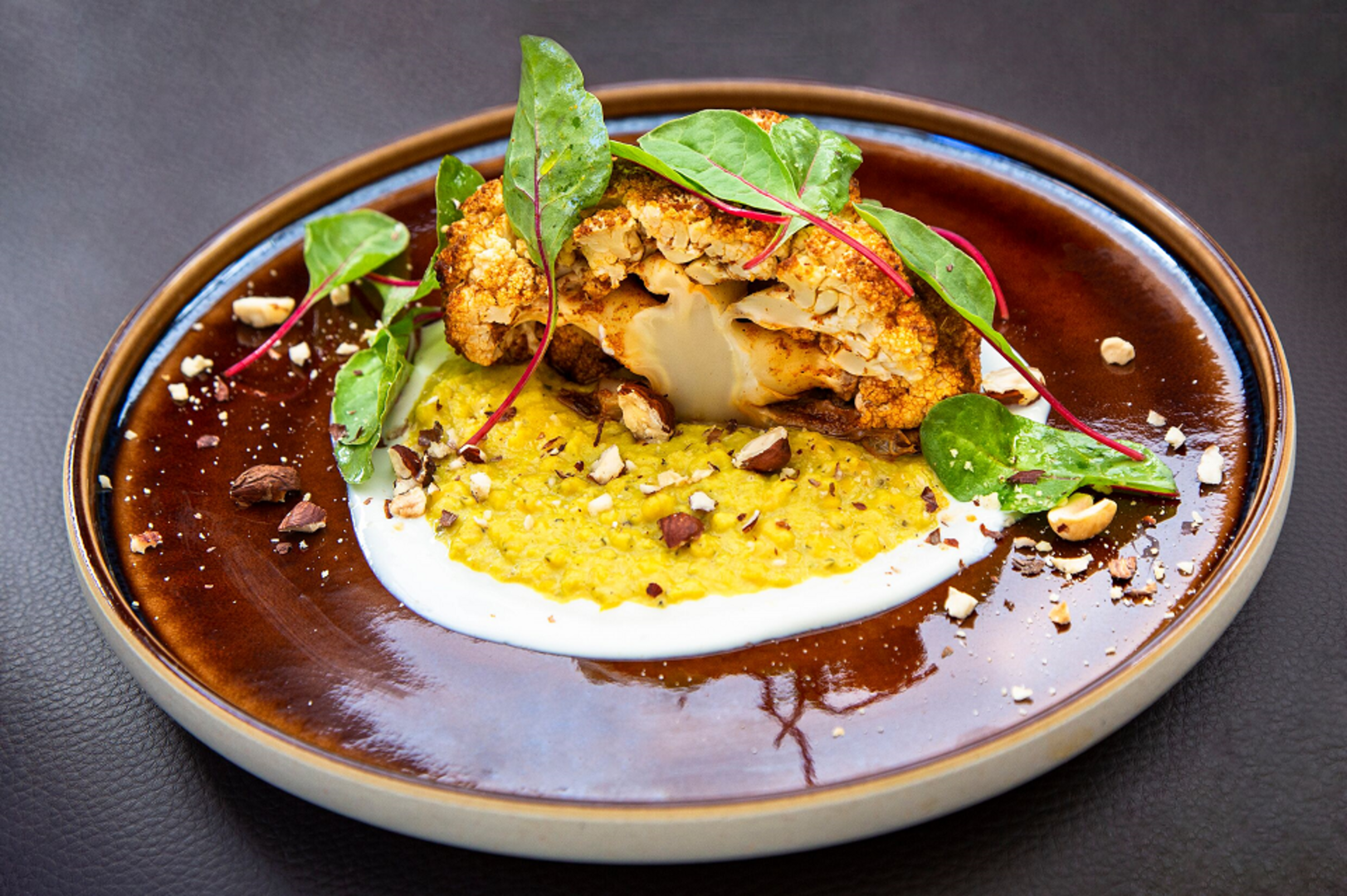 Der Ansatz dazu lautet „Sharing“. Die frisch zubereiteten Gerichte werden zum Tisch gebracht, die Gäste entscheiden selbst, was sie kosten und genießen wollen. Erst der geflämmte Saibling mit Ofen-Karotten-Püree? Oder der gebackene Karfiol mit Gelbe-Linsen-Ragout? Warum nicht abwechselnd? Nach Lust und Laune können die Speisen am Tisch durcheinander probiert, geteilt und genossen werden.