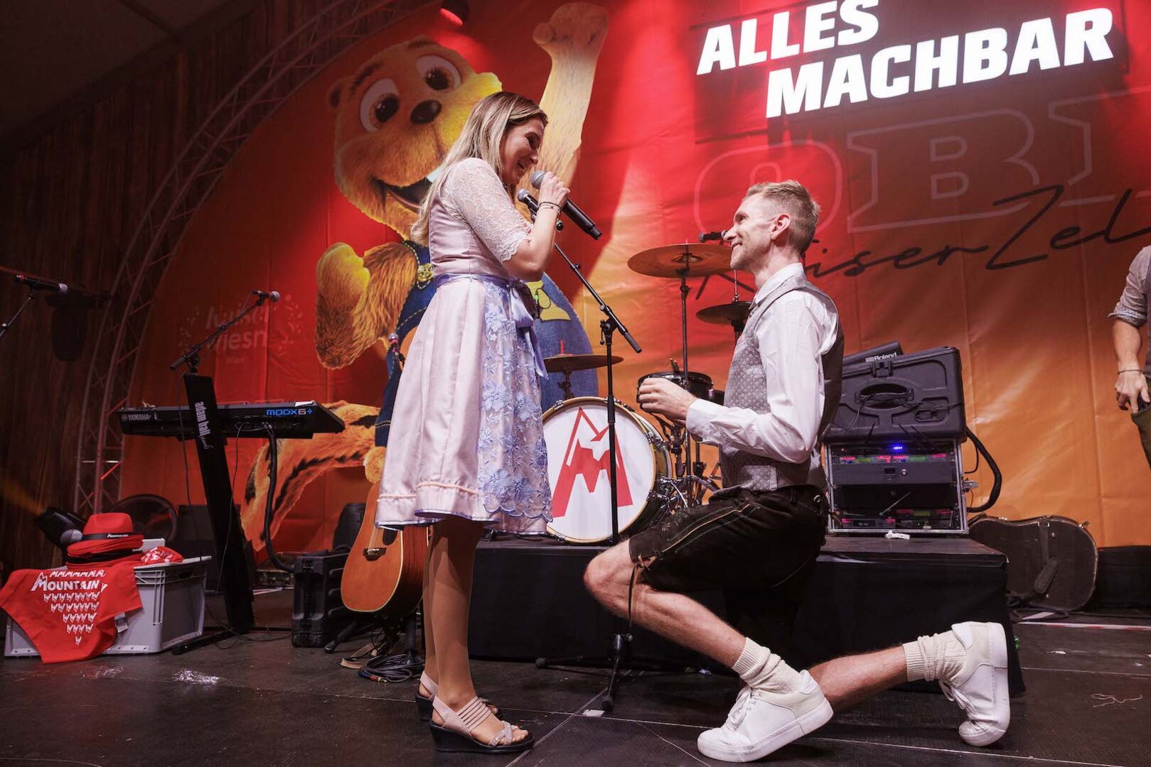 Der überwältigende Erfolg der diesjährigen Kaiser Wiesn ist nicht zuletzt dem sensationellen Mix an Programm-Highlights für Alt und Jung geschuldet. Möglich machten dies auch heuer wieder bewährte Partner und Sponsoren wie etwa Gösser, Wiesbauer und heuer zum ersten Mal – OBI. Im Gösser-Zelt, übrigens dem größten auf der Kaiser Wiesn, sorgte u.a. die Kultband „Die Edlseer“ für ausgelassene Stimmung. Im Wiesbauer-Zelt sorgten die beiden Schlager-Legenden Jazz Gitti und Andy Borg für ausgelassen Stimmung oder etwa die Fire Fighters Night – mit exklusiver Präsentation des Feuerwehrkalenders 2024! Im OBI-Kaiserzelt wiederum wurde es gleich zum Einstand, nämlich bereits am 22. September, höchst romantisch: Ein Gast machte seiner Freundin einen Heiratsantrag – und das mitten auf der Bühne! So viel Mut und Liebe ließ auch die Herzen der anwesenden Besucher nur so dahinschmelzen. Als Zeuge des traumhaften Akts fungierte Veranstalter Johann Pittermann höchstpersönlich.