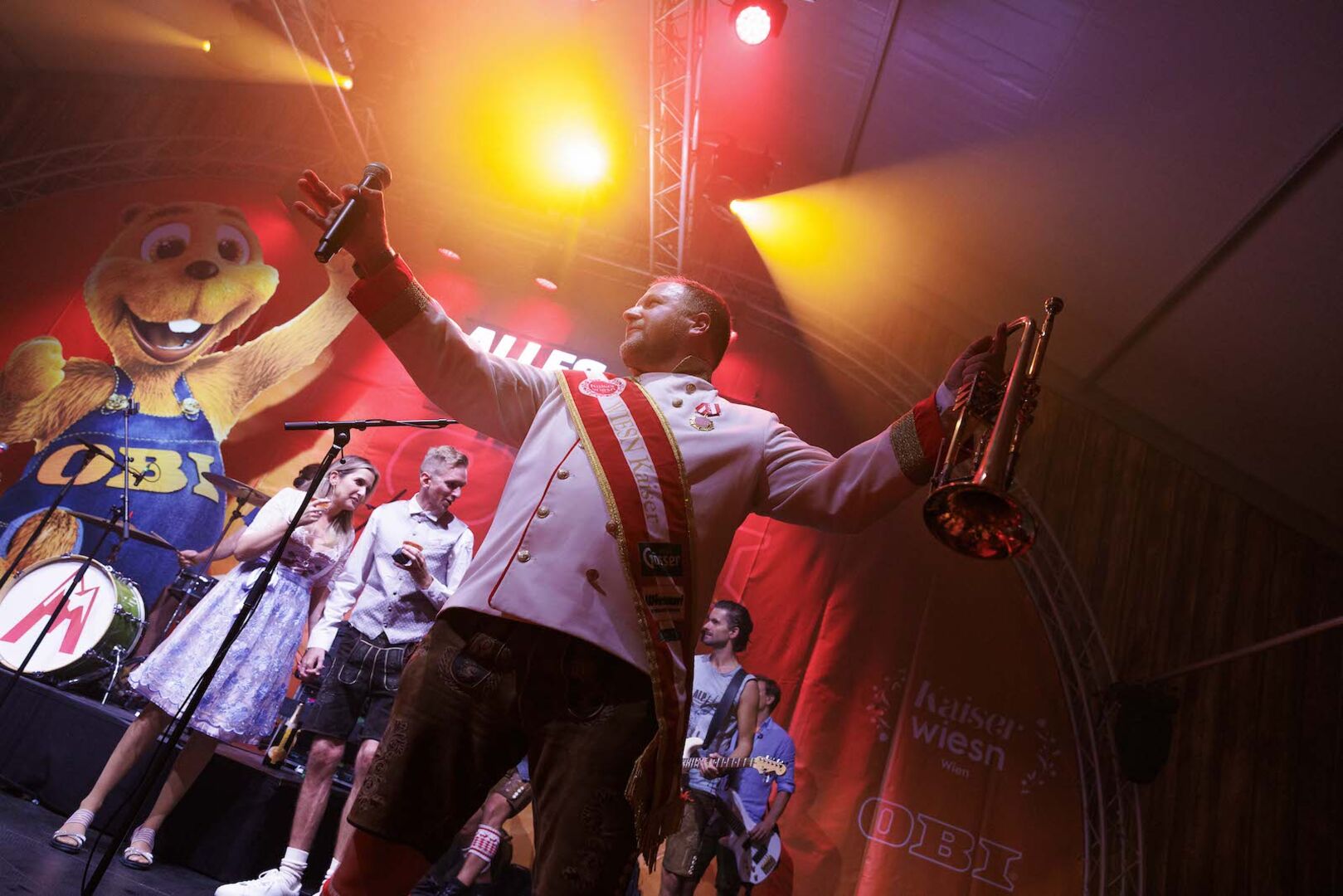 Für beste musikalische Stimmung sorgten auf der Kaiser Wiesn heuer u.a. auch die Bands Bengels Reloaded, die Lauser oder die Mountain Crew. Und der „Wiesn Kaiser“ selbst Johann Pittermann erwies sich nicht nur als exzellenter Gastgeber, sondern auch als großartiger Musikus! Neben vielen anderen Instrumenten beherrscht er perfekt das Spiel der Trompete und begeisterte damit immer wieder und ganz spontan das Publikum auf der Kaiser Wiesn. Und auch sonst zeigte der Top-Veranstalter absolute Steher-Qualitäten: Täglich mischte er sich unter das Partyvolk und hatte für all seine Gäste stets ein offenes Ohr.